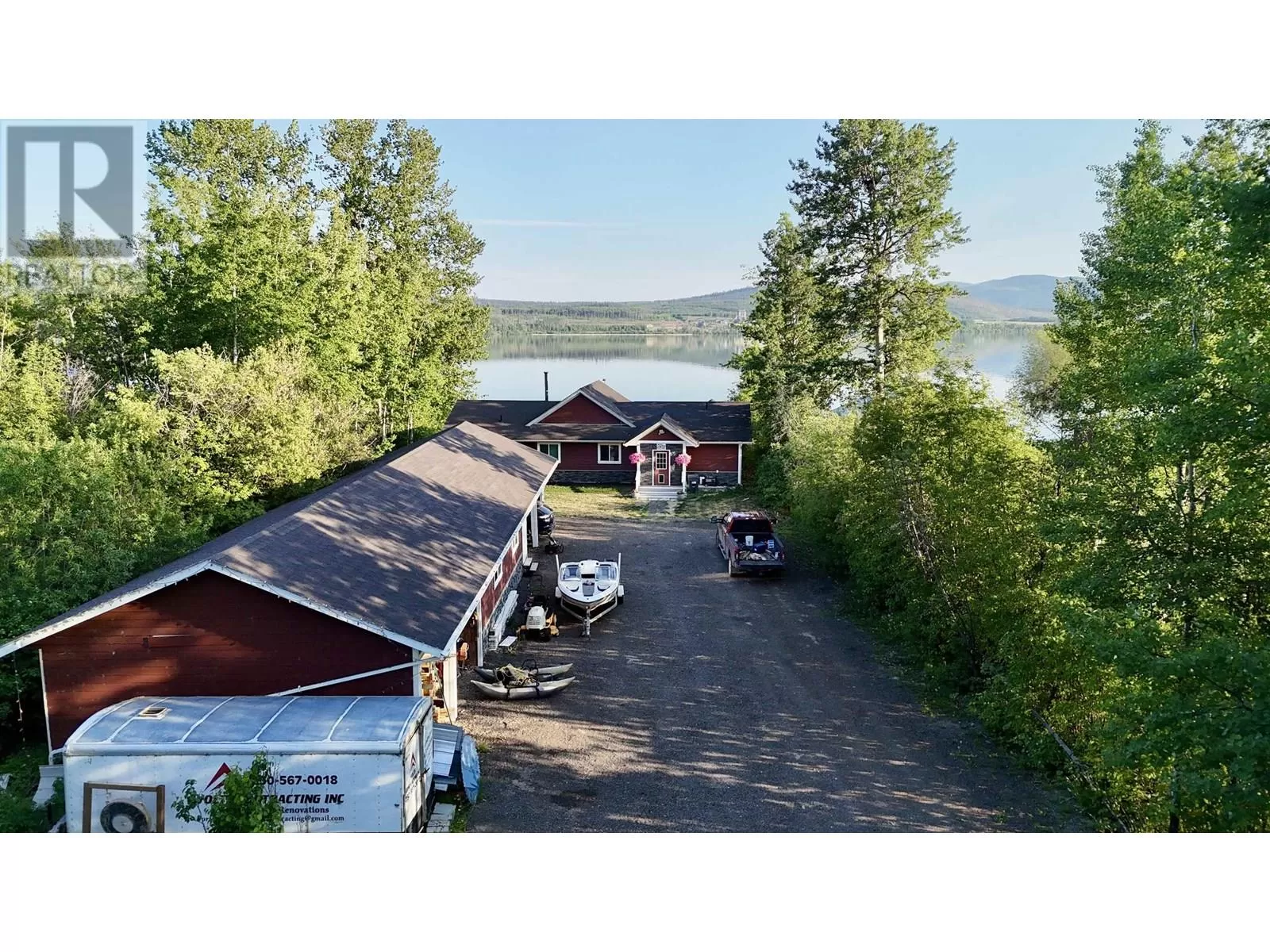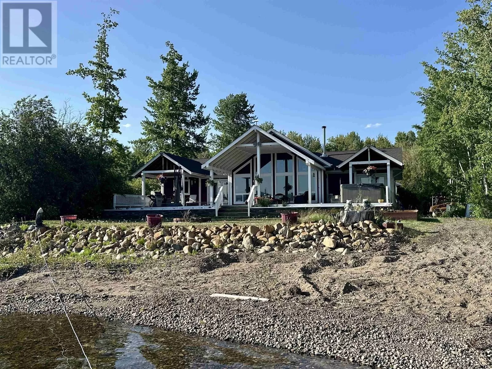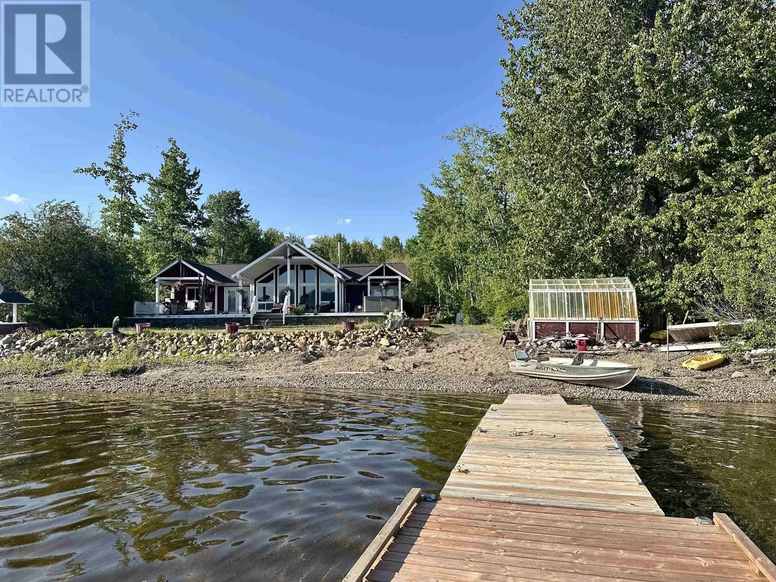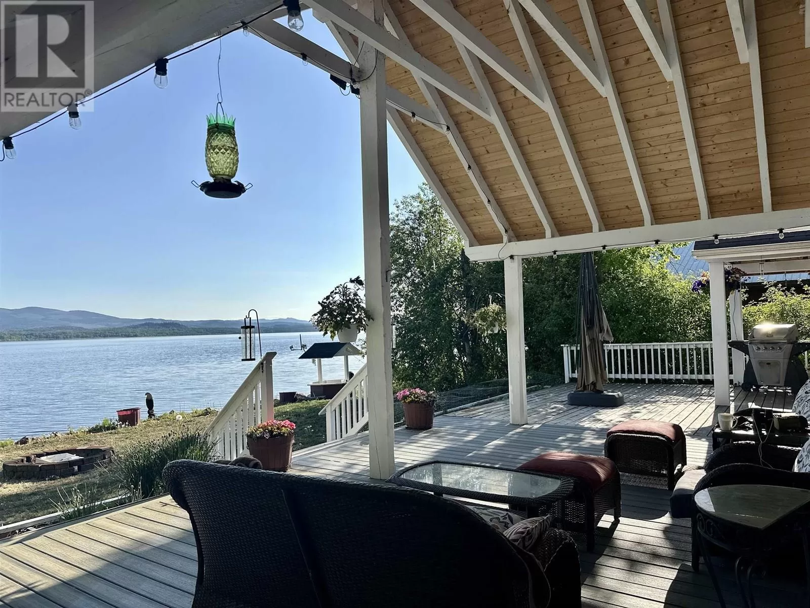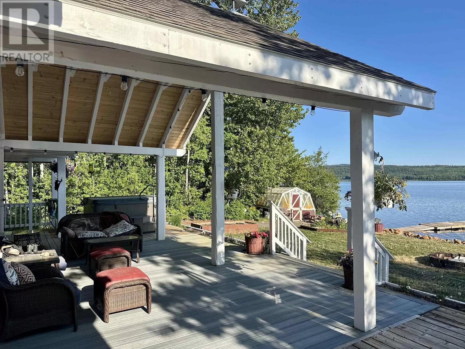 Custom built lakefront home with expansive views of Fraser Lake. This one-level home was built with attention to detail and has a great layout, featuring an open concept floor plan with lake views from almost every room in the house. The kitchen boasts quartz countertops and a large peninsula island, and the dining room opens out to the full-length, partially covered sundeck. The living room features the best views from the home with expansive floor to ceiling triple pane windows and a nice Blaze King wood stove to keep the home cozy on the cooler days. The primary bedroom has a gorgeous ensuite with a tiled shower and soaker tub and opens on to a covered deck and hot tub. Outside is a heated workshop (24'X36') with 4 attached carport bays, offering plenty of parking and storage space. (id:27476)