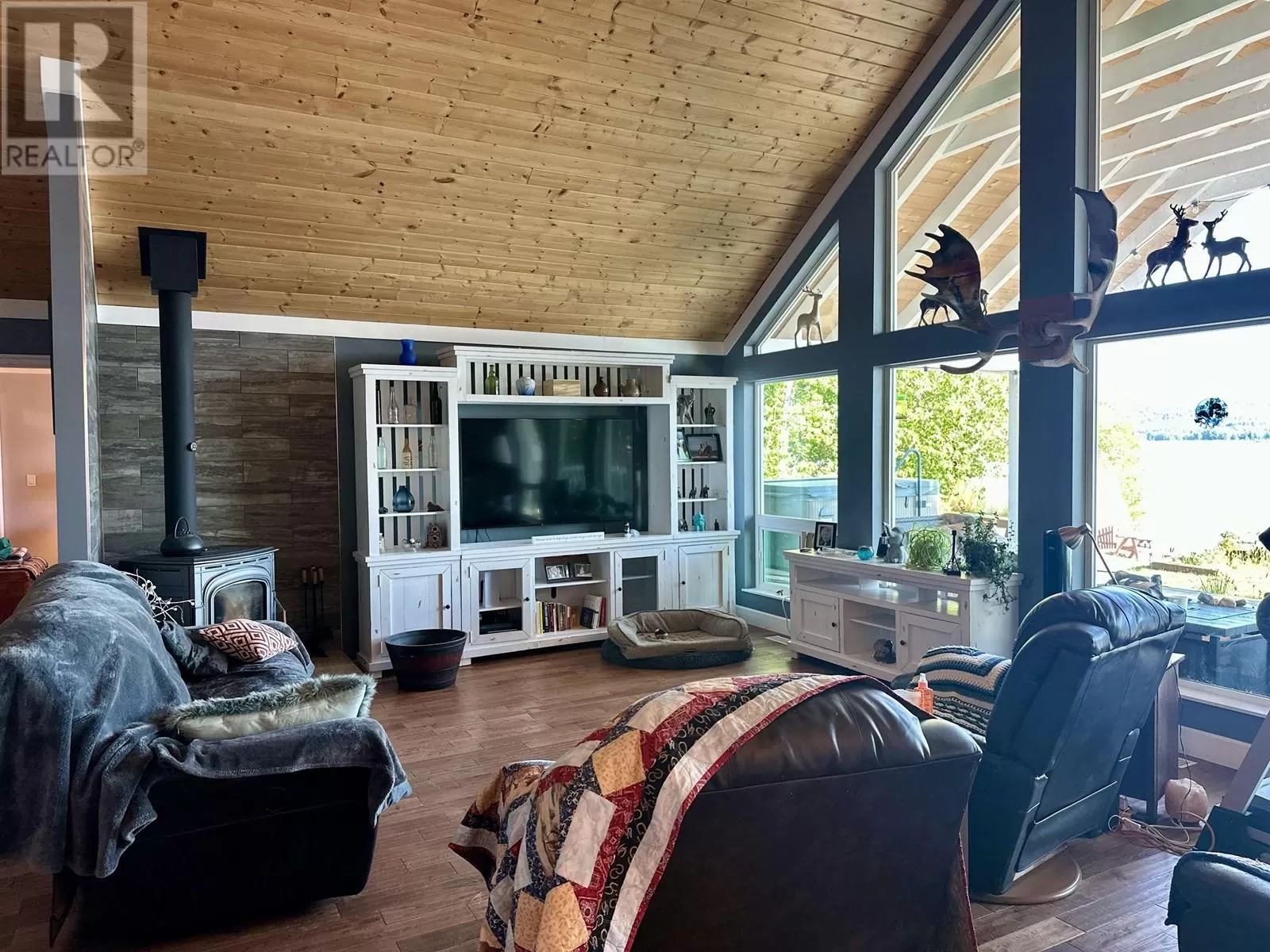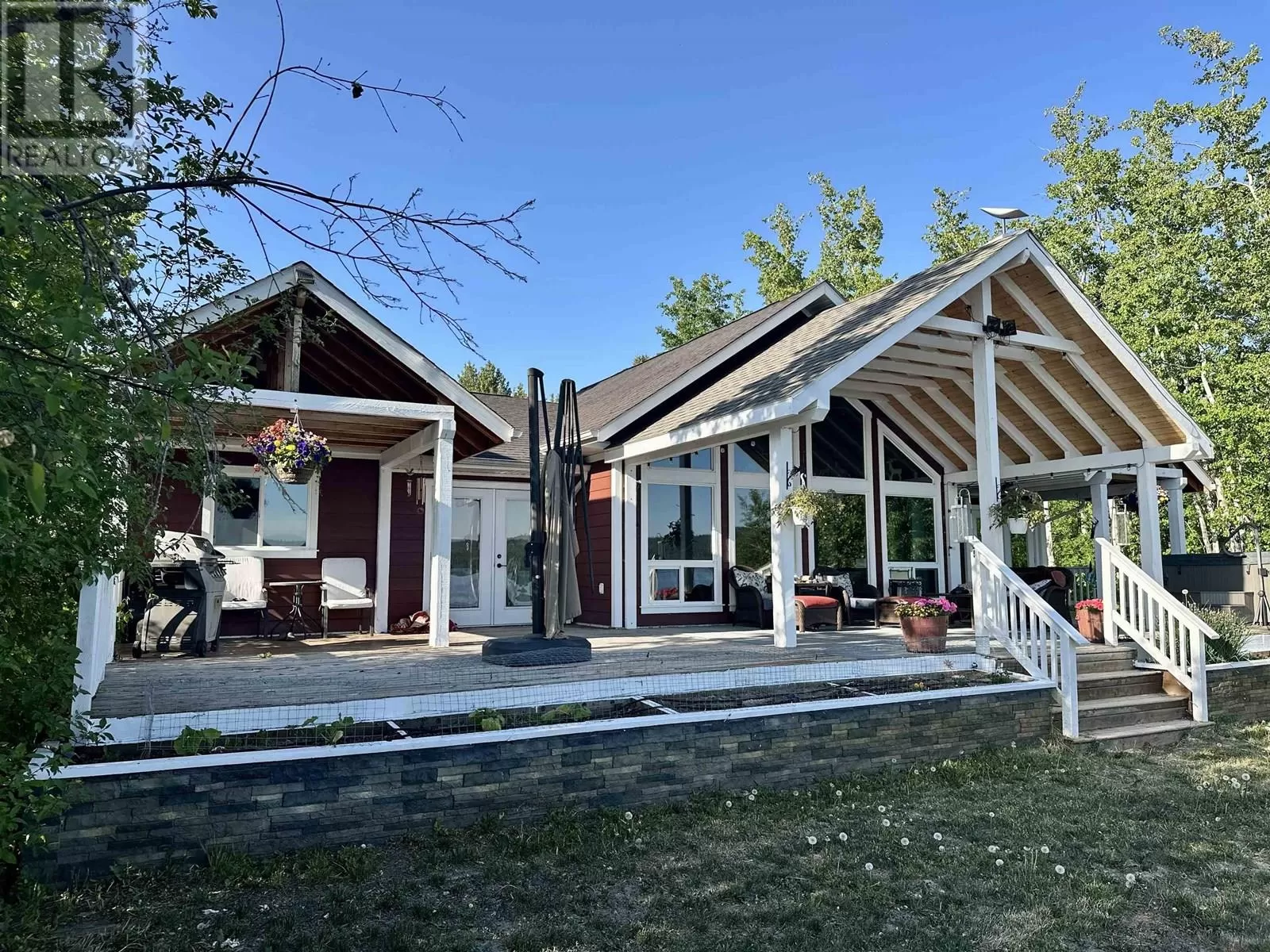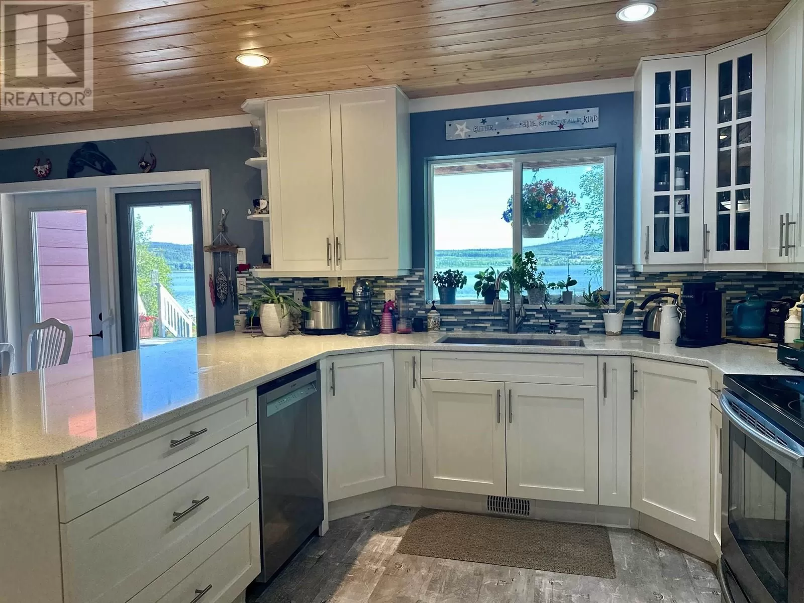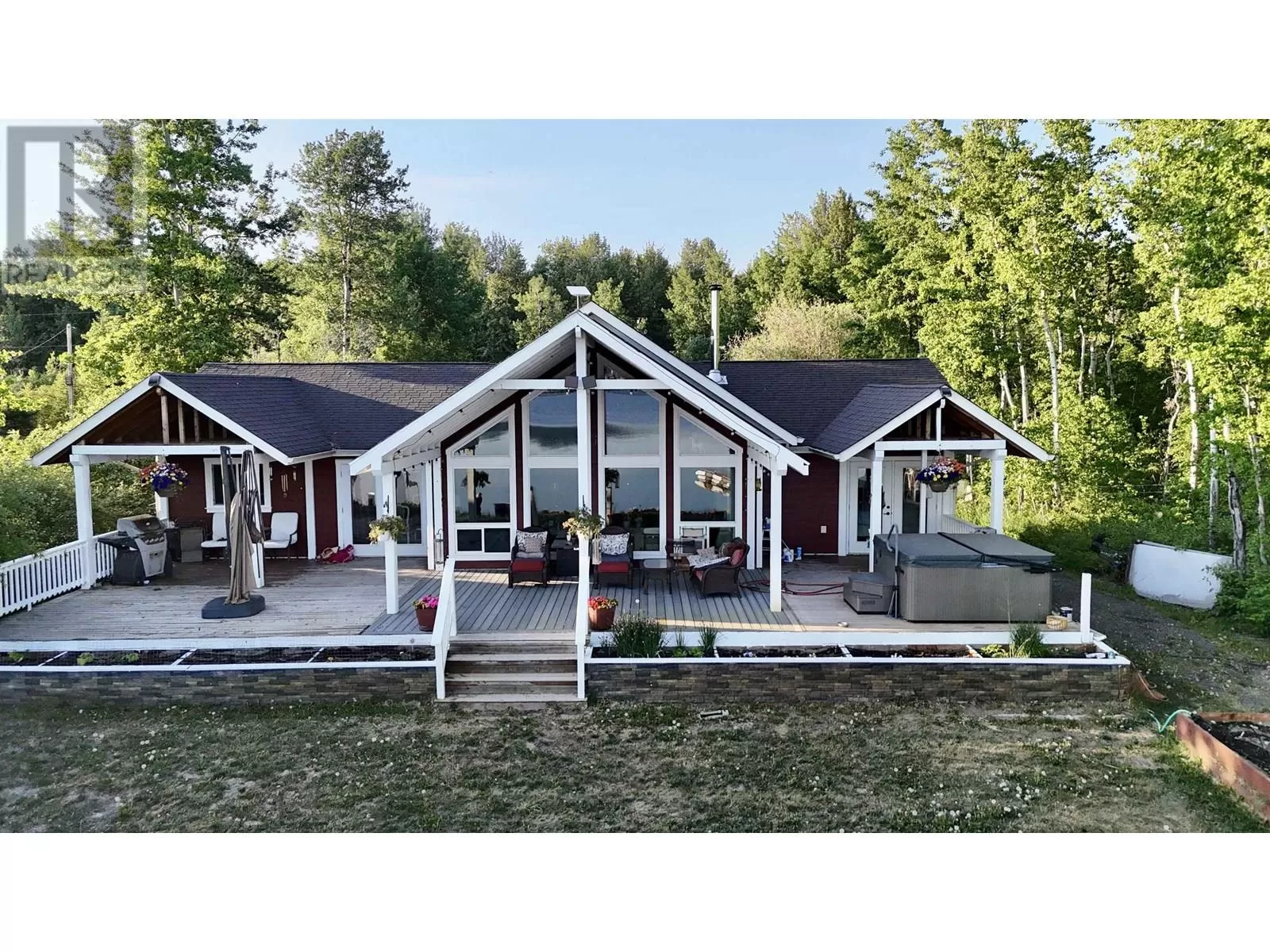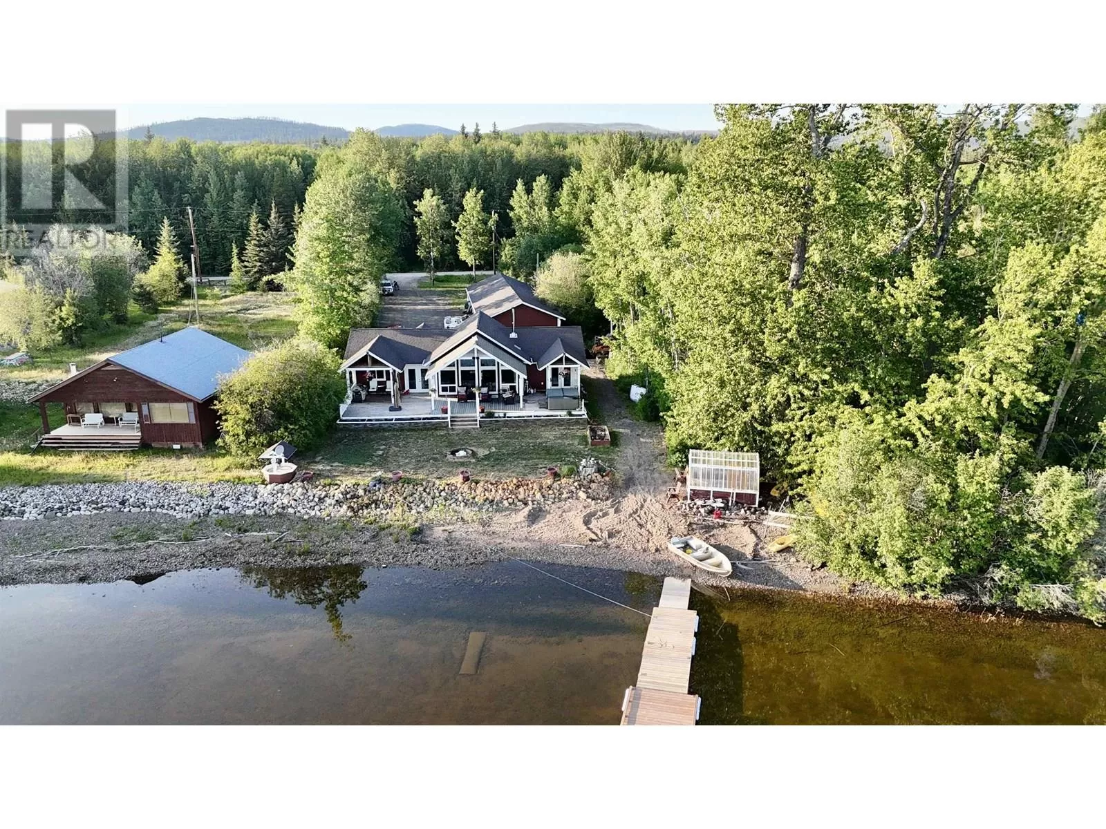 Custom built lakefront home with expansive views of Fraser Lake. This one-level home was built with attention to detail and has a great layout, featuring an open concept floor plan with lake views from almost every room in the house. The kitchen boasts quartz countertops and a large peninsula island, and the dining room opens out to the full-length, partially covered sundeck. The living room features the best views from the home with expansive floor to ceiling triple pane windows and a nice Blaze King wood stove to keep the home cozy on the cooler days. The primary bedroom has a gorgeous ensuite with a tiled shower and soaker tub and opens on to a covered deck and hot tub. Outside is a heated workshop (24'X36') with 4 attached carport bays, offering plenty of parking and storage space. (id:27476)