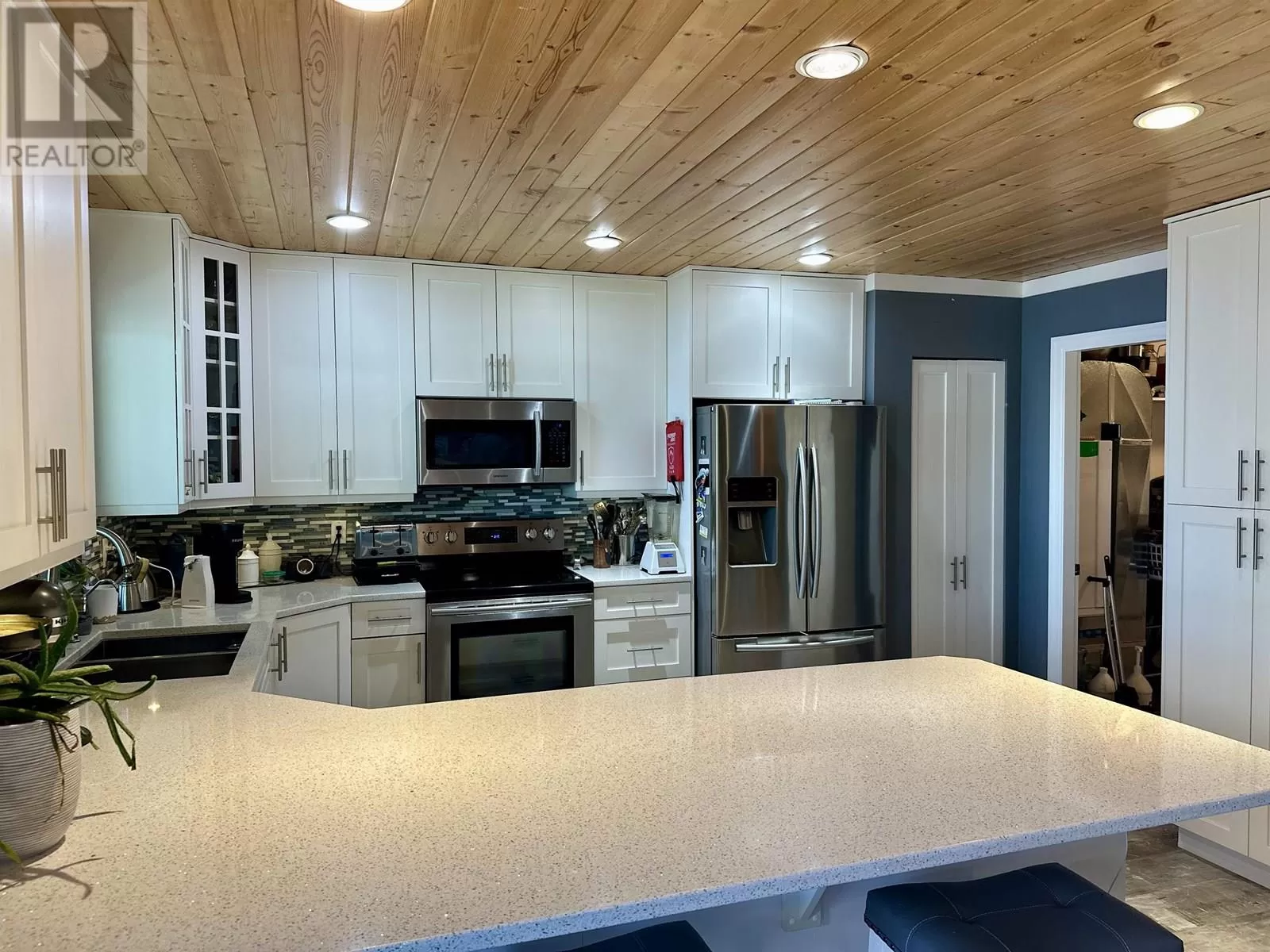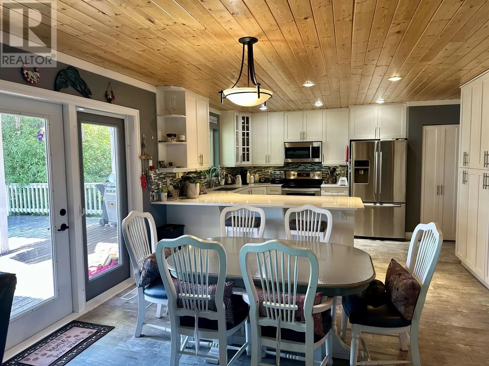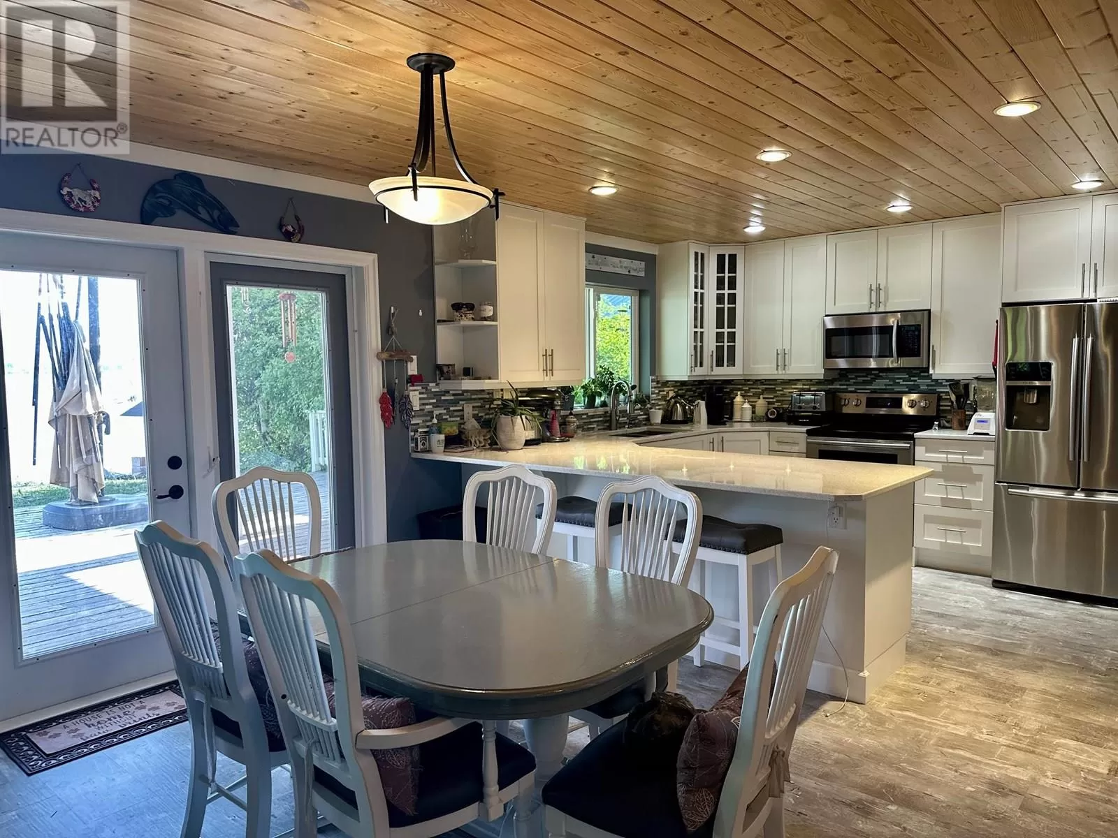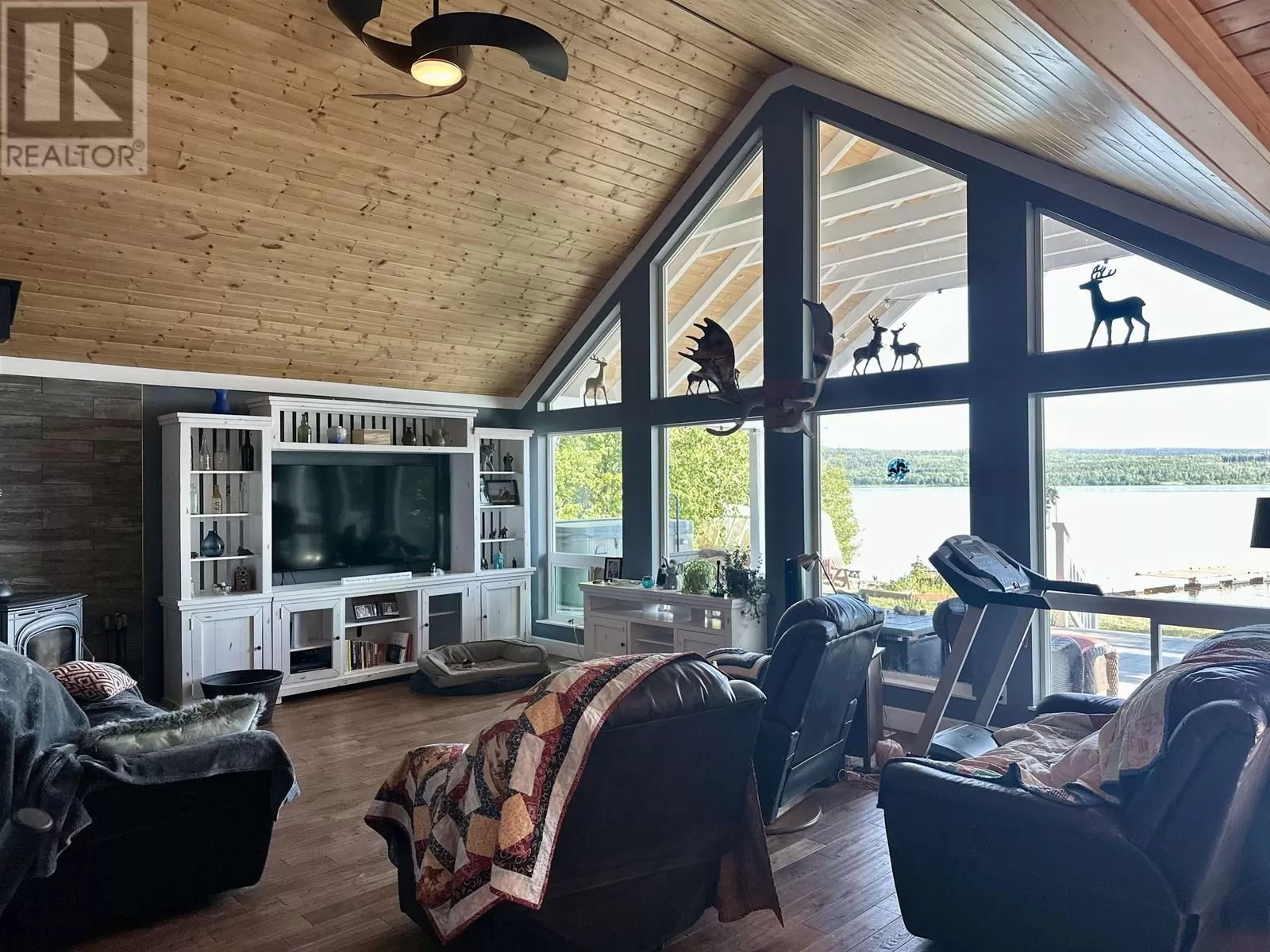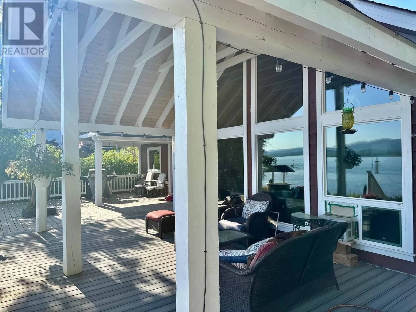 Custom built lakefront home with expansive views of Fraser Lake. This one-level home was built with attention to detail and has a great layout, featuring an open concept floor plan with lake views from almost every room in the house. The kitchen boasts quartz countertops and a large peninsula island, and the dining room opens out to the full-length, partially covered sundeck. The living room features the best views from the home with expansive floor to ceiling triple pane windows and a nice Blaze King wood stove to keep the home cozy on the cooler days. The primary bedroom has a gorgeous ensuite with a tiled shower and soaker tub and opens on to a covered deck and hot tub. Outside is a heated workshop (24'X36') with 4 attached carport bays, offering plenty of parking and storage space. (id:27476)