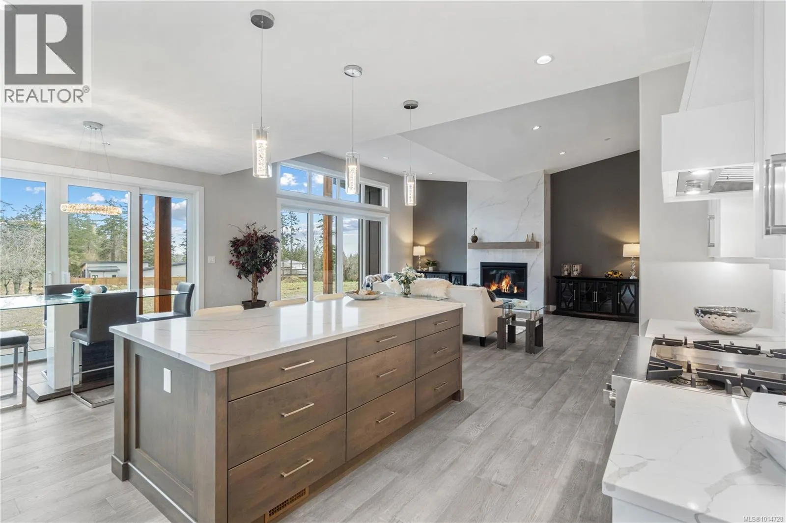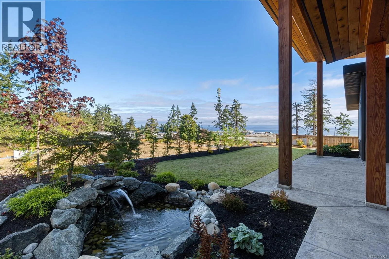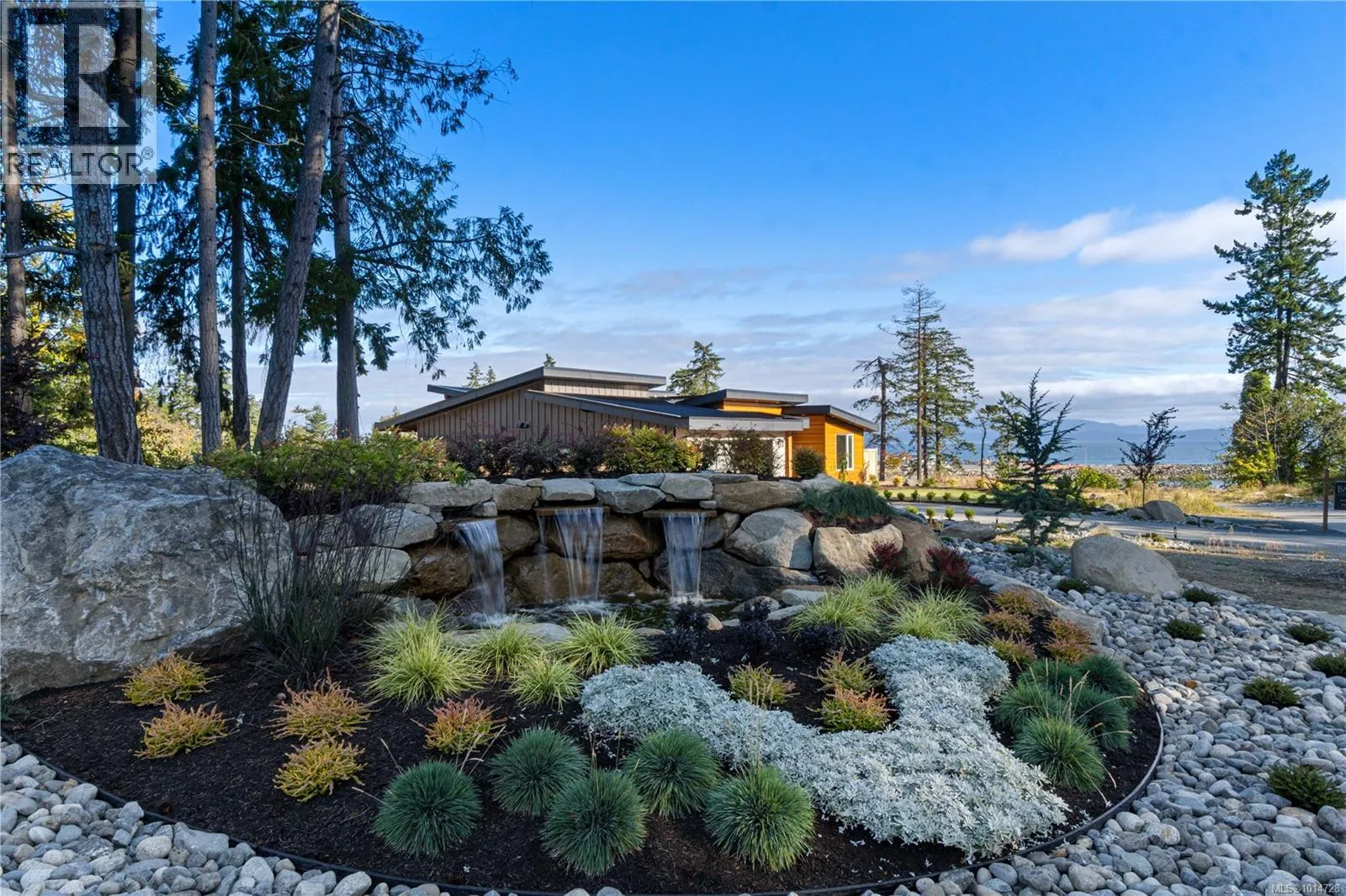 Welcome to Bayview Estates Ideally situated on a pristine sandy bay between Parksville and Qualicum Beachâjust moments from the French Creek Marinaâthis modern contemporary show home captures the essence of West Coast luxury living. Expertly crafted with clean architectural lines and upscale finishes, this 3-bedroom, 2-bathroom plus den residence features soaring ceilings and a spacious open-concept layout designed for both relaxed living and elegant entertaining. The gourmet kitchen is a chefâs dream, complete with quartz countertops, a large central island, custom cabinetry, a hidden oversized pantry, and a state-of-the-art JennAir gas cooktop. From the moment you enter, you're greeted by marble tile in the grand foyer and a stunning water feature, all framed by exquisite professional landscaping that elevates curb appeal to the next level. Unwind or entertain in style on the covered stamped concrete patio while enjoying sweeping views of the inlet. GST not included. (id:27476)