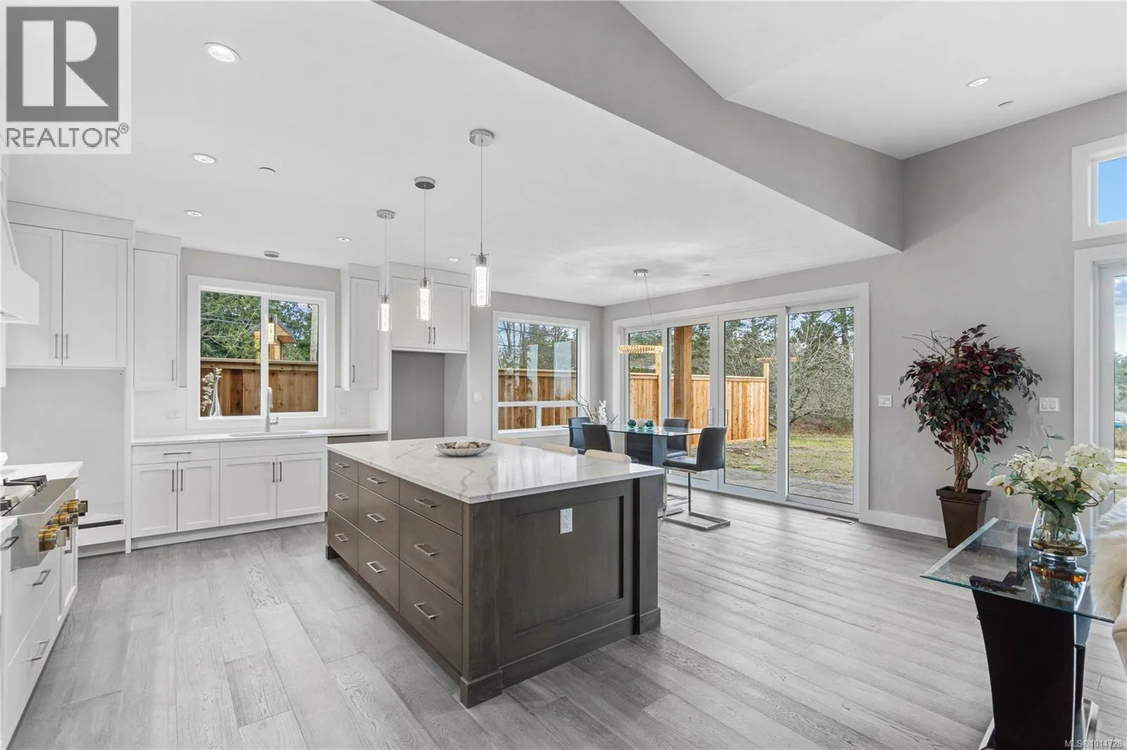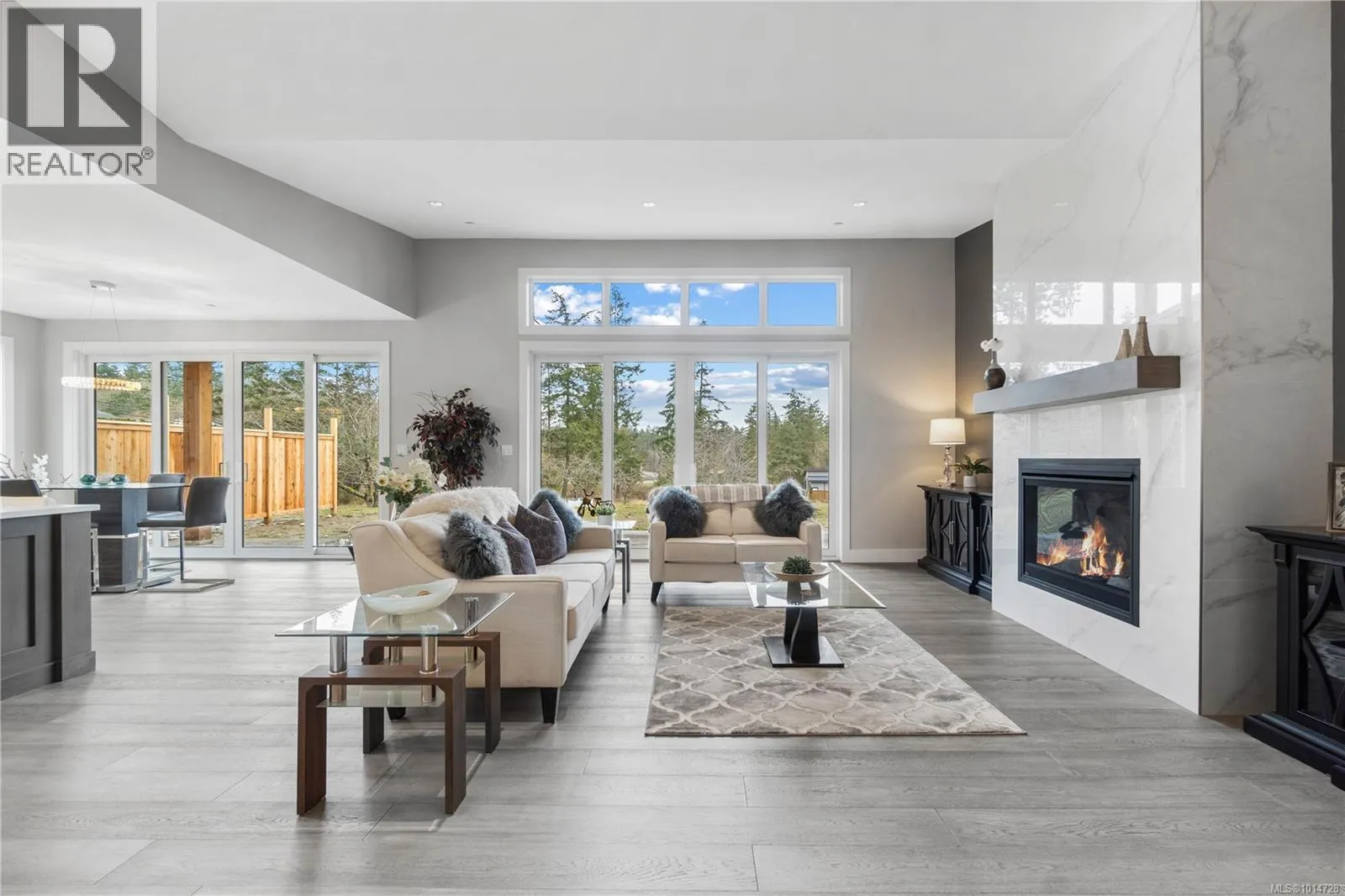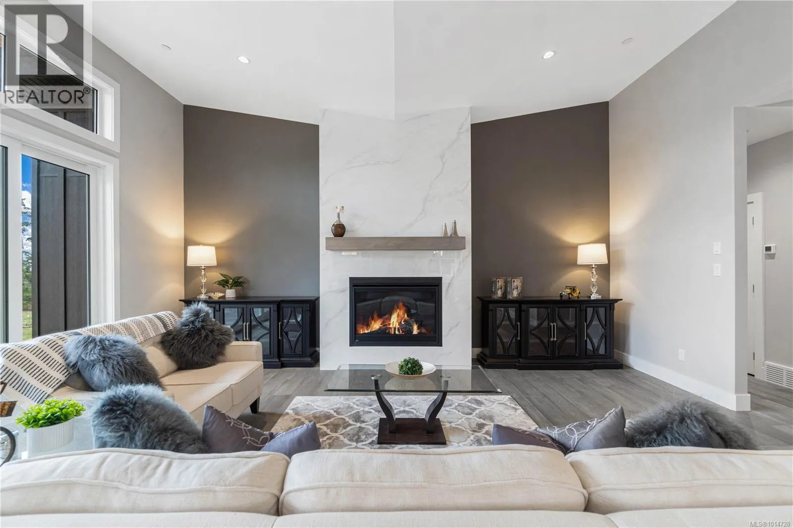 Welcome to Bayview Estates Ideally situated on a pristine sandy bay between Parksville and Qualicum Beachâjust moments from the French Creek Marinaâthis modern contemporary show home captures the essence of West Coast luxury living. Expertly crafted with clean architectural lines and upscale finishes, this 3-bedroom, 2-bathroom plus den residence features soaring ceilings and a spacious open-concept layout designed for both relaxed living and elegant entertaining. The gourmet kitchen is a chefâs dream, complete with quartz countertops, a large central island, custom cabinetry, a hidden oversized pantry, and a state-of-the-art JennAir gas cooktop. From the moment you enter, you're greeted by marble tile in the grand foyer and a stunning water feature, all framed by exquisite professional landscaping that elevates curb appeal to the next level. Unwind or entertain in style on the covered stamped concrete patio while enjoying sweeping views of the inlet. GST not included. (id:27476)