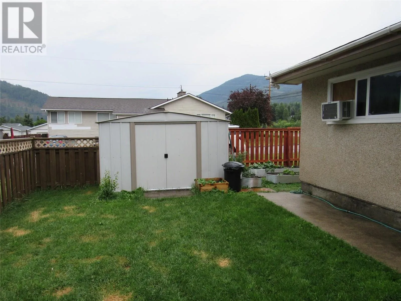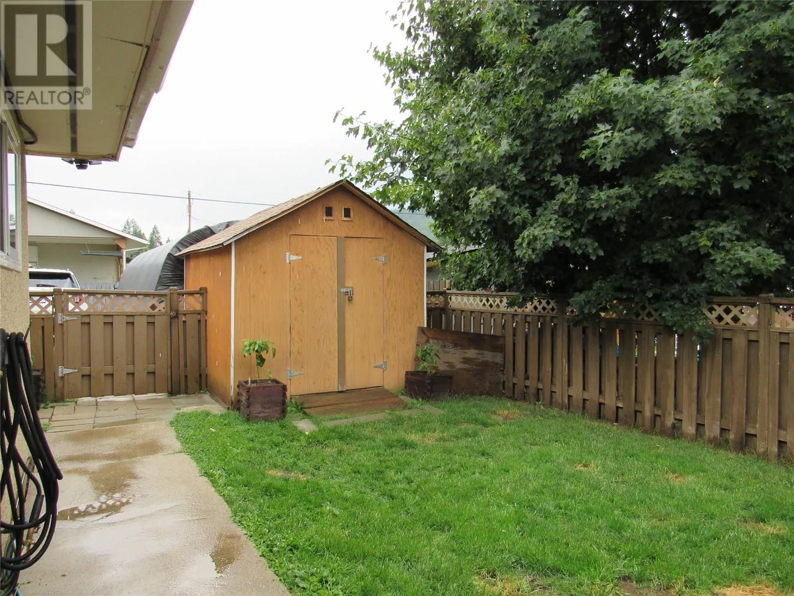 FRUITVALE RANCHER, one level living close to all amenities. This very nice rancher offers easy living with everything on one floor. This home would work for young families and retirees alike. You'll love the massive living room with plenty of room for you large comfy furniture and big screen. The newly installed high efficiency gas fireplace will keep you warm and cozy. Mom will appreciate the light and bright kitchen that features loads of cabinets, lots of prep space and a stainless steel appliance package. The adjoining dining area is a great place for those family dinners, or open the slider to the private patio where the barbecue is always welcome. There are three good size bedrooms, a full bath and the master has an ensuite. The easy-care laminate flooring is perfect for kids and pets alike. Main floor laundry of course, and there's an attached double garage to keep the autos warm and dry. The corner lot has plenty of parking and you can walk to downtown in minutes. You'll find schools and daycares right in the neighborhood. Other features include: efficient vinyl windows, two garden sheds, 6 parking spaces, newer hot water tank, and a fenced backyard. A great package (id:27476)