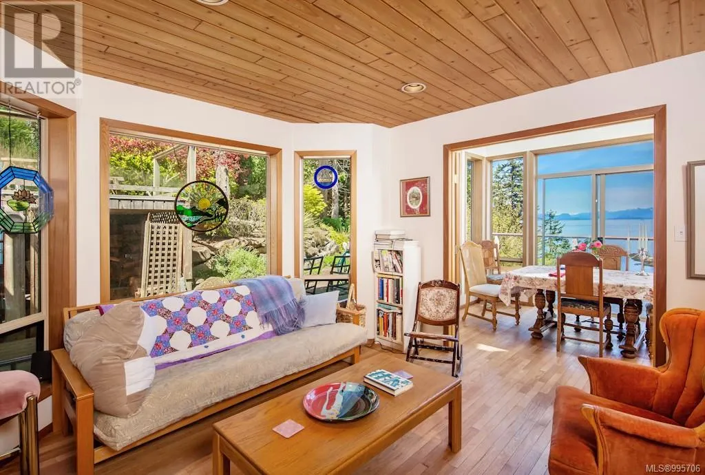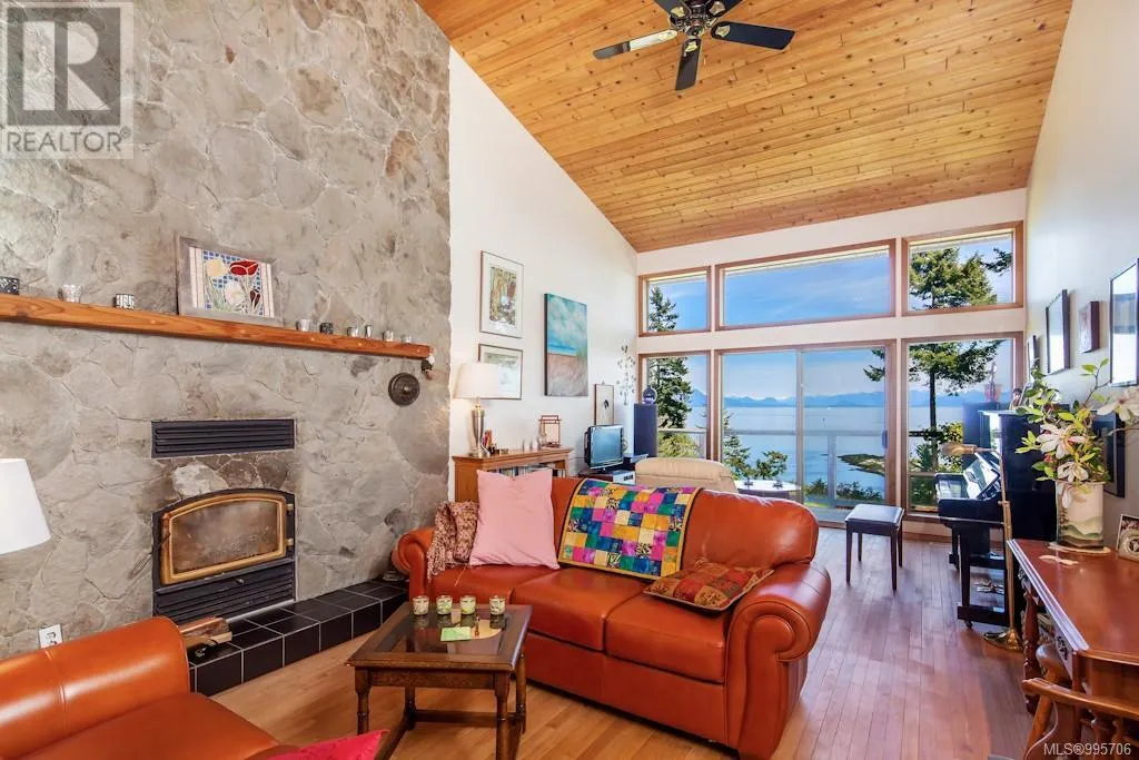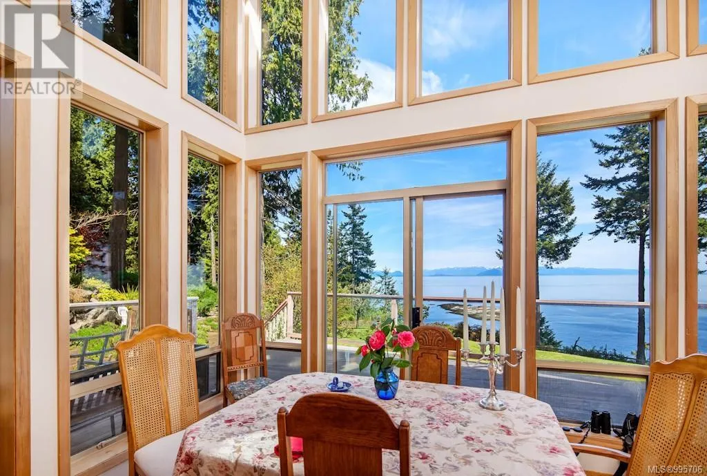 Trophy Westcoast Oceanfront Property! 6 Acres of sprawling oceanfront on Gabriola Island with approximately 1400 feet of spectacular shoreline. A private walkway leads from the main residence along the natural peninsula to a gazebo with 360 degree views overlooking sandstone sculptures, abundant sea life and private beachfront where the pristine waters of Georgia Strait are framed by coastal snow-capped mountains. The Seller holds a Foreshore Lease which allows for dock. Located at the end of a no thru road, offering unparalleled privacy. The 4,105 sq. ft. West Coast Style home features cathedral ceilings and floor to roof windows to enjoy the serene ocean views. Wood fireplaces in the living room and master bedroom create warmth and ambience as does the pellet stove on the low level. There is also a separate one bedroom apartment above the huge shop and 2 other garage/workshops. Indoor parking for 20 +cars, RV's, Boats etc. Easy ferry ride from Lower Mainland (id:27476)