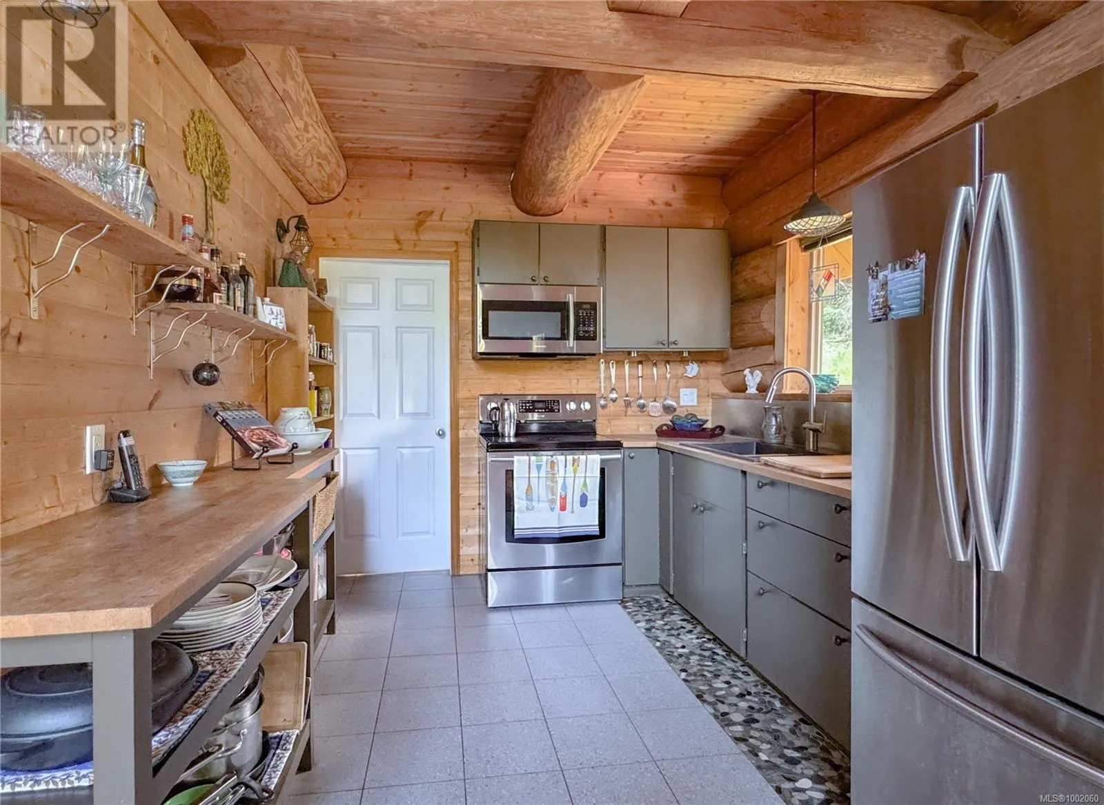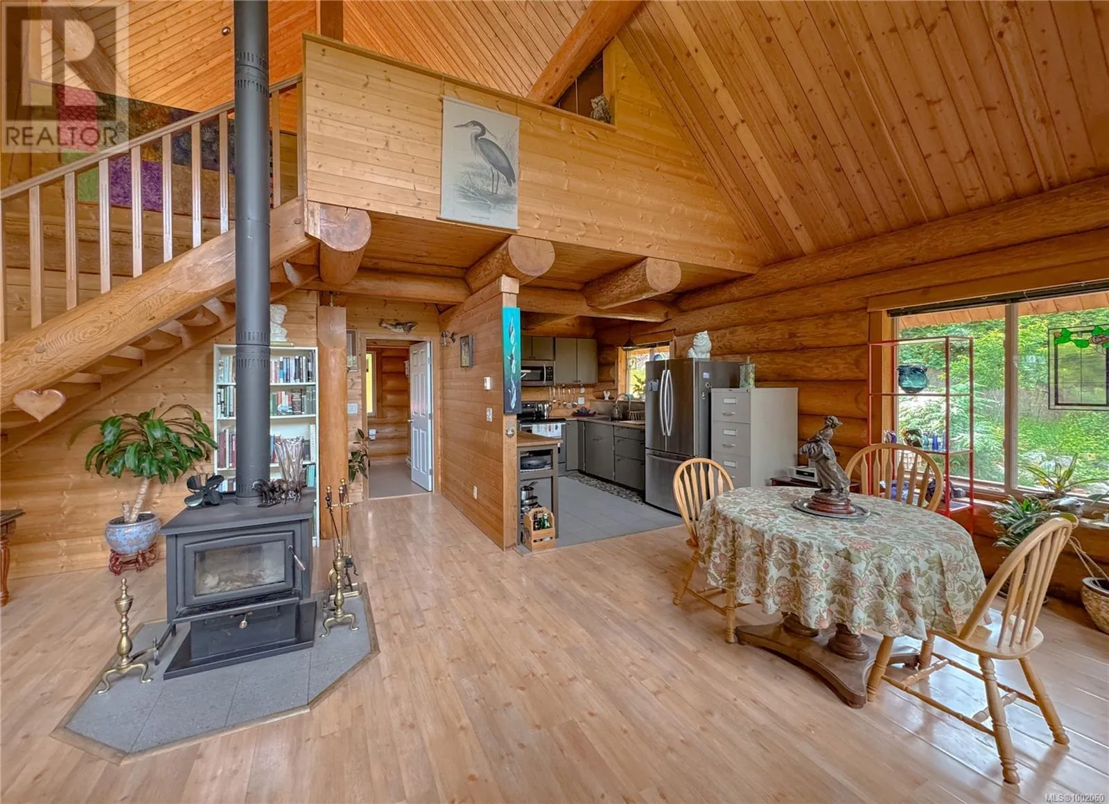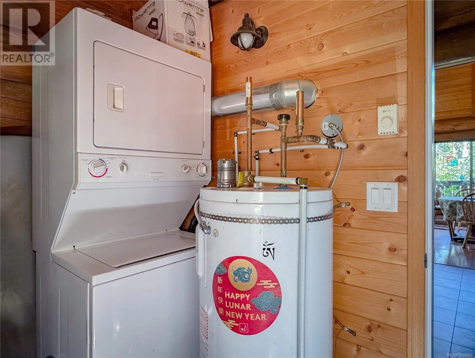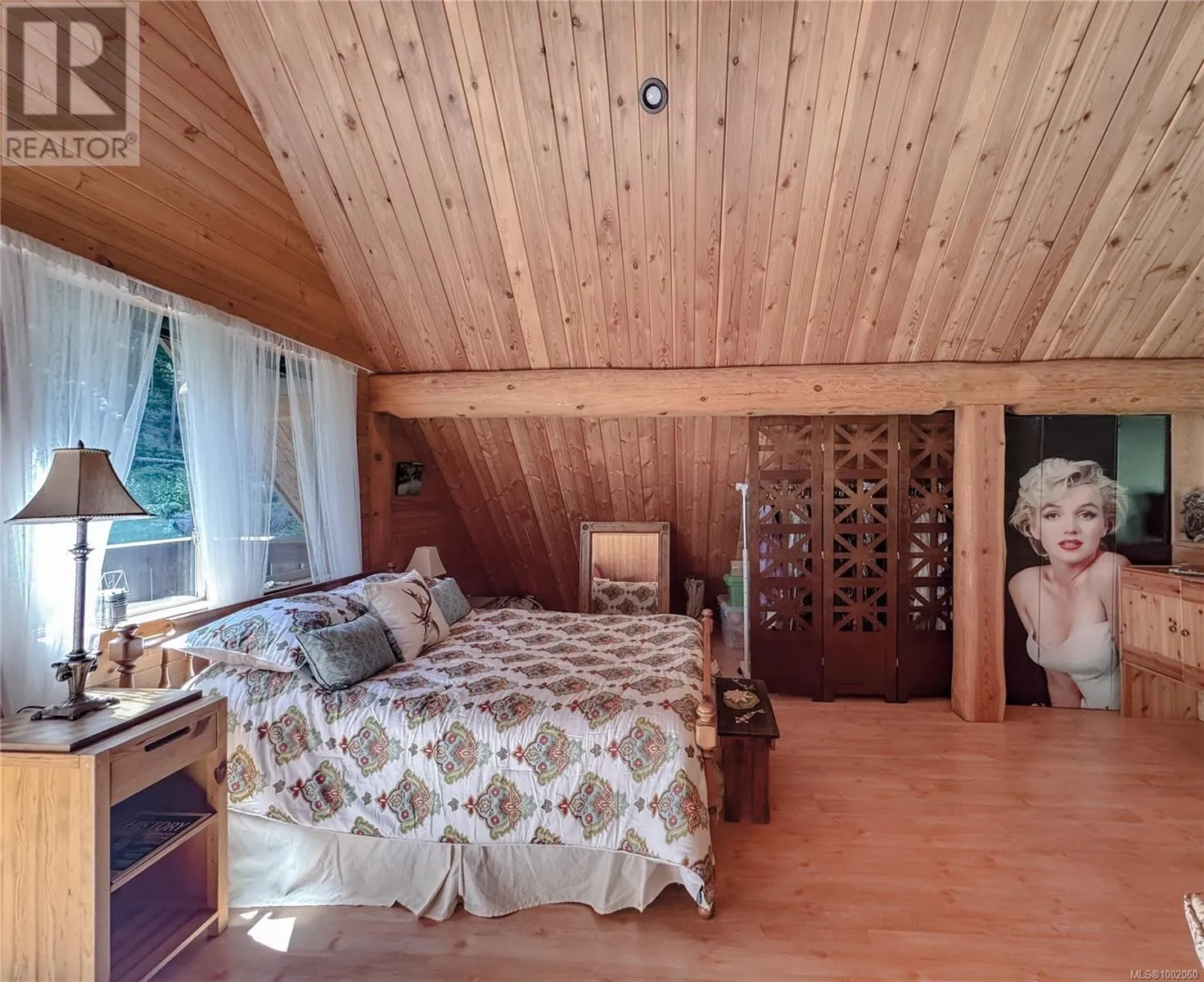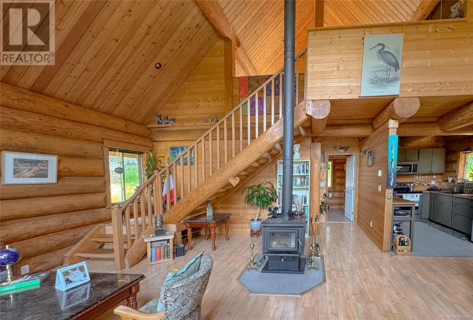 This 1,150 sq ft Western Red Cedar log home is full of warmth, character, and West Coast charm. Set in the sought-after Whalebone Beach area of Gabriola Islandâwell-loved for its beaches, trails, and vibrant arts communityâthis 2-bedroom, 1-bathroom home offers a peaceful lifestyle on a sunny lot that backs onto larger acreage. Built in 2005, the home features striking log beams, a cozy woodstove, large windows, and an open-concept kitchen and dining area that opens onto a sunny deckâperfect for relaxing or entertaining. The primary bedroom is conveniently located on the main floor, while the open loft above offers flexible space for a second bedroom, studio, or home office, complete with its own private deck. A metal roof, wood accents, and thoughtful layout add to the home's appeal. Just a short walk from some of Gabriolaâs best beaches and waterfront parks, this inviting property is serviced by a well and septic system. The crawl space offers lots of additional storage space. Floor plans and virtual tours available. Buyer to verify all details if deemed important. (id:27476)