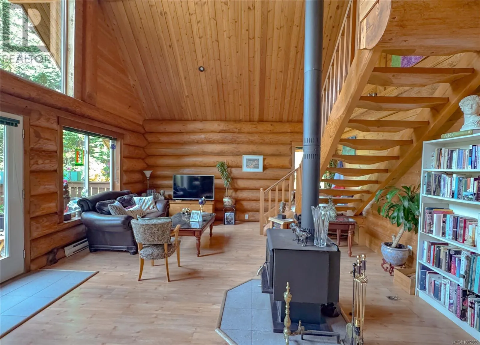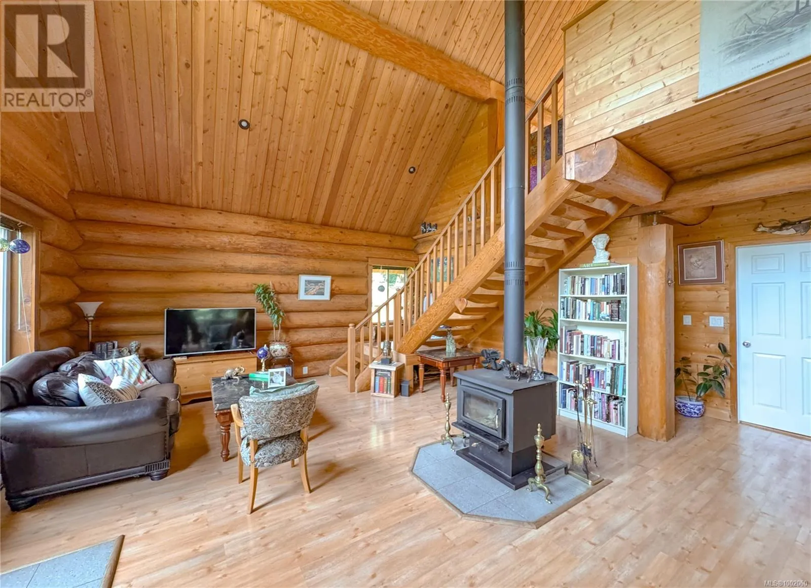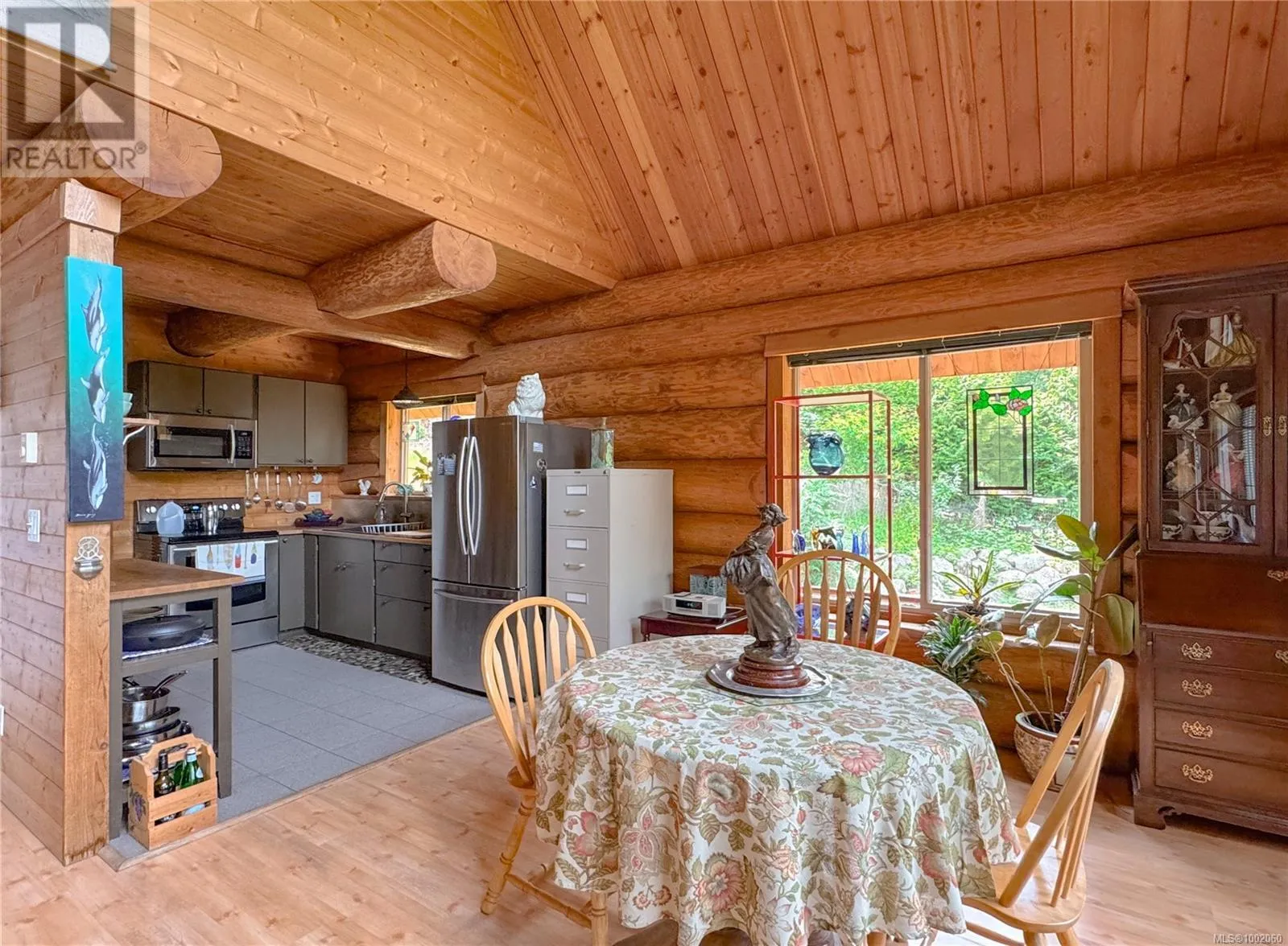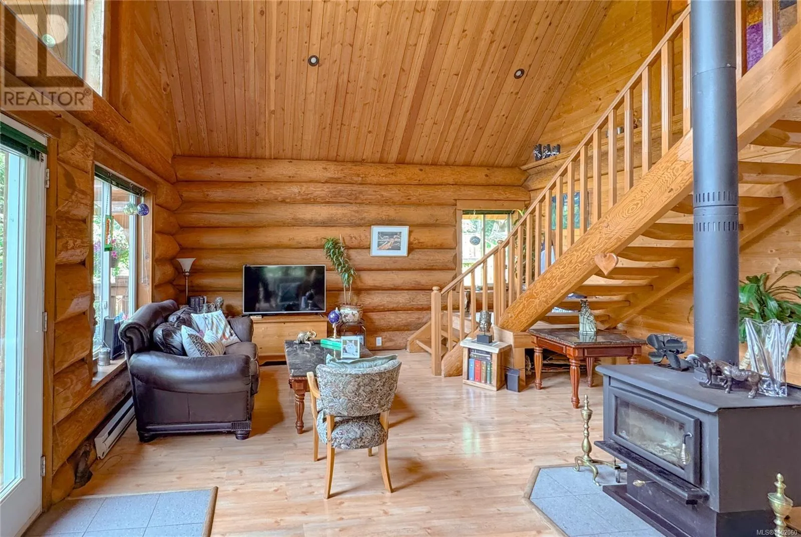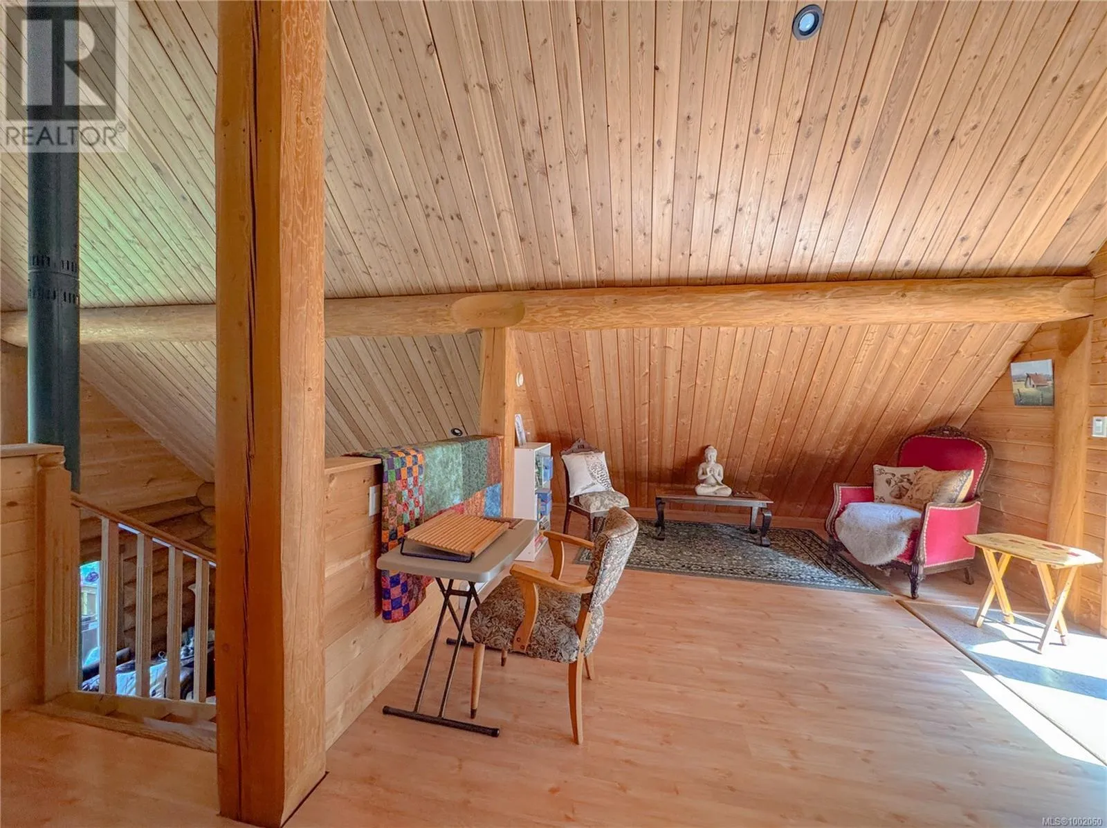 This 1,150 sq ft Western Red Cedar log home is full of warmth, character, and West Coast charm. Set in the sought-after Whalebone Beach area of Gabriola Islandâwell-loved for its beaches, trails, and vibrant arts communityâthis 2-bedroom, 1-bathroom home offers a peaceful lifestyle on a sunny lot that backs onto larger acreage. Built in 2005, the home features striking log beams, a cozy woodstove, large windows, and an open-concept kitchen and dining area that opens onto a sunny deckâperfect for relaxing or entertaining. The primary bedroom is conveniently located on the main floor, while the open loft above offers flexible space for a second bedroom, studio, or home office, complete with its own private deck. A metal roof, wood accents, and thoughtful layout add to the home's appeal. Just a short walk from some of Gabriolaâs best beaches and waterfront parks, this inviting property is serviced by a well and septic system. The crawl space offers lots of additional storage space. Floor plans and virtual tours available. Buyer to verify all details if deemed important. (id:27476)