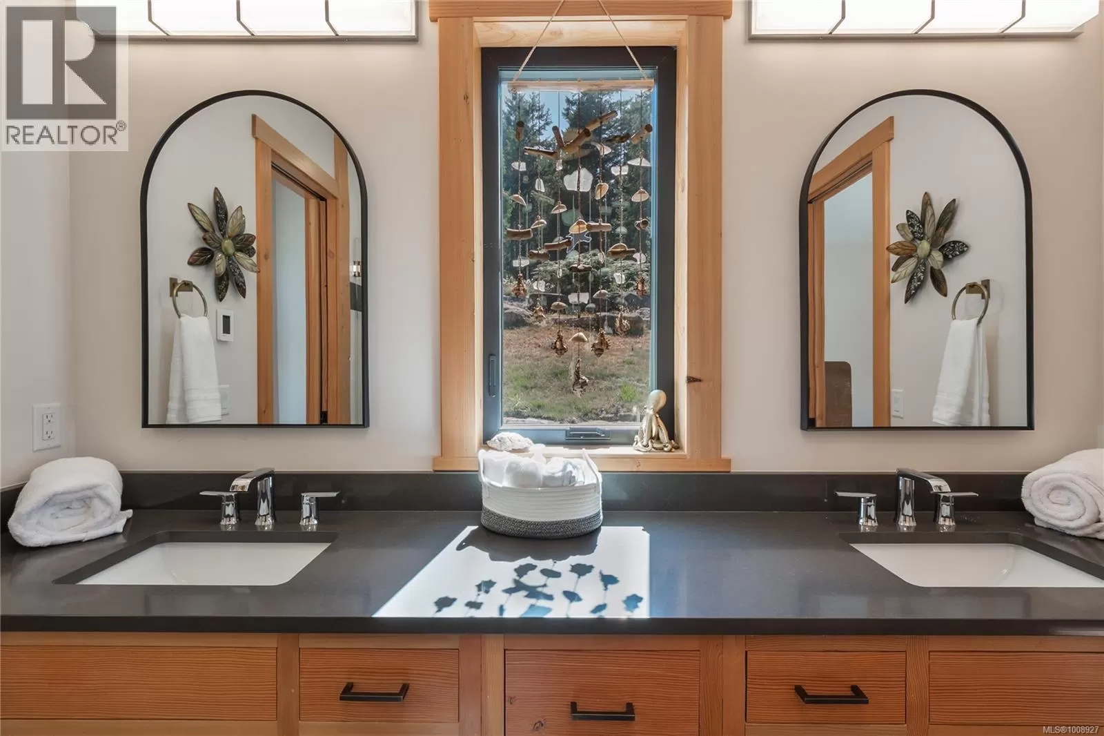Gabriola Island Ocean Views!! Perched above Sandwell Provincial Park and Lock Bay, this stunning 5-acre ocean view property offers the perfect blend of privacy, beauty, and island living. A picturesque winding driveway welcomes you with custom rock features, a tranquil waterfall and pond, and leads to a brand-new, 3,100+ sq.ft. single-level home bathed in sunshine. Inside, panoramic ocean views fill most rooms. The chefâs kitchen is a showstopper, featuring custom cabinetry, stainless appliances, a massive island with heated counters, and a seamless connection to the spectacular great room with its arched beams and one of three cozy fireplaces. This thoughtfully designed home includes 3 bedrooms and 3 spa-inspired bathrooms with heated floors, including a gorgeous primary suite. A spacious family/media room with an additional sitting area invites you to relax and take in the abundant wildlife and marine activity right outside your windows. Step outside to expansive decks, perfect for soaking in the sun and catching unforgettable sunrises. The gently sloping acreage is a blank canvas to create your dream oasisâspace for gardens, recreation, or future projects, with plenty of parking. Modern comforts include a back-up generator, well and cistern water systems, a new shed with power and water, and an extra transformer to support your future garage or workshop. Gabriolaâs friendly, artistic community, vibrant outdoor lifestyle, and convenient amenities make island living easy. Youâre just a short commute to Nanaimo via two ferry options, or quick connections to the mainland via Hullo or Helijet. Discover the perfect balance of natural beauty, modern comfort, and endless possibility on this spectacular Gabriola Island property. (id:27476)