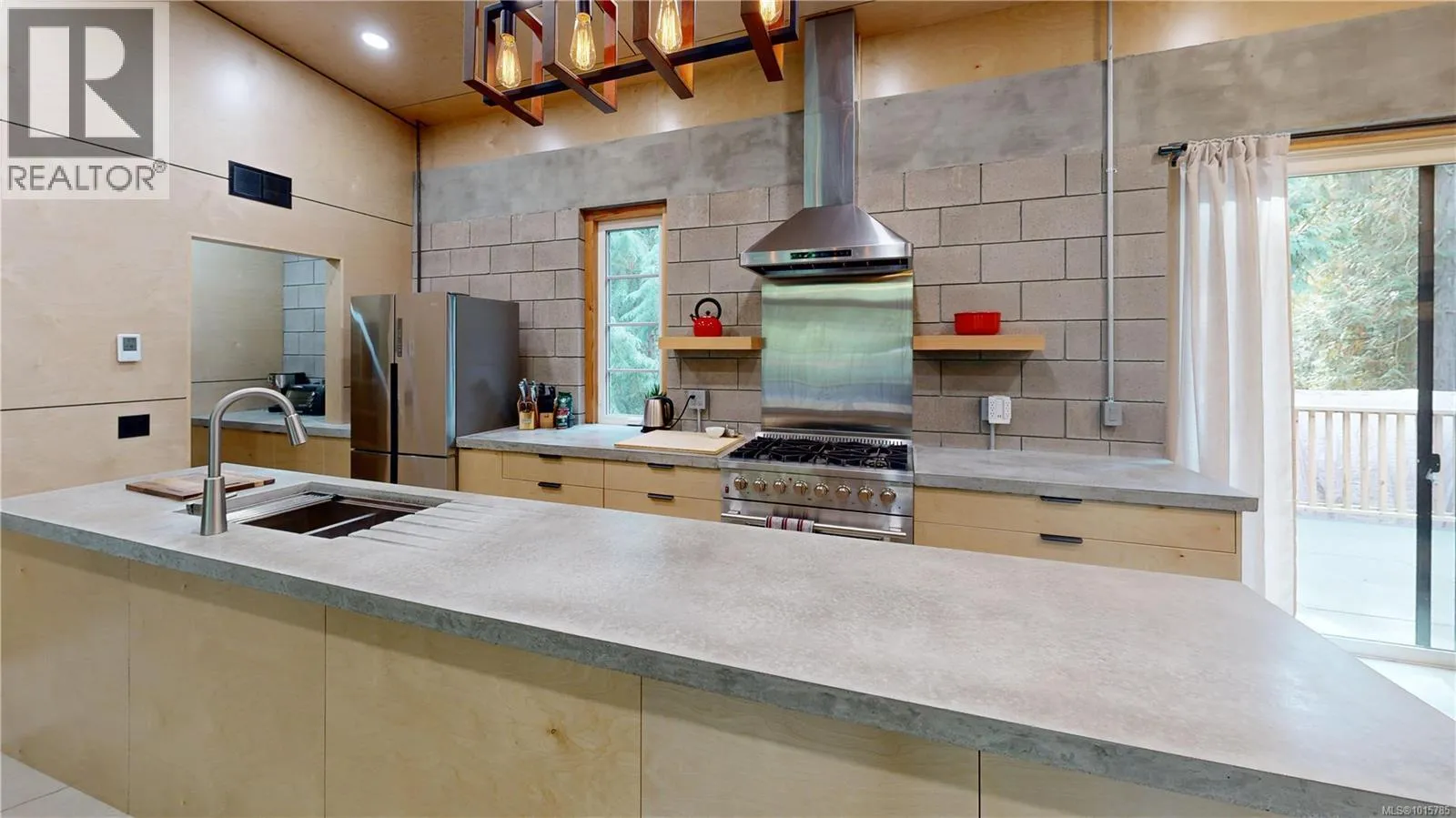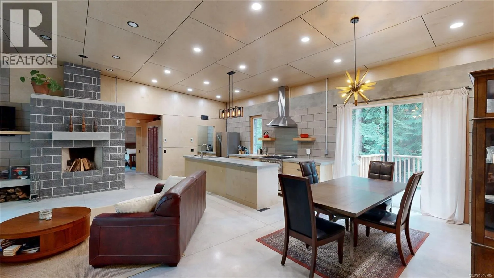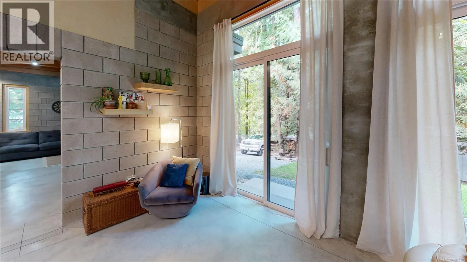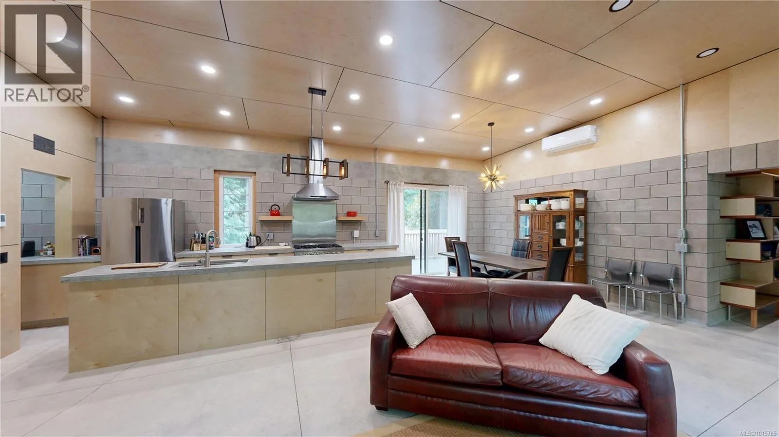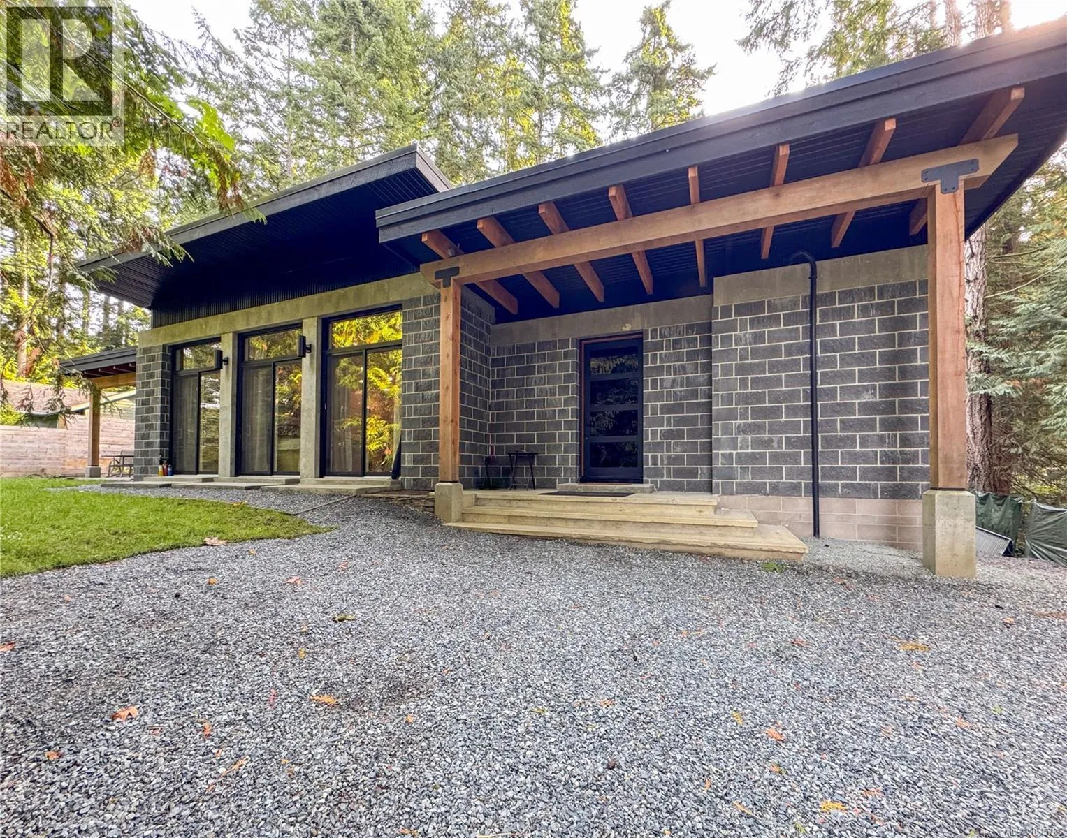Step through the edge-grain fir door into a Custom Designed 2-bed/2-bath Modern home where comfort meets low-maintenance living. Fully engineered and masonry-built, the home is designed for durability and efficiency with a metal roof, vaulted ceilings, solid masonry with 16'' thick walls, striking wood beams, and in-floor heated concrete throughout. A heat pump maintains year-round comfort, while multiple patio doors extend the open living/dining/kitchen outdoors. A central, custom-built fireplace in the open style living area adds cozy ambience in the cooler months. The cookâs kitchen offers custom birch cabinetry, poured-concrete counters, a propane range, and a walk-in pantry for extra storage. The split-bedroom plan places the two bedrooms on opposite sides of the great room for privacy. The spacious primary suite has deck access, a walk-in closet, and a serene ensuite with a soaker tub and heated towel rack. The second bedroom enjoys its own covered deckâperfect for morning coffee or a quiet read. Thoughtful custom built-ins provide a nice aesthetic and additional storage. Water is supplied by a private well and treated with a filtration system. An additional ~450 sq. ft. detached garage awaits finishingâideal for a workshop, studio, or gear storage. Sited for privacy with a classic West Coast setting, this is move-in-ready island living. (id:27476)