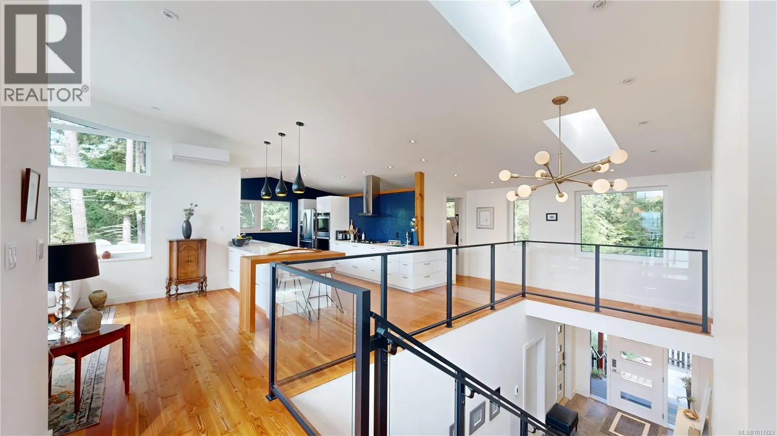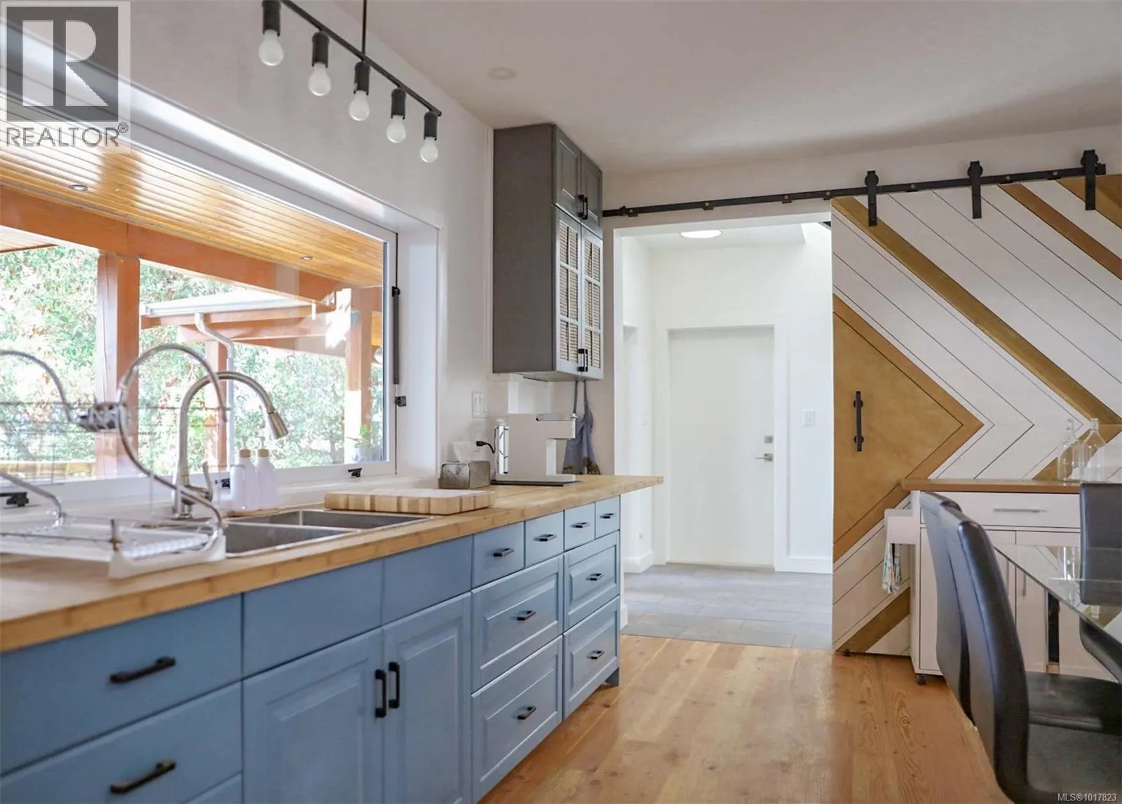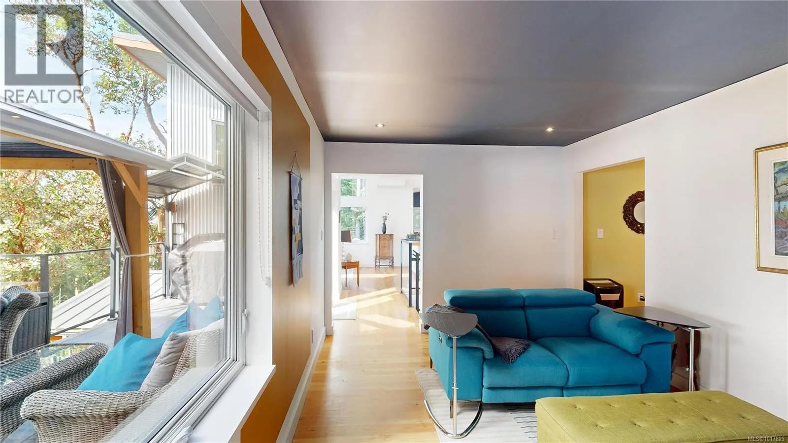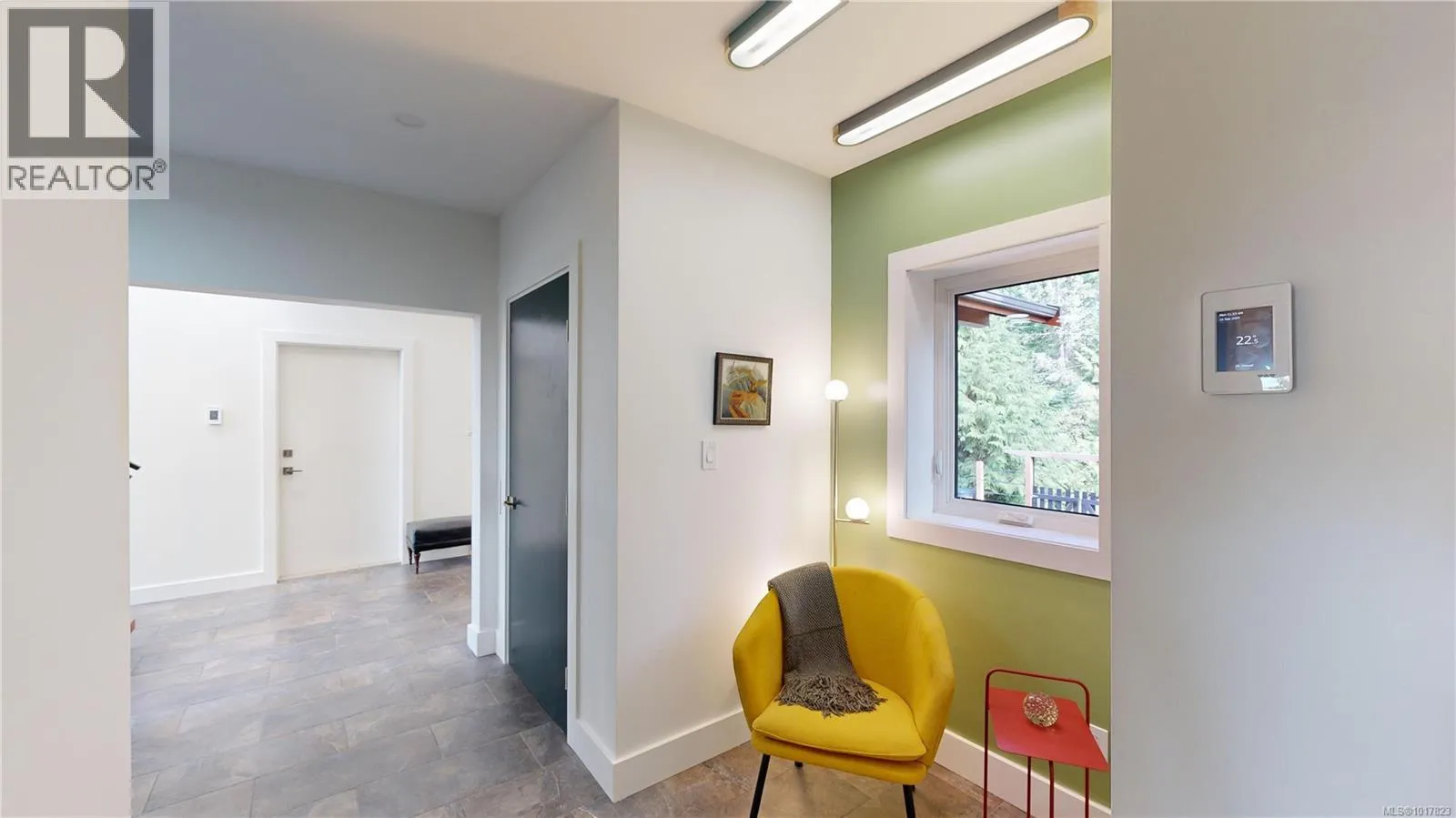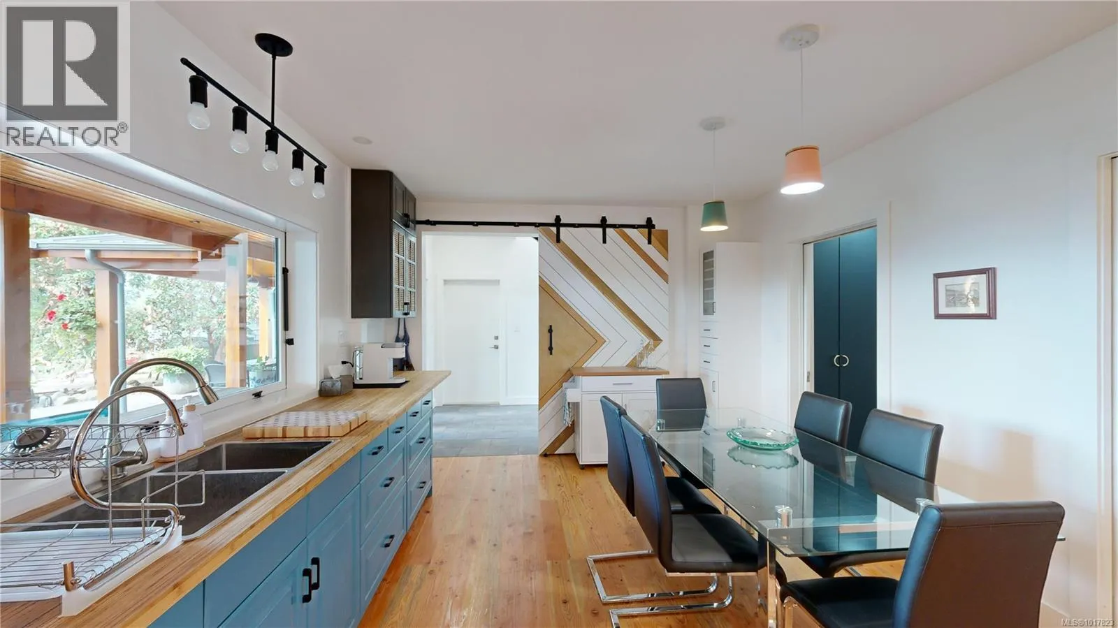This beautifully crafted custom 2577sq.ft home perfectly combines modern design with natural beauty. Situated on a high-bank waterfront property, it showcases breathtaking ocean and mountain views through expansive windows. The exterior features a mix of metal and wood siding, while inside, you're welcomed by a grand entrance and a striking open staircase. The main living area includes wood floors, vaulted ceilings, two efficient heat pumps, a cozy propane fireplace, and a chefâs kitchen equipped with a propane cookstove, double ovens, pantry, and a wooden eating bar. Also on this floor, you'll find an office area, den, laundry room, and a spacious primary bedroom. The primary ensuite is a luxurious retreat, featuring a double vanity, glass shower, stunning tile work, and a relaxing soaker tub. The lower level is ideal for hosting guests, offering comfort, privacy, and direct access to the outdoors. There, youâll find an outdoor eating bar at the kitchen window, firepits, expansive decks, patios, and a garden area to explore on this 0.61 acre property. The property is mostly fenced and includes a storage shed, a Generac generator, a finished garage, and a dedicated RV site. To top it off, the home is designed for ease of living with an elevator, making this property truly move-in ready. (id:27476)