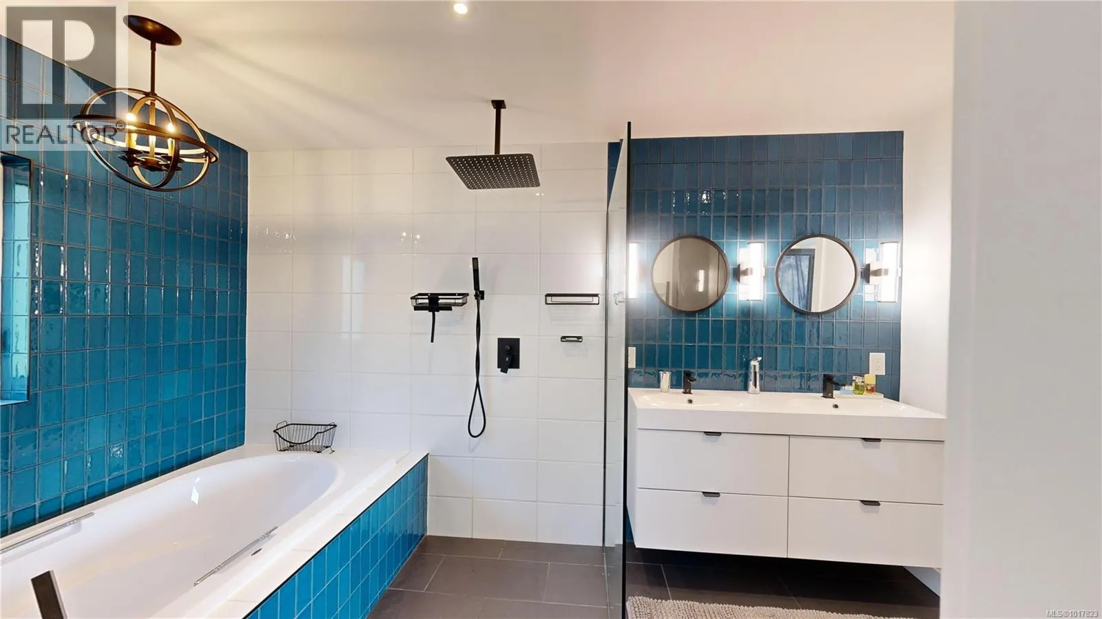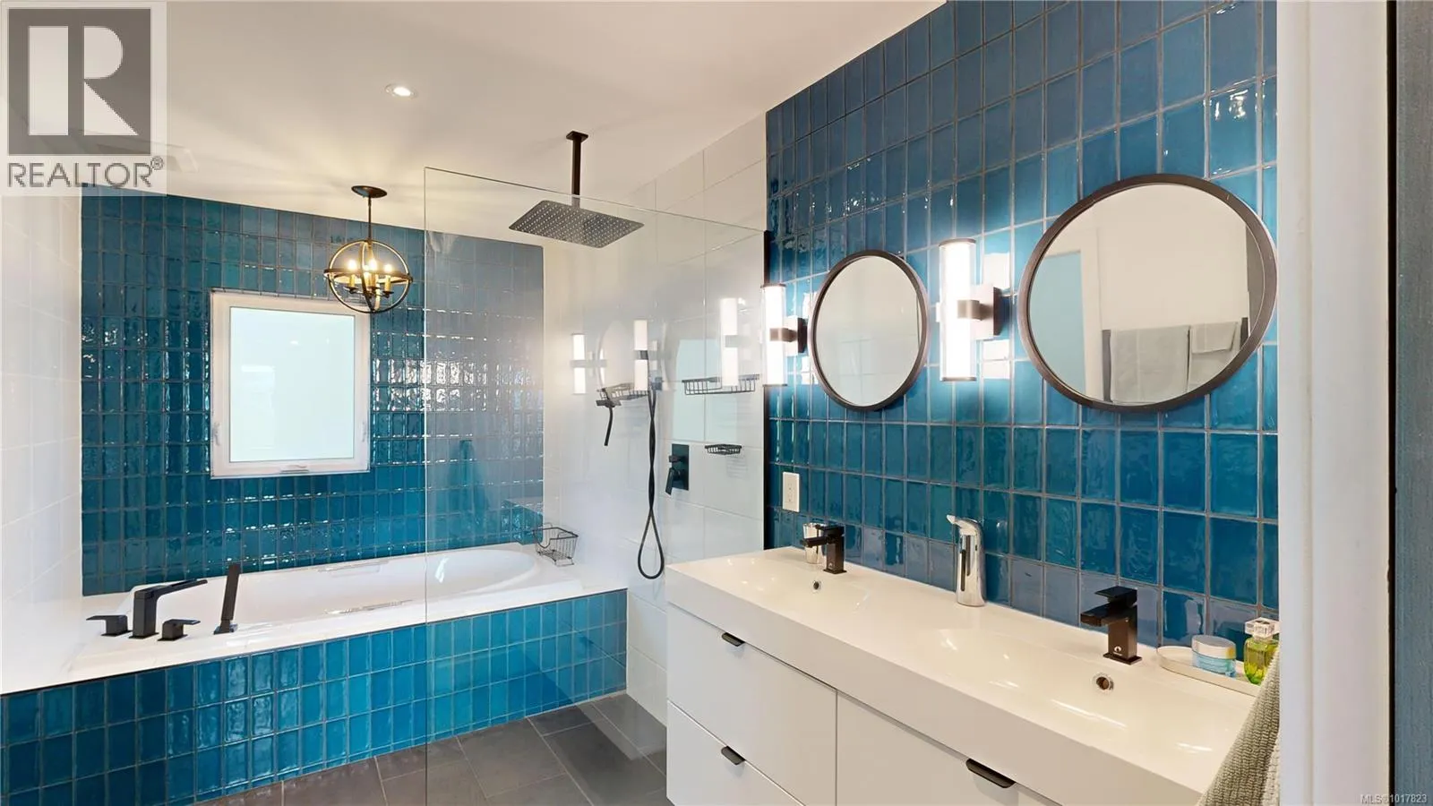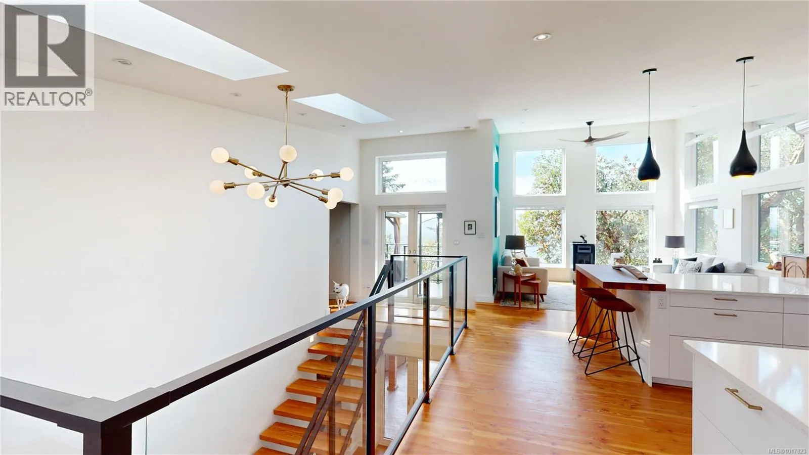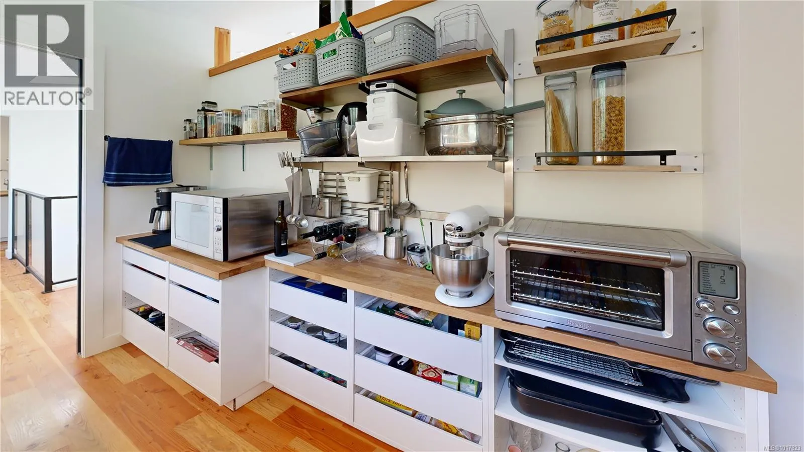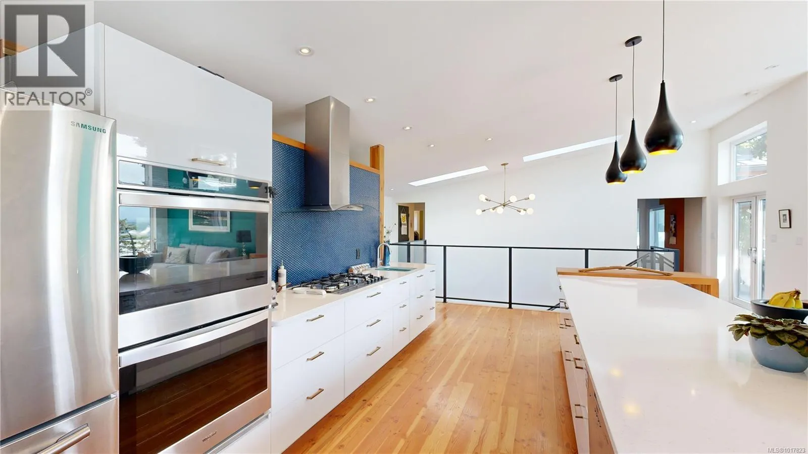 This beautifully crafted custom 2577sq.ft home perfectly combines modern design with natural beauty. Situated on a high-bank waterfront property, it showcases breathtaking ocean and mountain views through expansive windows. The exterior features a mix of metal and wood siding, while inside, you're welcomed by a grand entrance and a striking open staircase. The main living area includes wood floors, vaulted ceilings, two efficient heat pumps, a cozy propane fireplace, and a chefâs kitchen equipped with a propane cookstove, double ovens, pantry, and a wooden eating bar. Also on this floor, you'll find an office area, den, laundry room, and a spacious primary bedroom. The primary ensuite is a luxurious retreat, featuring a double vanity, glass shower, stunning tile work, and a relaxing soaker tub. The lower level is ideal for hosting guests, offering comfort, privacy, and direct access to the outdoors. There, youâll find an outdoor eating bar at the kitchen window, firepits, expansive decks, patios, and a garden area to explore on this 0.61 acre property. The property is mostly fenced and includes a storage shed, a Generac generator, a finished garage, and a dedicated RV site. To top it off, the home is designed for ease of living with an elevator, making this property truly move-in ready. (id:27476)