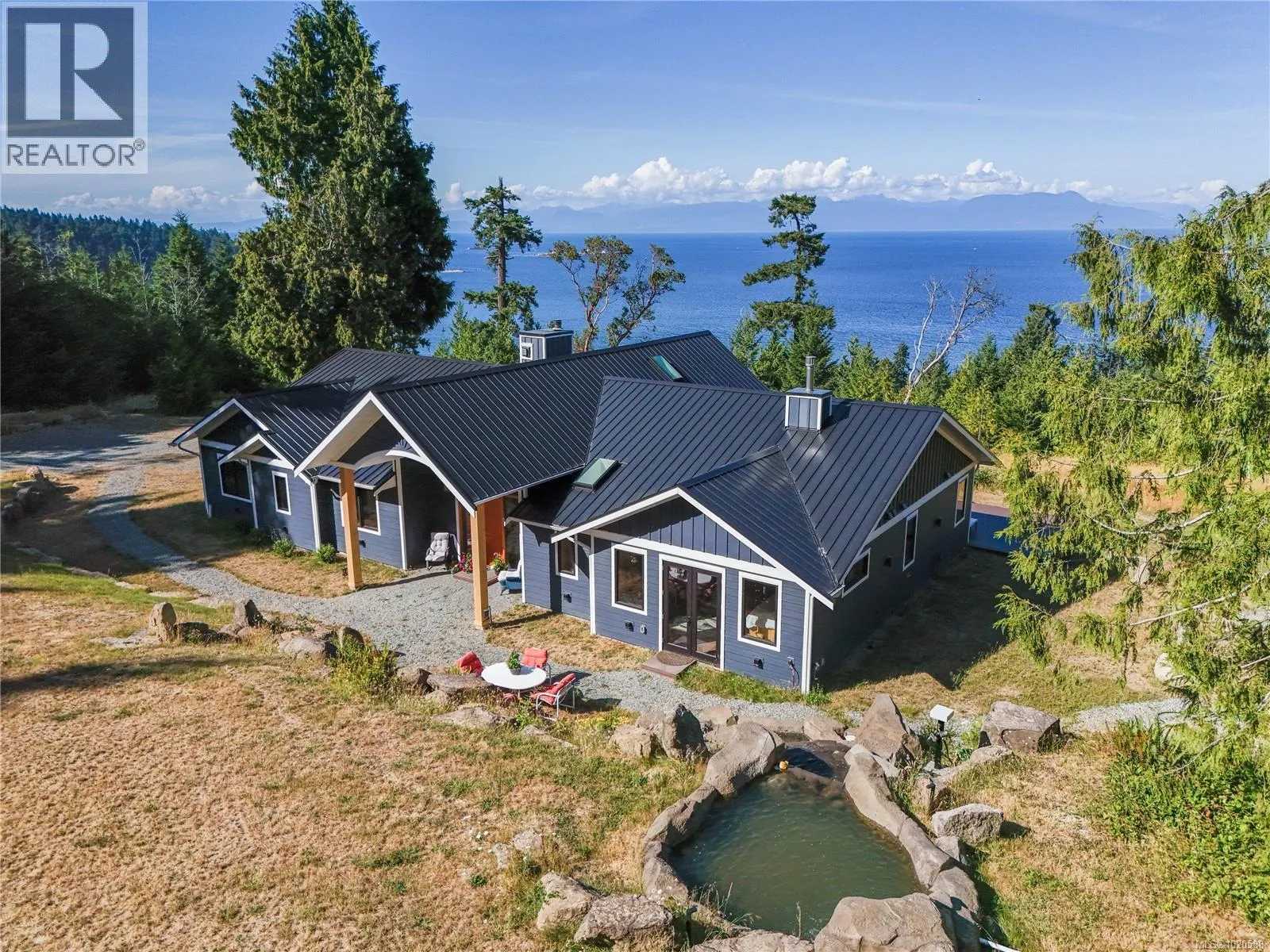 Gabriola Island Ocean Views!! Perched above Sandwell Provincial Park and Lock Bay, this stunning 5-acre ocean view property offers the perfect blend of privacy, beauty, and island living. A picturesque winding driveway welcomes you with custom rock features, a tranquil waterfall and pond leading to a newer 3,100+ sq.ft. single-level home bathed in sunshine. Inside, panoramic ocean views fill most rooms. The chefâs kitchen is a showstopper, featuring custom cabinetry, stainless appliances, a massive island with heated counters, and a seamless connection to the spectacular great room with its arched beams and one of three cozy fireplaces. This thoughtfully designed home includes 3 bedrooms and 3 spa-inspired bathrooms with heated floors, including a gorgeous primary suite. A spacious family/media room with an additional sitting area invites you to relax and take in the abundant wildlife and marine activity right outside your windows. Step outside to expansive decks, perfect for soaking in the sun and catching unforgettable sunrises. The gently sloping acreage is a blank canvas to create your dream oasisâspace for gardens, recreation, or future projects, with plenty of parking. Modern comforts include a back-up generator, well and cistern water systems, a new shed with power and water, and an extra transformer to support your future garage or workshop. Gabriolaâs friendly, artistic community, vibrant outdoor lifestyle, and convenient amenities make island living easy. Youâre just a short commute to Nanaimo via two ferry options, or quick connections to the mainland via Hullo or Helijet. Discover the perfect balance of natural beauty, modern comfort, and endless possibility on this spectacular Gabriola Island property. (id:27476)