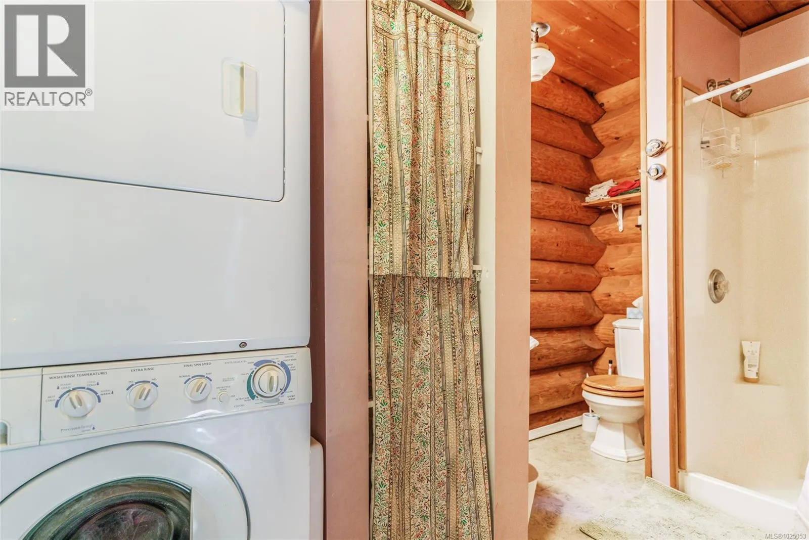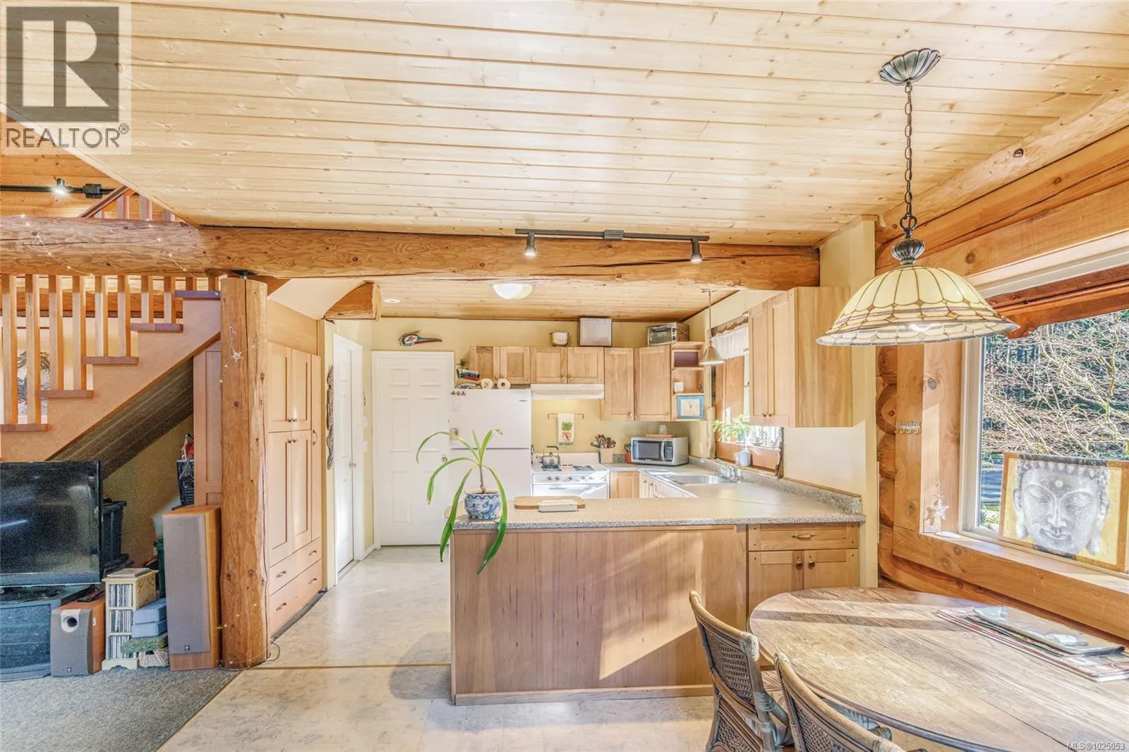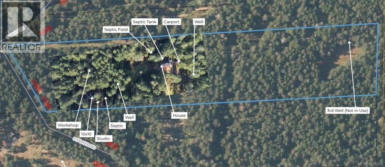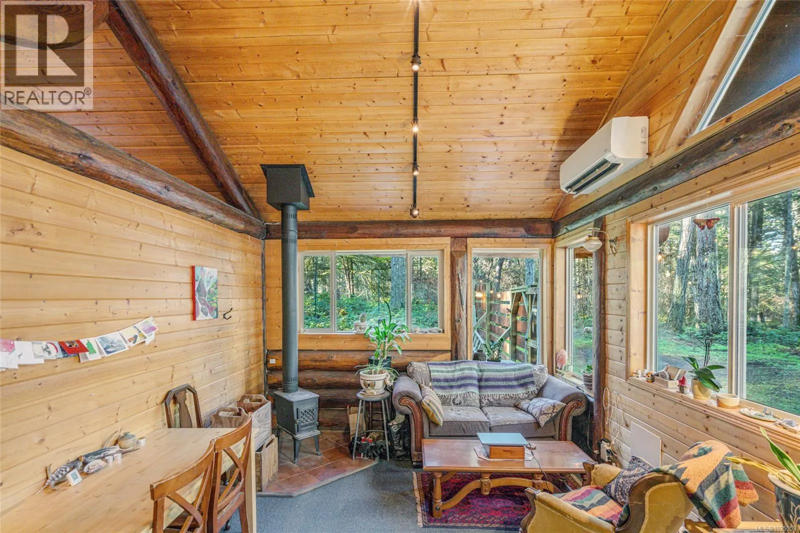 Welcome to 1780 Stalker Road â a rare 16.12-acre treed retreat offering exceptional privacy in a stunning West Coast setting. Ideally located near the breathtaking trails and shoreline of Drumbeg Provincial Park and just minutes from the marinas at Page's Resort, Degnen Bay and Silva Bay Marina, youâll enjoy convenient access for boating, kayaking, or even catching a seaplane to Vancouver. This inviting 2-bedroom log home overlooks a peaceful clearing framed by forest, offering the perfect balance of openness and seclusion. Relax on the covered deck and take in the serene views, or unwind in the hot tub surrounded by nature. Inside, the home radiates warmth and craftsmanship. Beautifully crafted fir kitchen cabinetry and custom stairs highlight the attention to detail, while a heat pump and cozy woodstove provide year-round comfort and ambiance. The main level features a bright kitchen and dining area, living room, bathroom with laundry, and a bedroom. Upstairs, an open loft offers ideal space for an office or studio, along with a second bedroom. Serviced by a well and topped with a durable metal roof, the home is well-equipped for island living. Wander the propertyâs private trails and discover additional bonus structures (not constructed with permits), including a double carport, workshop, and a detached studio currently rented. Please note these unpermitted buildings are not included in the stated square footage. A truly special property combining privacy, natural beauty, and proximity to some of the Gulf Islandsâ most treasured outdoor destinations. Virtual Tour, Floor Plan and information package available. All information to be verified by a buyer if deemed important. (id:27476)
