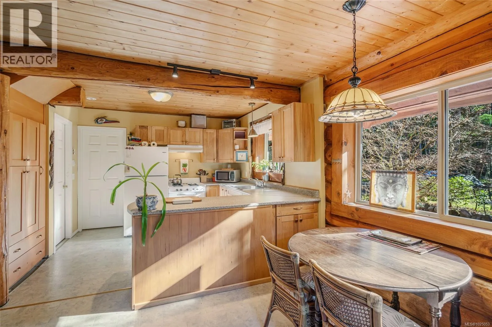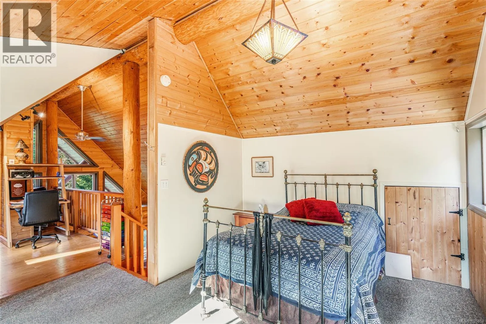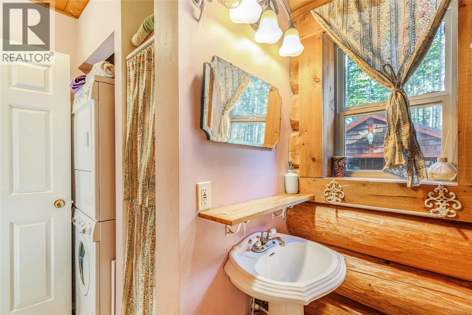 Welcome to 1780 Stalker Road â a rare 16.12-acre treed retreat offering exceptional privacy in a stunning West Coast setting. Ideally located near the breathtaking trails and shoreline of Drumbeg Provincial Park and just minutes from the marinas at Page's Resort, Degnen Bay and Silva Bay Marina, youâll enjoy convenient access for boating, kayaking, or even catching a seaplane to Vancouver. This inviting 2-bedroom log home overlooks a peaceful clearing framed by forest, offering the perfect balance of openness and seclusion. Relax on the covered deck and take in the serene views, or unwind in the hot tub surrounded by nature. Inside, the home radiates warmth and craftsmanship. Beautifully crafted fir kitchen cabinetry and custom stairs highlight the attention to detail, while a heat pump and cozy woodstove provide year-round comfort and ambiance. The main level features a bright kitchen and dining area, living room, bathroom with laundry, and a bedroom. Upstairs, an open loft offers ideal space for an office or studio, along with a second bedroom. Serviced by a well and topped with a durable metal roof, the home is well-equipped for island living. Wander the propertyâs private trails and discover additional bonus structures (not constructed with permits), including a double carport, workshop, and a detached studio currently rented. Please note these unpermitted buildings are not included in the stated square footage. A truly special property combining privacy, natural beauty, and proximity to some of the Gulf Islandsâ most treasured outdoor destinations. Virtual Tour, Floor Plan and information package available. All information to be verified by a buyer if deemed important. (id:27476)