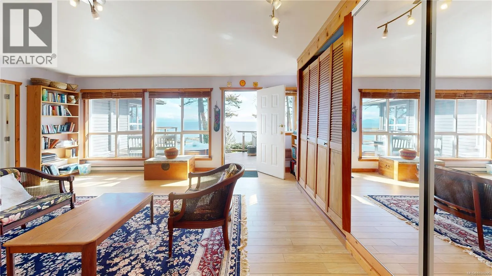 Set on 1.16 acres in a very private waterfront setting, this architect-designed 1,823 sq ft, 3-bedroom, 3-bathroom home takes full advantage of its incredible position, with sweeping views across the Salish Sea to the snow-covered mountains beyond. The open-plan design feels connected, comfortable, and full of light, with large windows framing the views from almost every room. Thereâs an easy flow between the indoor living spaces and the outdoors, and itâs one of those homes where people walk in and immediately pauseâit truly feels like stepping into a picture. The wood-sided exterior blends beautifully into the natural setting, while a heat pump and propane stove provide comfort throughout the seasons. The generous deck and hot tub are perfectly positioned to take in the ever-changing outlookâfrom sunrise over Mount Baker with seals, eagles, and passing marine life part of the daily scene. The setting is quiet and peaceful, with no traffic or noise, yet it doesnât feel isolated. The property is nicely sheltered while still enjoying wide, open ocean views. Outside, the layered gardens feature Japanese-inspired elements and a walking labyrinth, along with a studio, teahouse, and workshop spaces offering flexibility and plenty of options for how to use the space. A full information package is available. All information to be verified by a buyer if deemed important. (id:27476)