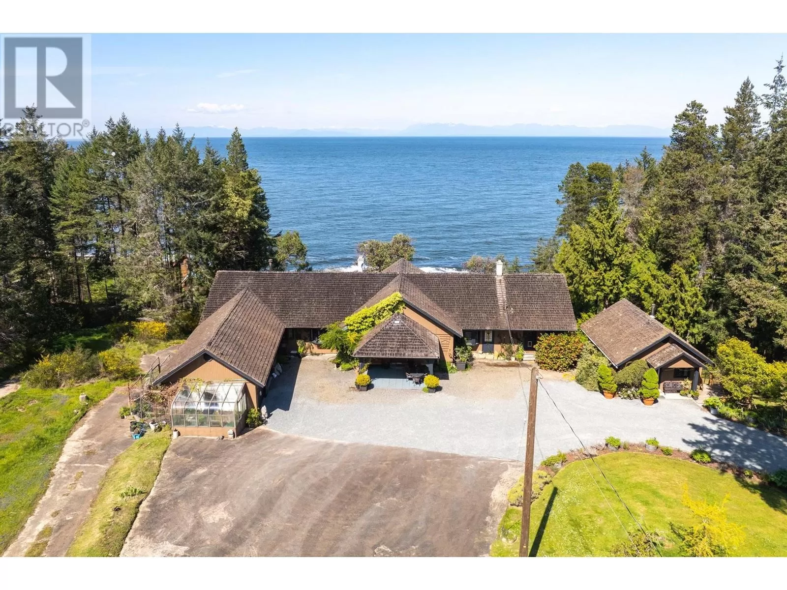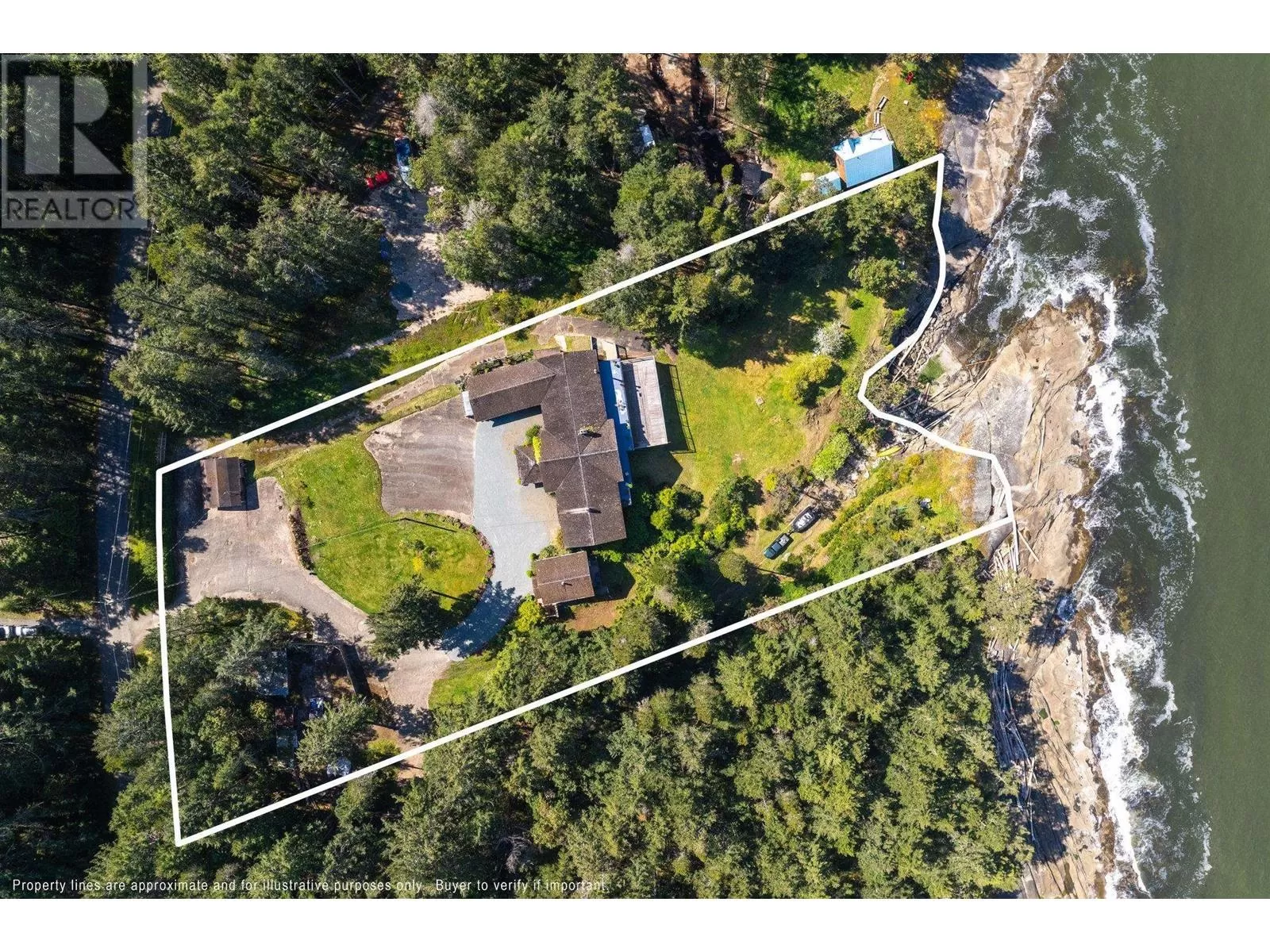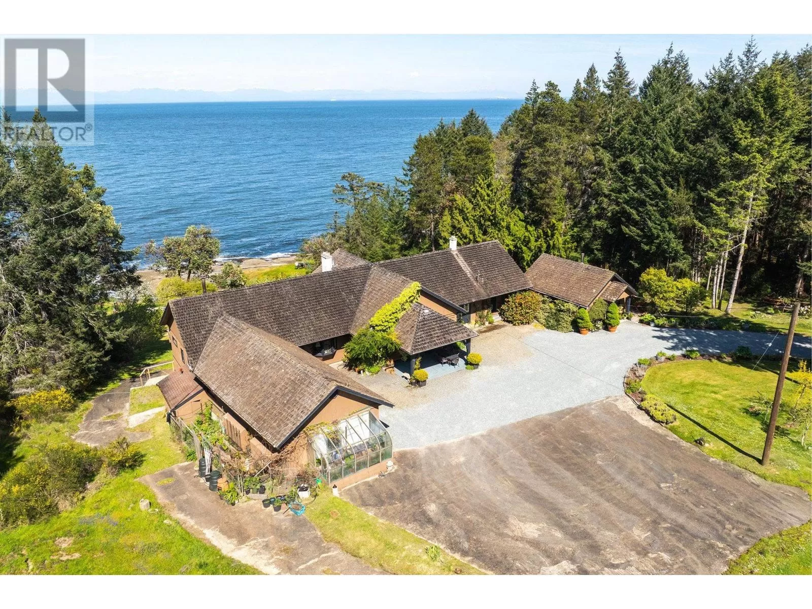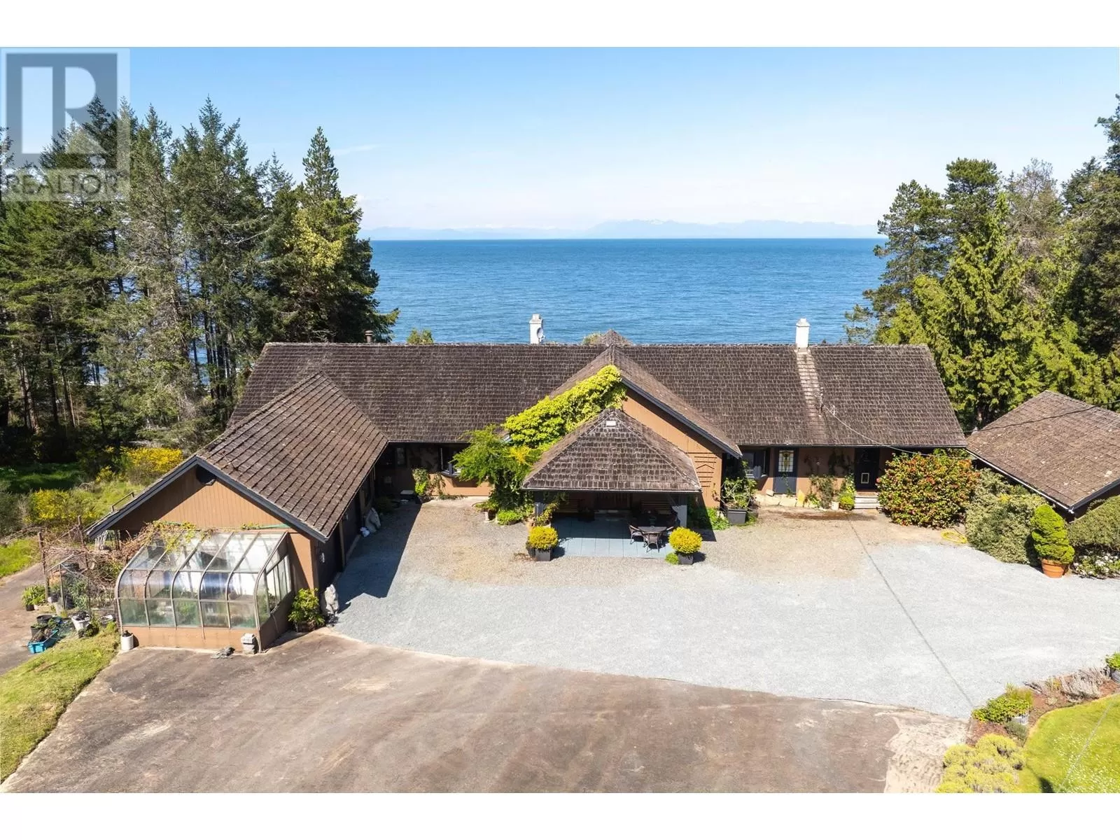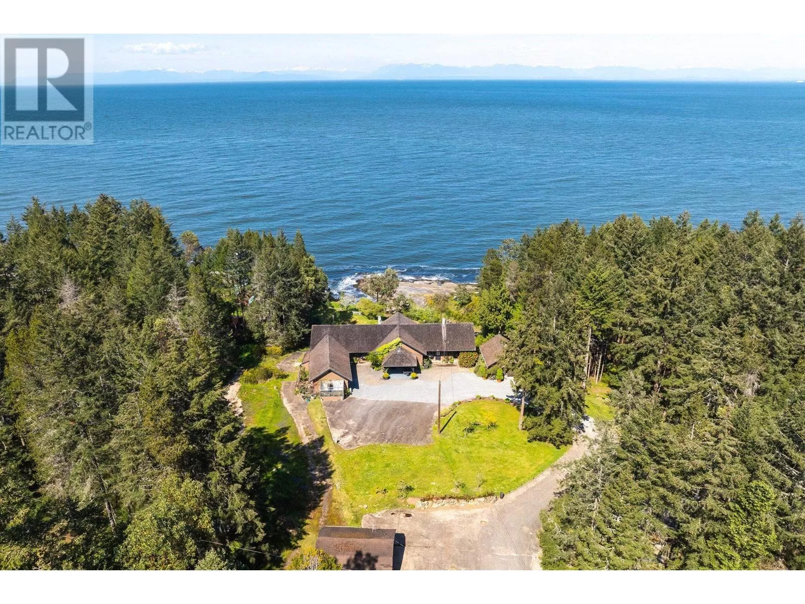 Experience coastal luxury on this stunning 2 acre oceanfront property with breathtaking views stretching across the water to Vancouver. This well built 4839 sqft home blends elegance with comfort, offering expansive views from every principal room toward the ever-changing seascape. The open-concept layout is perfect for both relaxing and entertaining, while the kitchen, spacious living areas, and large bedrooms create an ideal family retreat. Step outside to enjoy landscaped grounds, a private path to the beach, and endless ocean vistas from the almost 1400 sqft of balconies. A convenient boat ramp provides direct access to ocean activities (even at low tide) with warm water swimming in the private bay! Adjacent to greenspace and parkland, so privacy is guaranteed. (id:27476)
