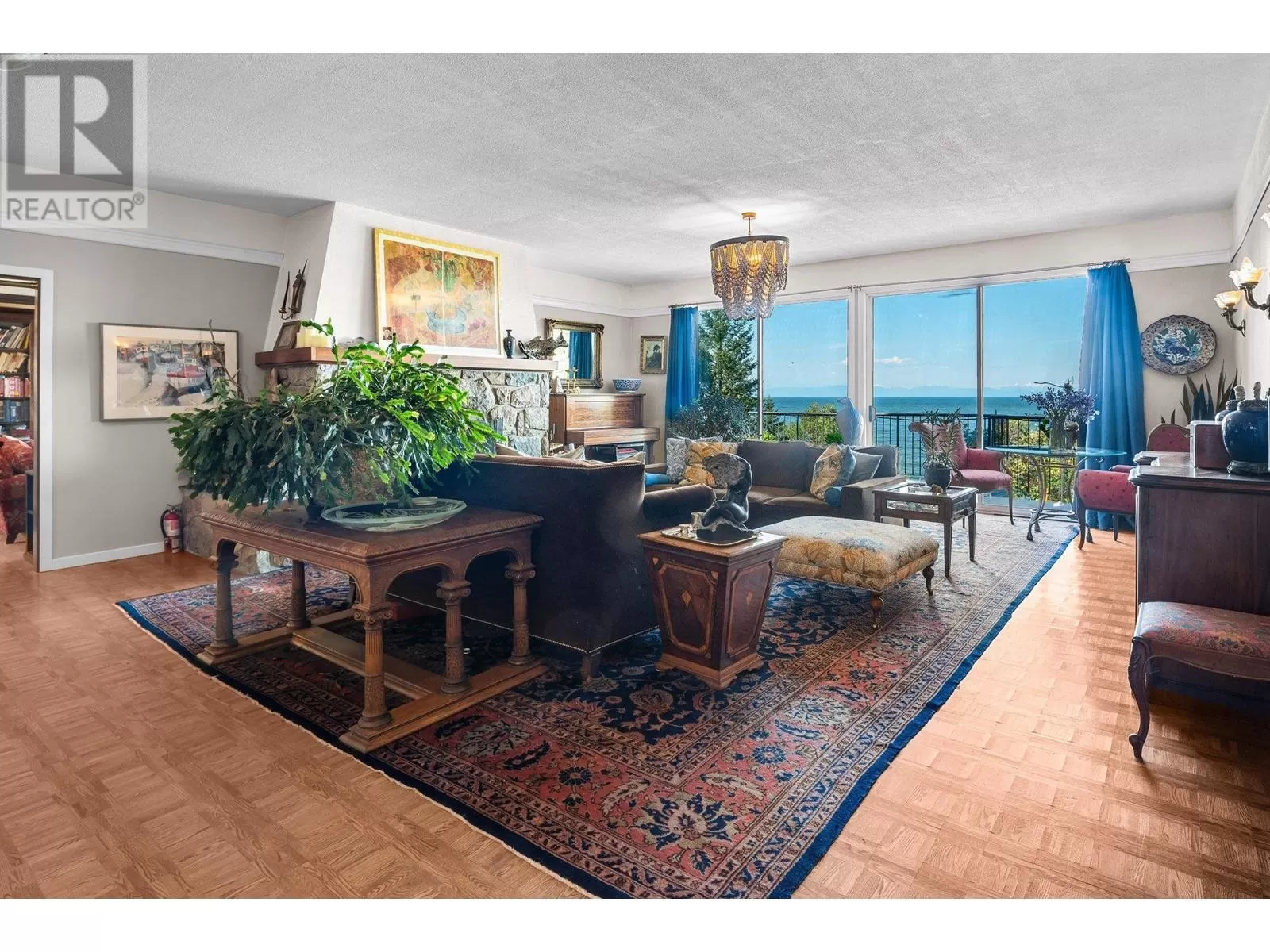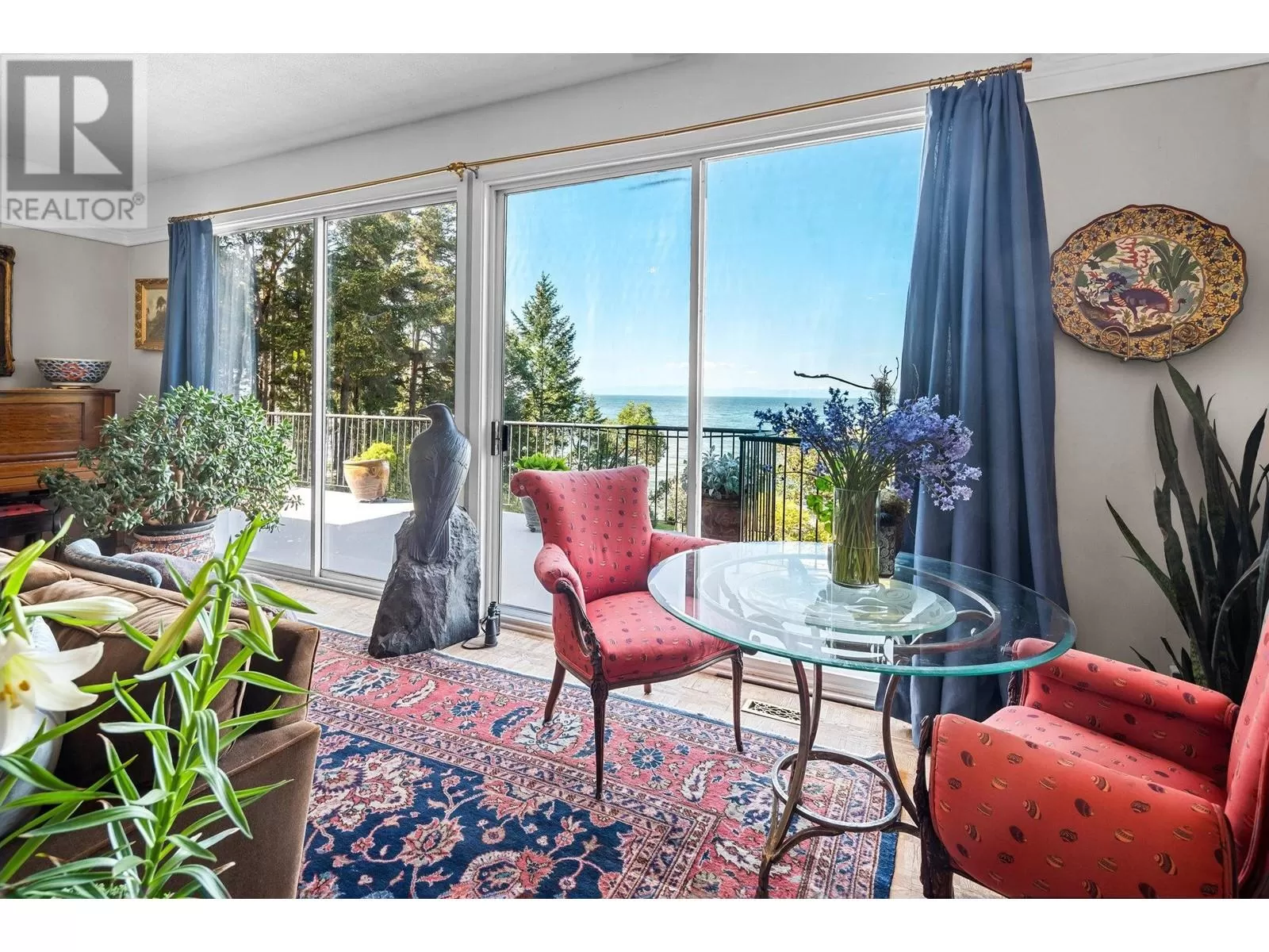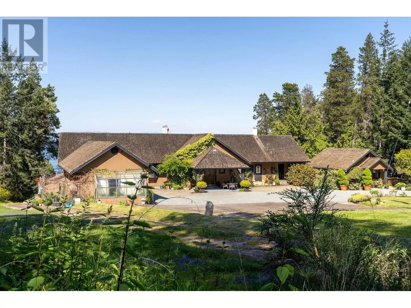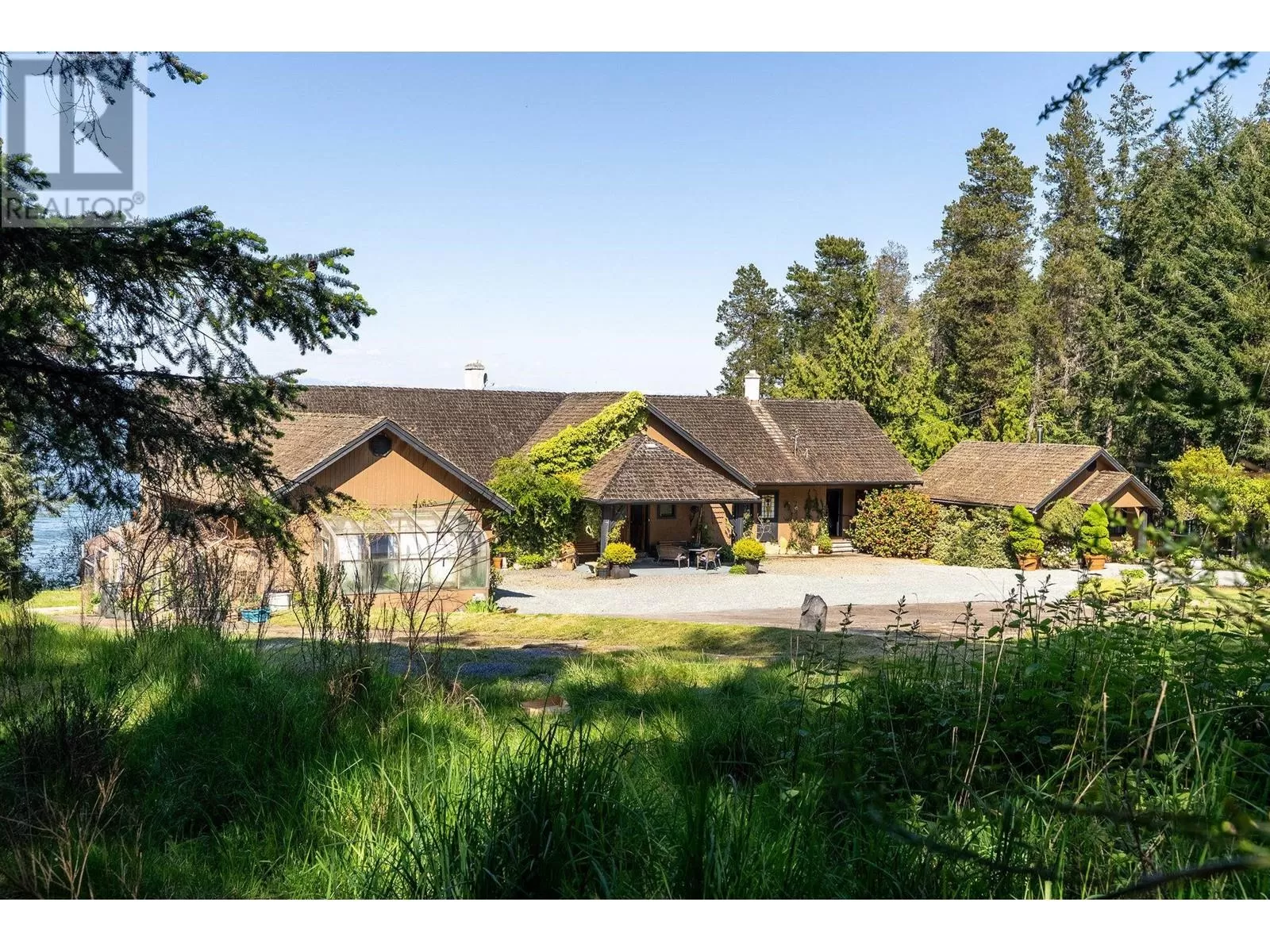 Experience coastal luxury on this stunning 2 acre oceanfront property with breathtaking views stretching across the water to Vancouver. This well built 4839 sqft home blends elegance with comfort, offering expansive views from every principal room toward the ever-changing seascape. The open-concept layout is perfect for both relaxing and entertaining, while the kitchen, spacious living areas, and large bedrooms create an ideal family retreat. Step outside to enjoy landscaped grounds, a private path to the beach, and endless ocean vistas from the almost 1400 sqft of balconies. A convenient boat ramp provides direct access to ocean activities (even at low tide) with warm water swimming in the private bay! Adjacent to greenspace and parkland, so privacy is guaranteed. (id:27476)