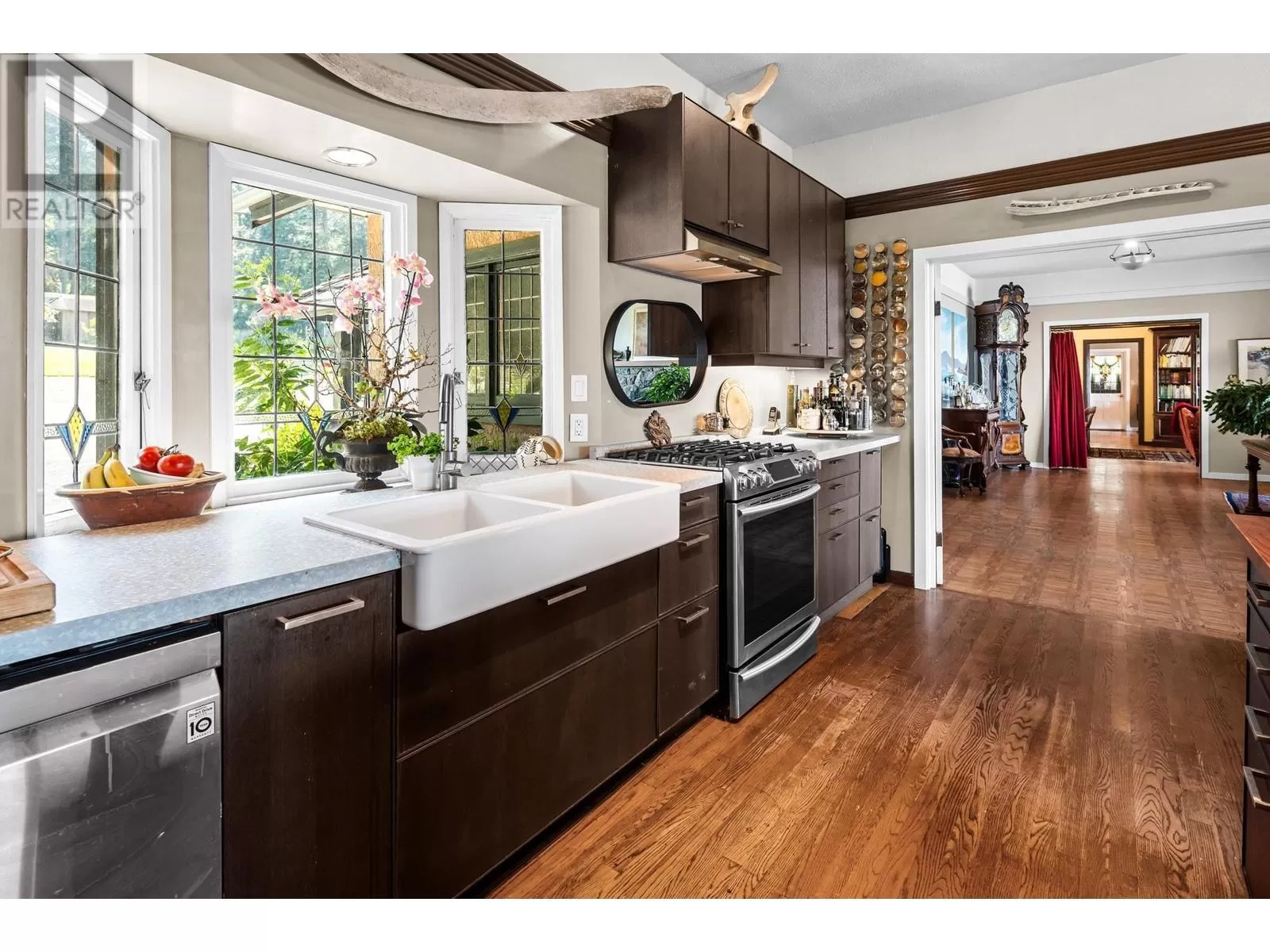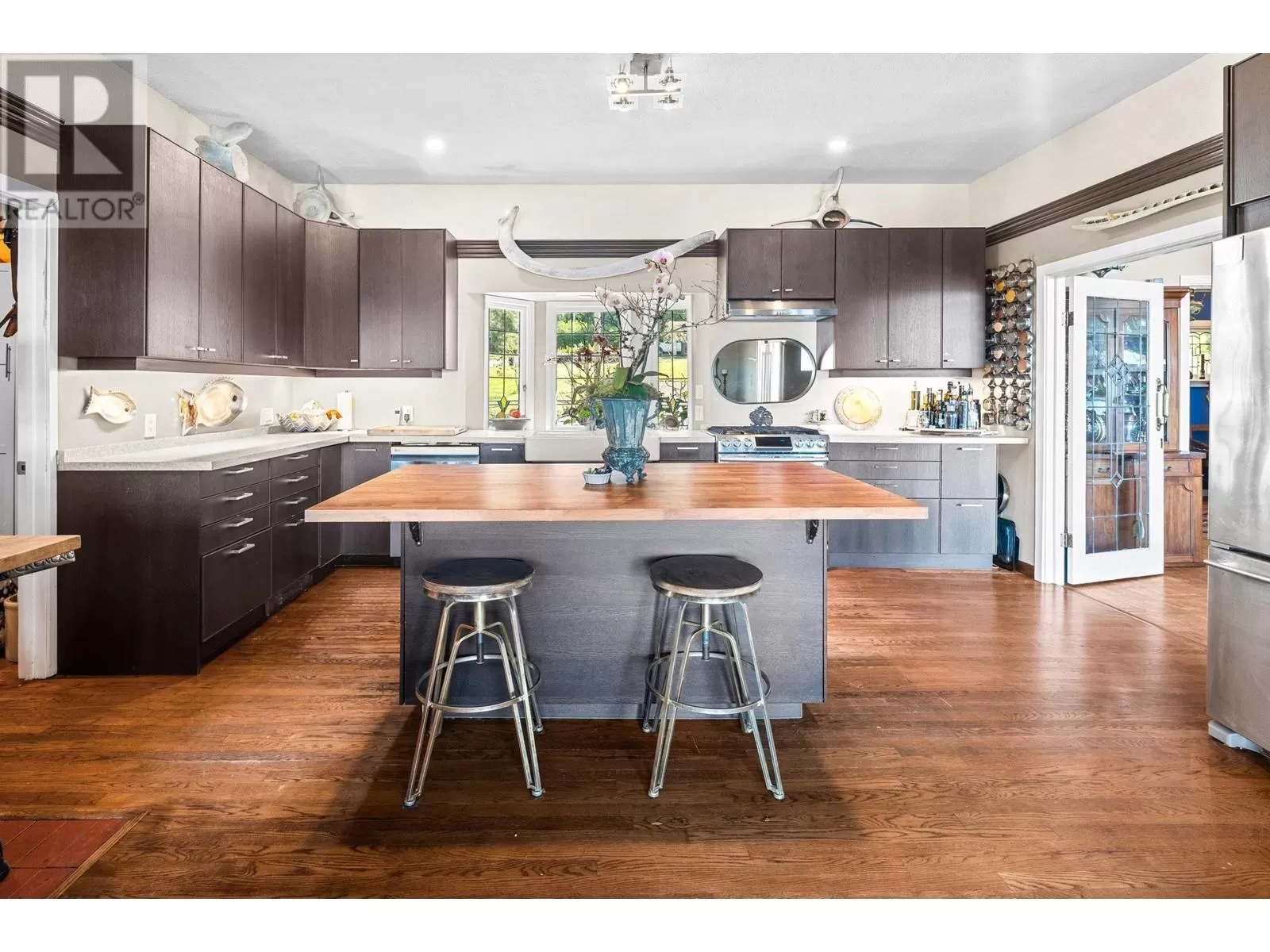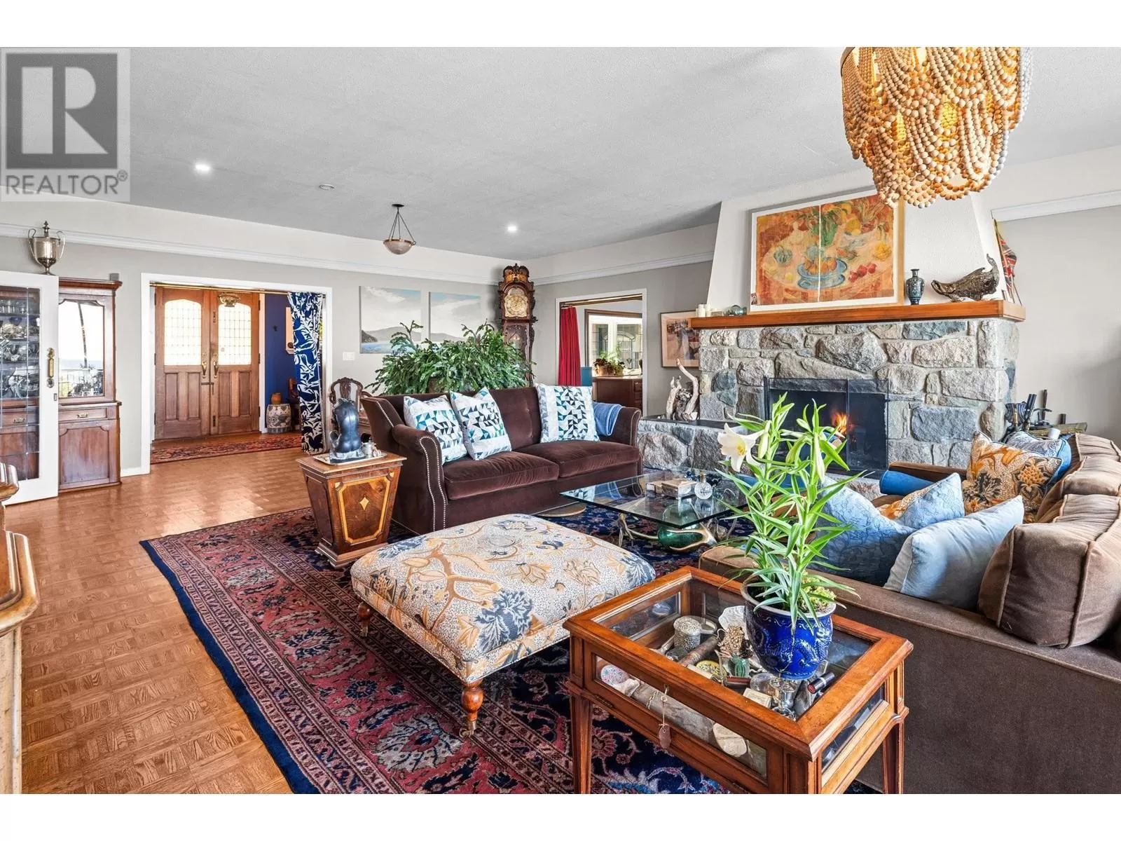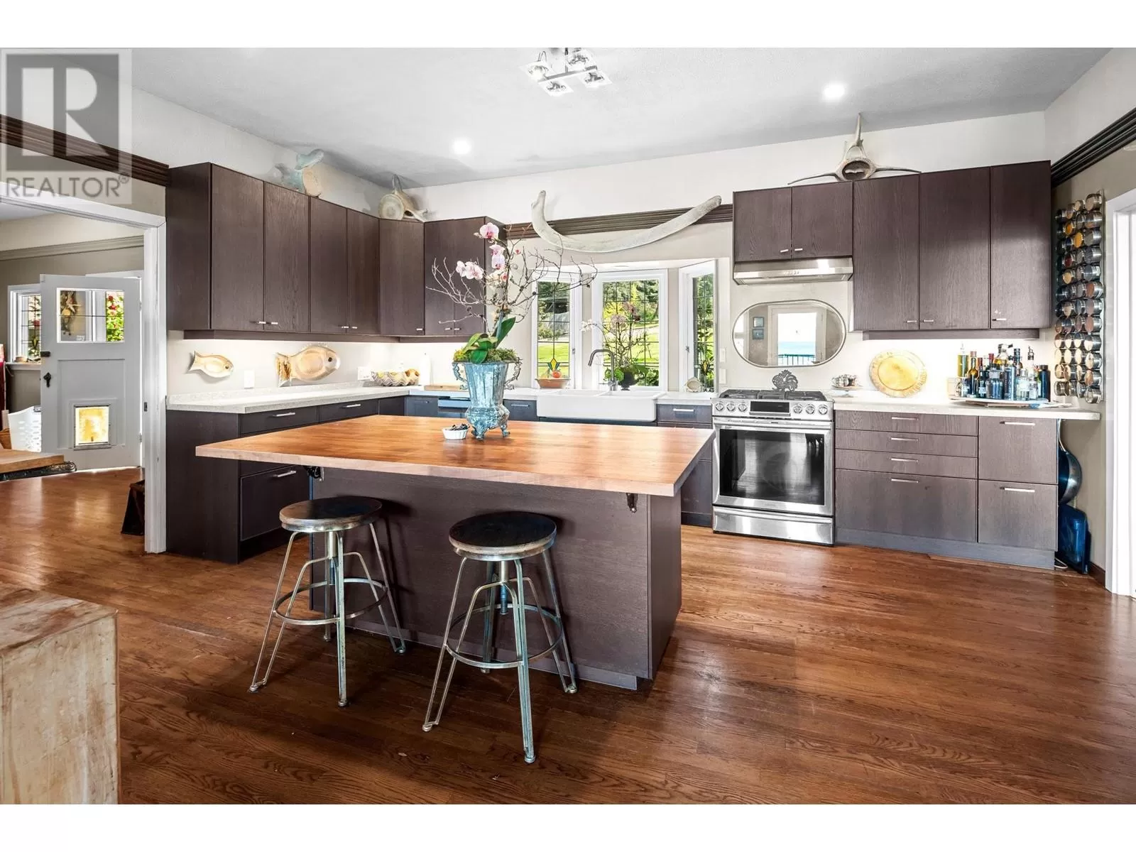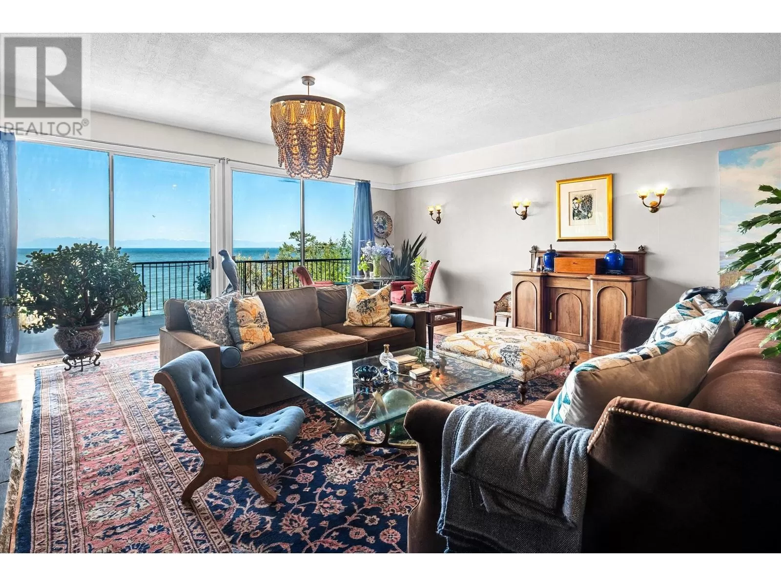 Experience coastal luxury on this stunning 2 acre oceanfront property with breathtaking views stretching across the water to Vancouver. This well built 4839 sqft home blends elegance with comfort, offering expansive views from every principal room toward the ever-changing seascape. The open-concept layout is perfect for both relaxing and entertaining, while the kitchen, spacious living areas, and large bedrooms create an ideal family retreat. Step outside to enjoy landscaped grounds, a private path to the beach, and endless ocean vistas from the almost 1400 sqft of balconies. A convenient boat ramp provides direct access to ocean activities (even at low tide) with warm water swimming in the private bay! Adjacent to greenspace and parkland, so privacy is guaranteed. (id:27476)