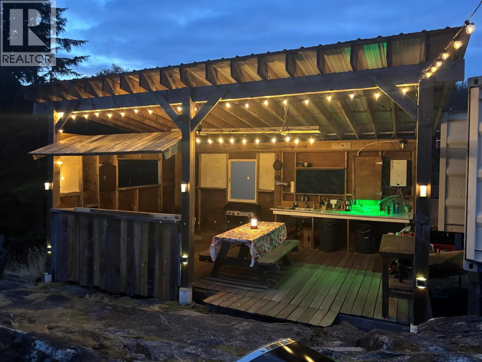 4.97 Acres with a beautiful sun-drenched view of Howe Sound through to Bowen Island and the Mountains. Watch ferries and eagles pass by while you sit and enjoy the quiet life of Fircom Plateau. A quick 20-min water taxi from Horseshoe Bay to the Halkett Bay public dock makes this property easy to access and enjoy year-round. Lot 44 has been set up for a glamping experience, featuring solar panels, a generator, and an outdoor kitchen and shower. A container has been converted into a bedroom with a refrigerator and a heater. There is another container that is being used as a workshop with storage. A drilled well provides an ample supply of water. This offering comes complete and is being sold with everything you need for a fun weekend, including a truck and a mooring buoy for your boat. (id:27476)