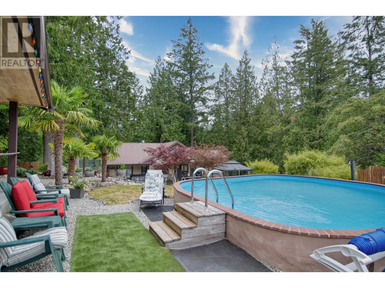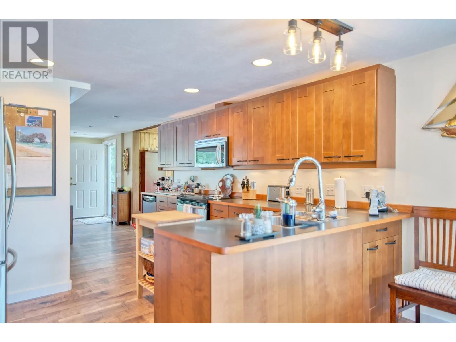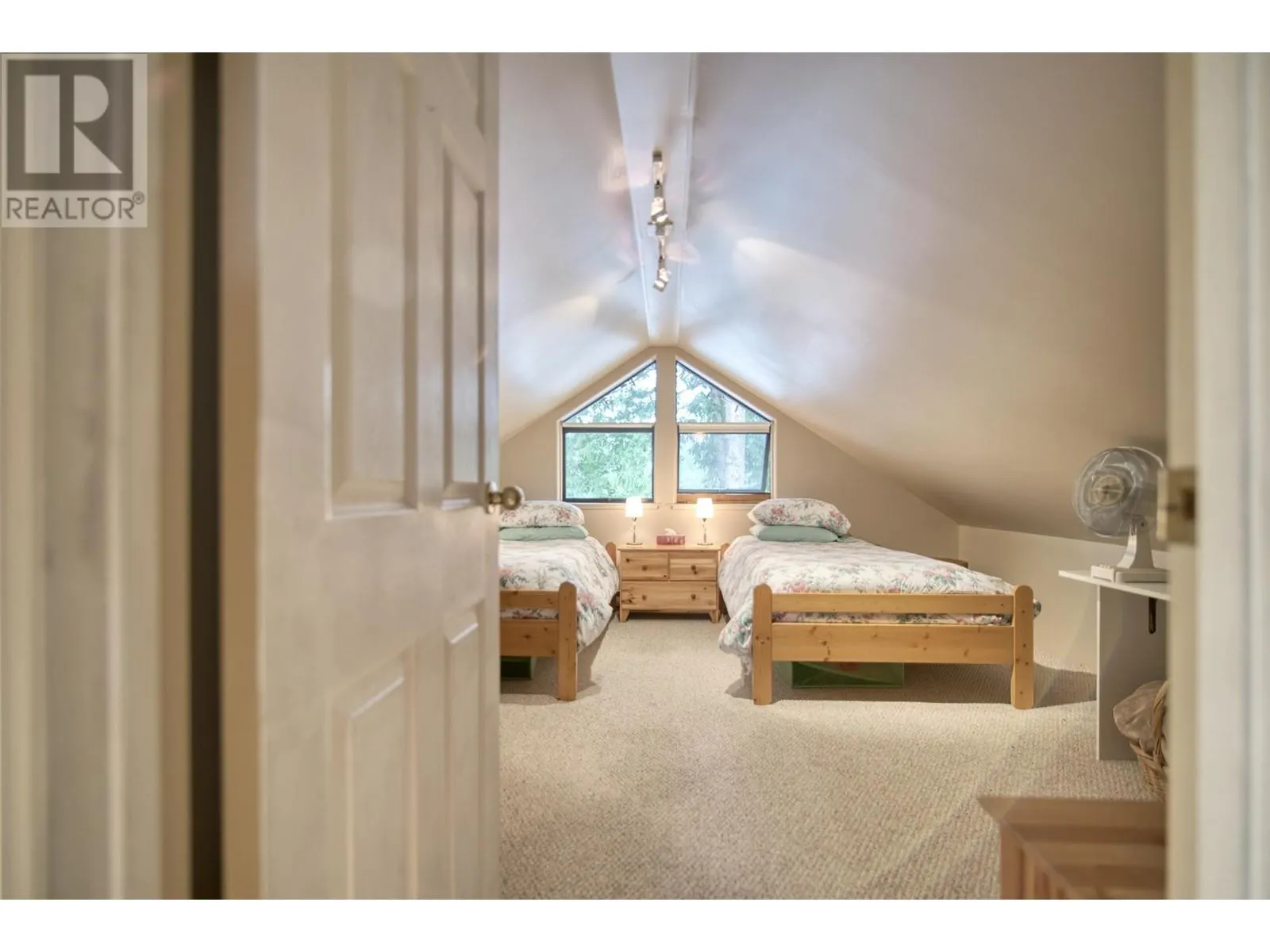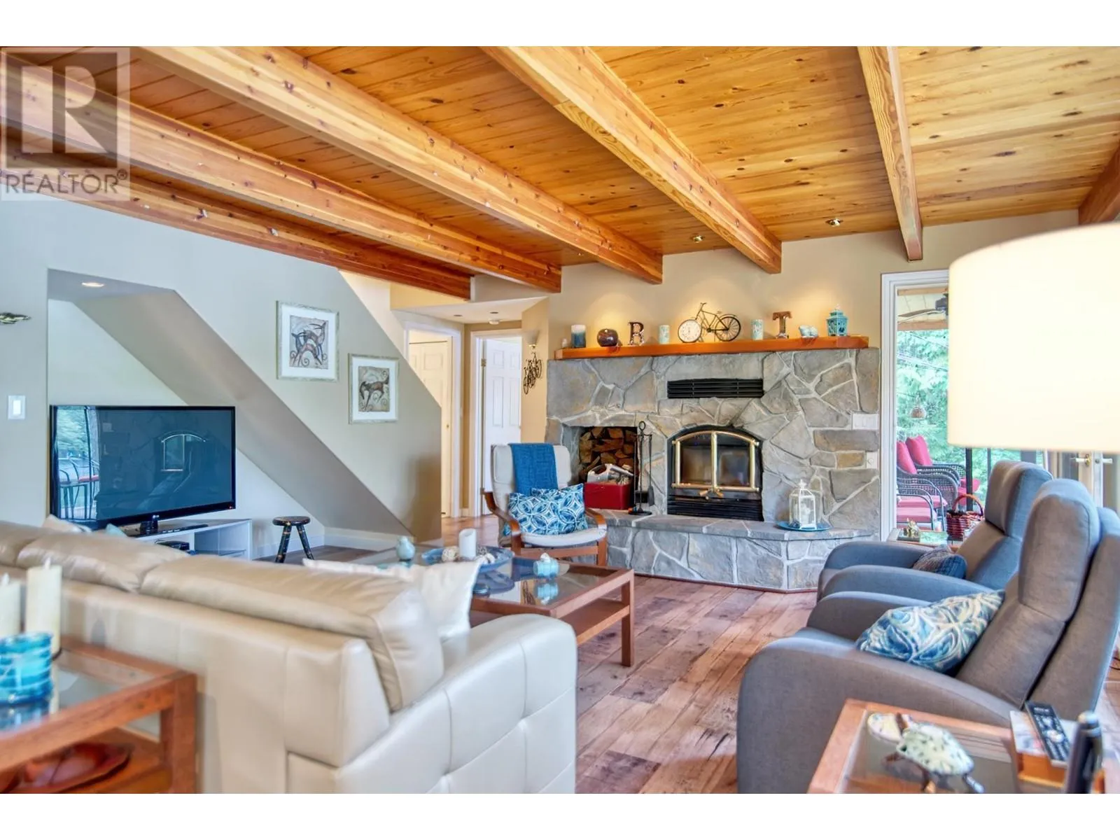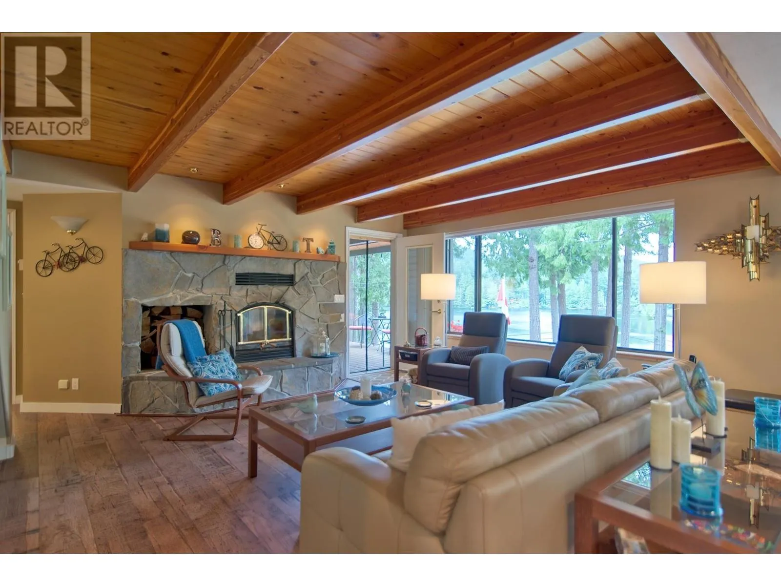 Almost Lakefront! A private oasis on a 0.7-acre corner lot overlooking tranquil Hotel Lake, this custom home exudes rustic charm with natural wood interiors, exposed beams, and a stunning rock fireplace. The primary bedroom features a newly renovated ensuite with heated floors and opens to the backyard hot tub and pool, while the front offers a balcony with glass railings and unobstructed lake views. The property includes a large workshop with upper-level bonus space, a natural granite water feature, and two driveways-one to the shop and one to the home´s carport. Additional highlights: generator & panel, 40-amp EV charging outlet, and extra materials and fixtures for future renovations. A fantastic package! (id:27476)