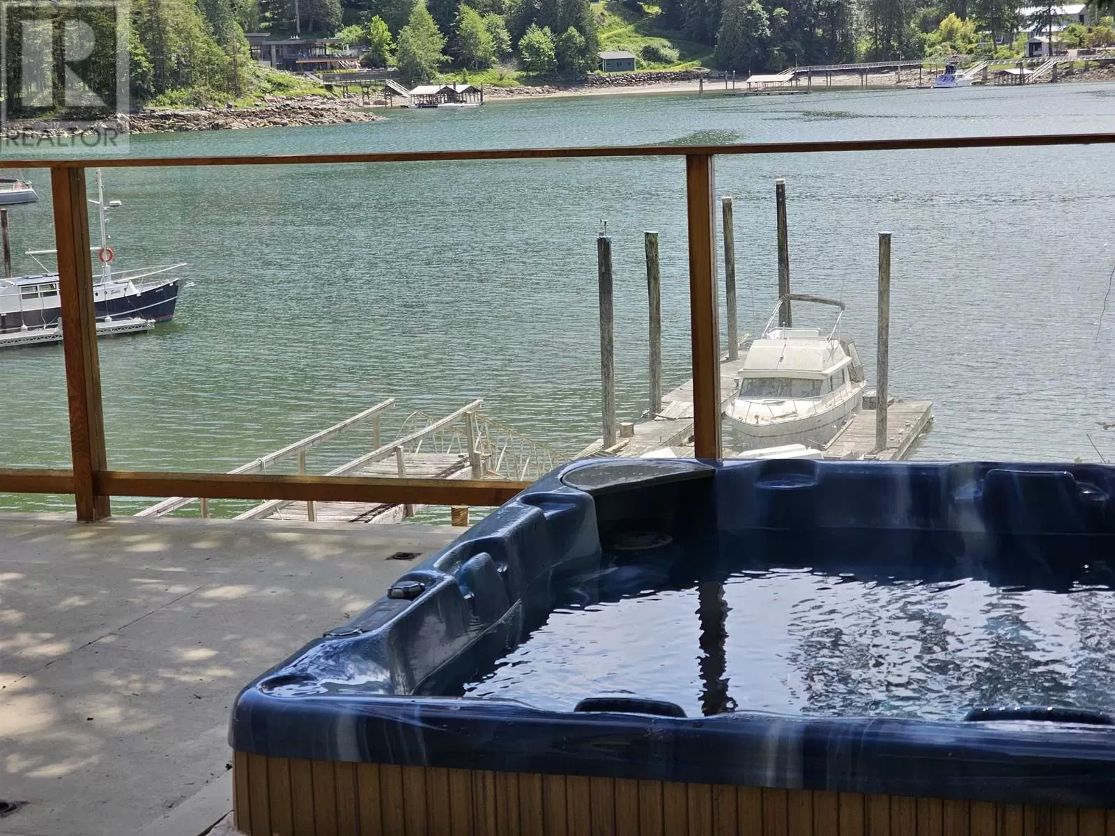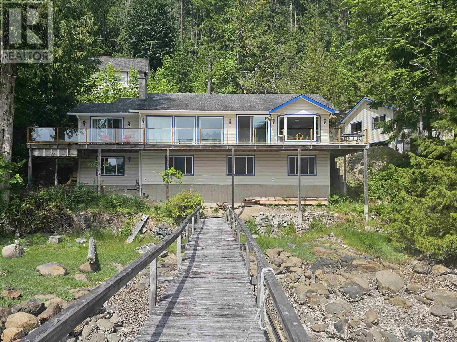Experience tranquil waterfront living on the Sunshine Coast! This charming 3-bdrm home is situated on a private 1.58-acre lot on a quiet no-thru road, offering southern exposure and breathtaking views of the bay from nearly every room. Enjoy stunning sunsets from the wrap-around deck or the built-in hot tub. Features include mobility-friendly, one-level living with a spacious kitchen, open floor plan, & large living rm complete with wood fireplace. The generous primary suite boasts a 5-pc ensuite & a walk-in closet. Lower level offers 2 bdrms, 4pc bath, wine/storage rm & the potential for a suite or rec room. There´s a 3,164 square ft workshop close to sewer line and city water. The 2-car garage has city water, and upper floor. Property includes a licensed dock. (id:27476)