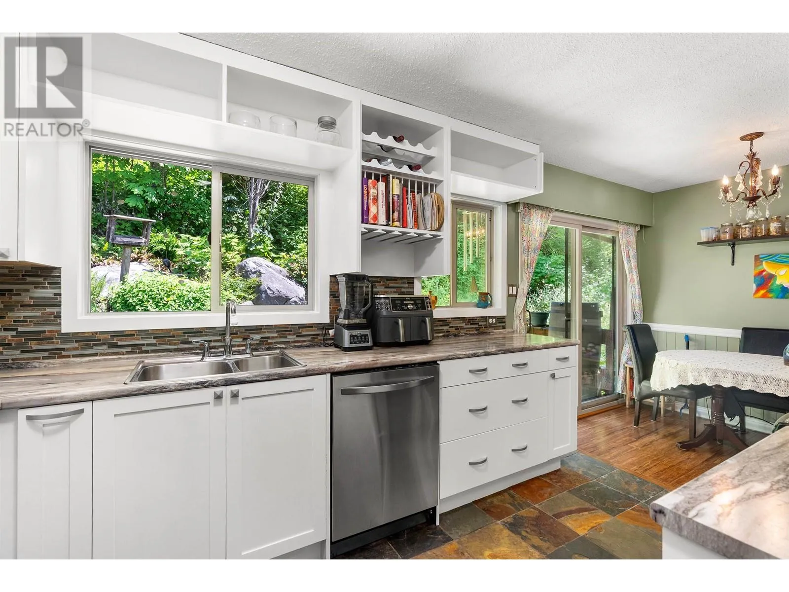Located in beautiful Garden Bay, this 3 bed 2 bath house is just a stroll away from Lee Bay beach, historic Irvine's Landing, and Hotel Lake. Spend your days soaking in the westerly sun on the deck or puttering around in your greenhouse and bountiful fully fenced yard full of raspberries, various veggies, sunflowers, and even artichokes. The colorful cherry blossoms and dogwood trees highlight the entrance to the driveway. There is space on the side to park your boat which will be handy since there are marinas close by. The home is bright and sunny and downstairs would make a great place for family visits, having their own living room, bedroom and bathroom. Come and enjoy the peace and quiet of rural living today. (id:27476)