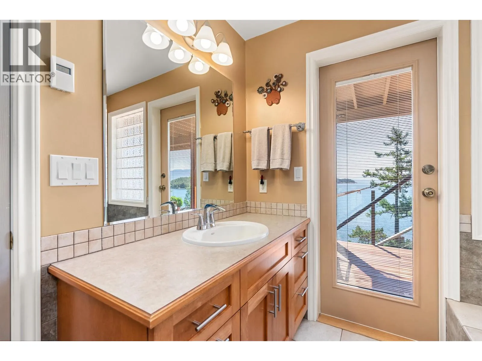 Architecturally designed waterfront home in prestigious Daniel Point. This elegant 3-bed + office coastal retreat offers sweeping south-facing ocean views, vaulted ceilings, and rich wood interiors that elevate the main living space. The primary suite features a spa-style ensuite with soaker tub, walk-in shower, and private balcony with hot tub. A garden-view office provides a serene workspace or optional 4th bedroom. The lower level includes a versatile flex room (gym/guest area) and a dedicated studio space ideal for creative pursuits. Set on a beautifully landscaped 0.519-acre lot with level lawns, fenced gardens, and a workshop below the garage. Private stairs lead to the shoreline-perfect for kayaking, swimming, and quiet moments by the sea. (id:27476)