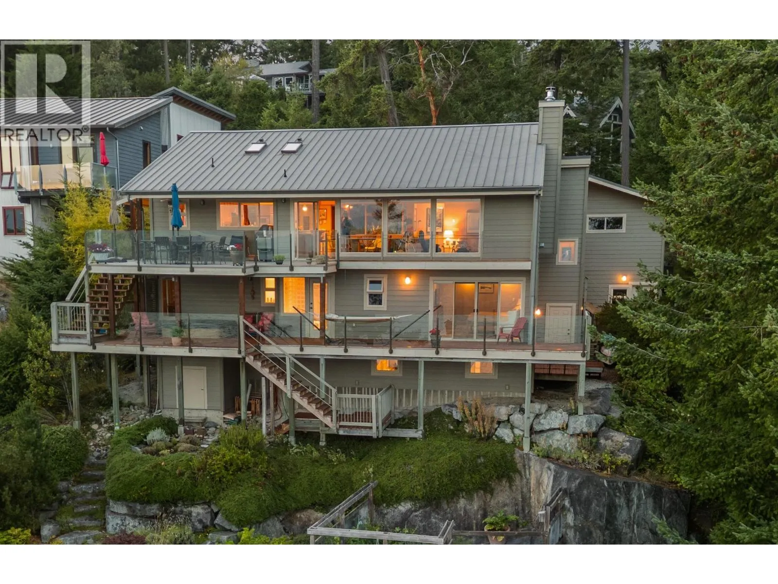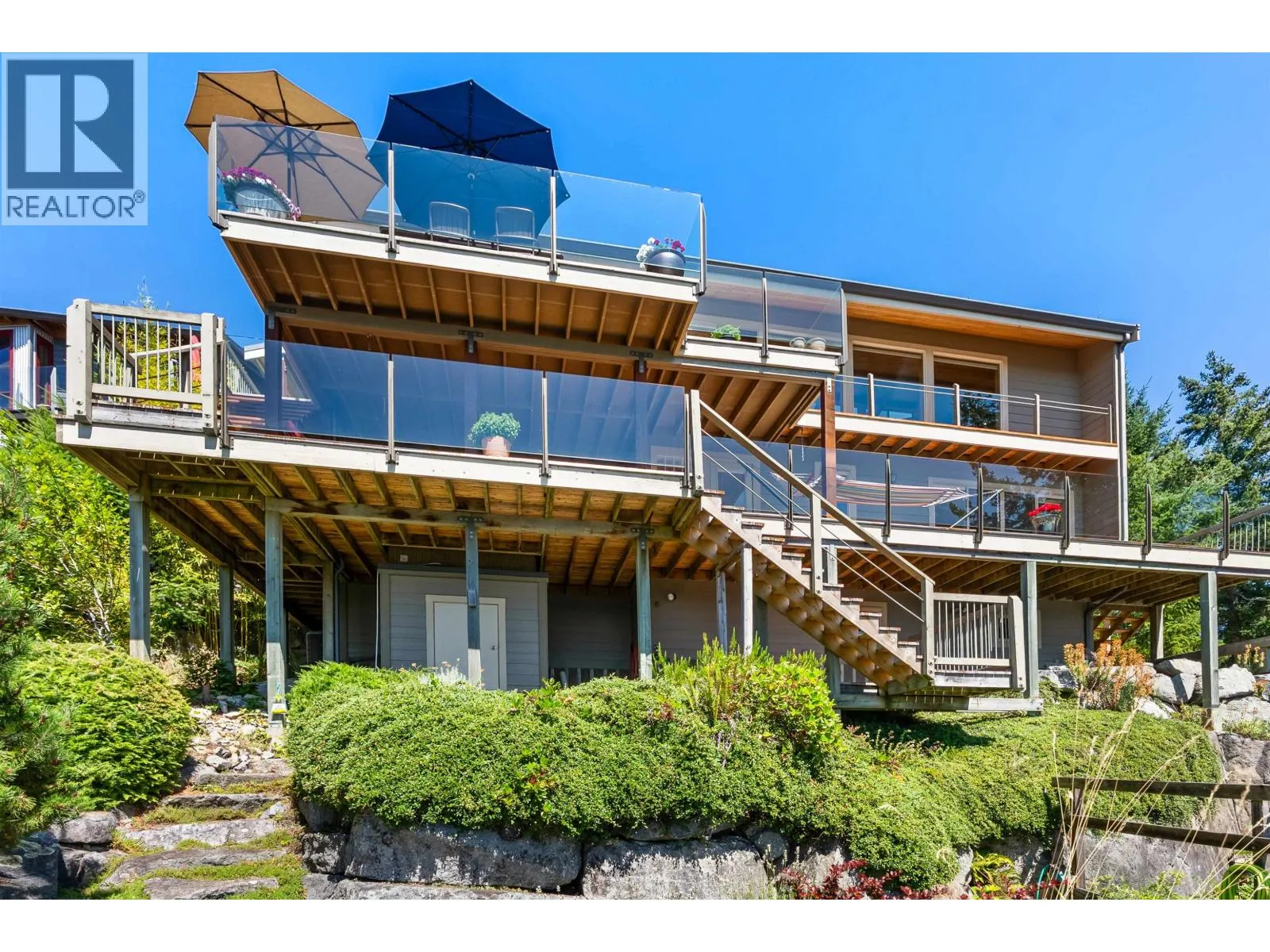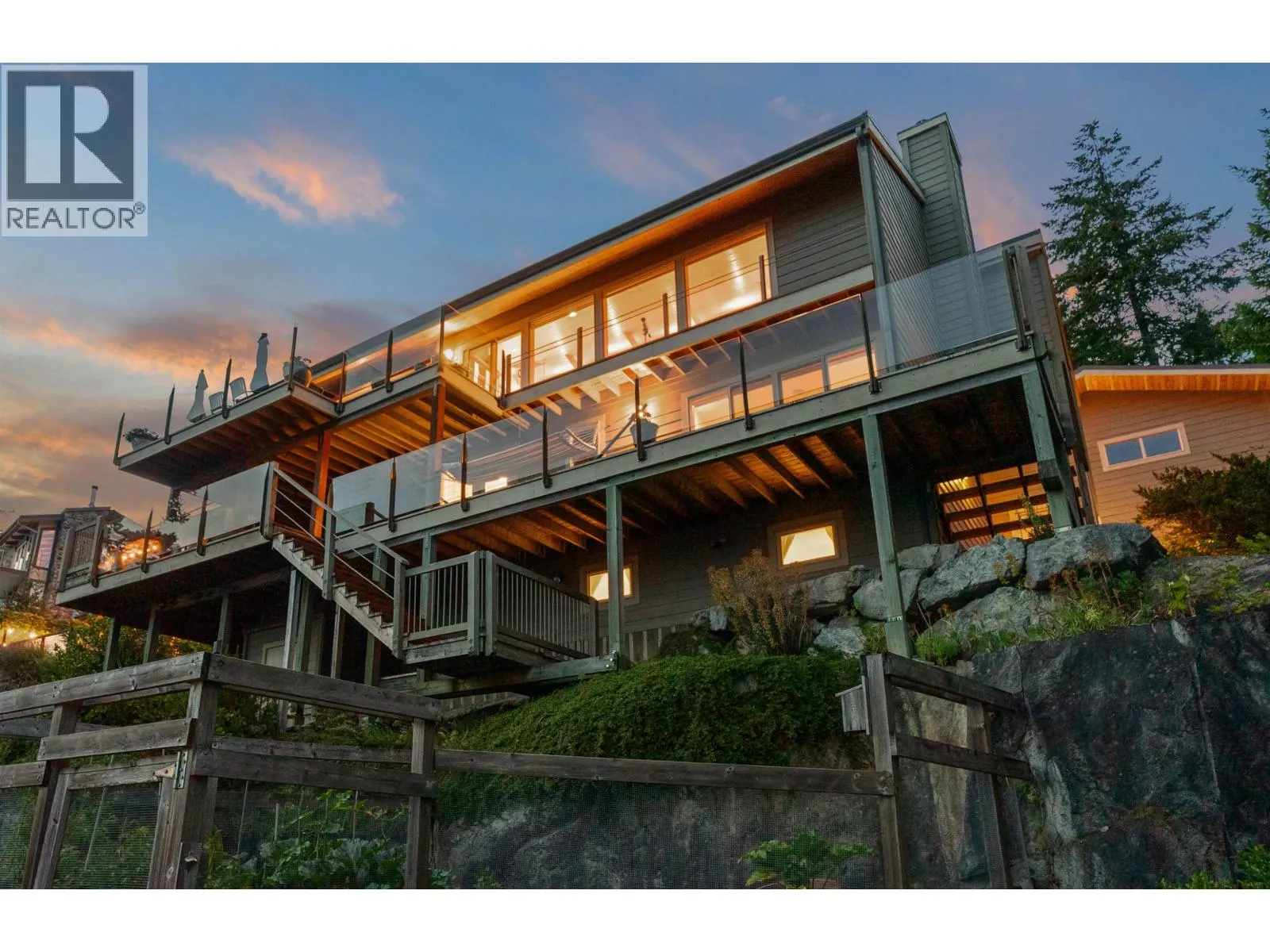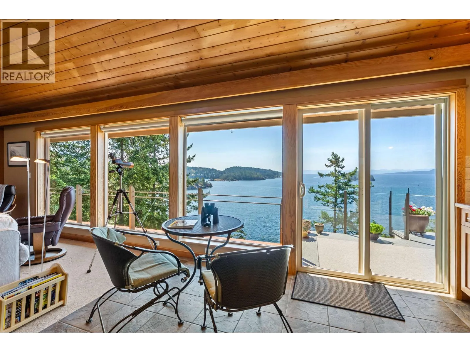 Architecturally designed waterfront residence in prestigious Daniel Point, offering elevated coastal living with sweeping south-facing ocean views. Vaulted ceilings and rich wood interiors frame a light-filled main living space designed for refined comfort. The primary suite is a private sanctuary with spa-inspired ensuite and ocean view balcony hot tub. Flexible spaces-including an office or fourth bedroom, guest/flex retreat, and dedicated studio-create room for visiting family or creative pursuits. Set on a beautifully landscaped, low-maintenance 0.52-acre property with a fenced garden and a large room below the garage used as a workshop. Private shoreline access invites kayaking and quiet seaside moments. An exclusive, secure enclave ideal for lock-and-leave luxury living. (id:27476)