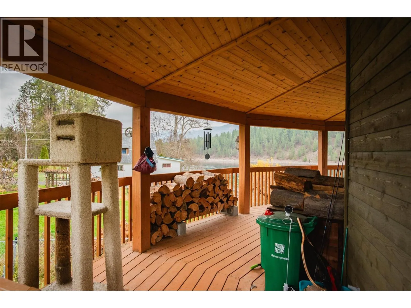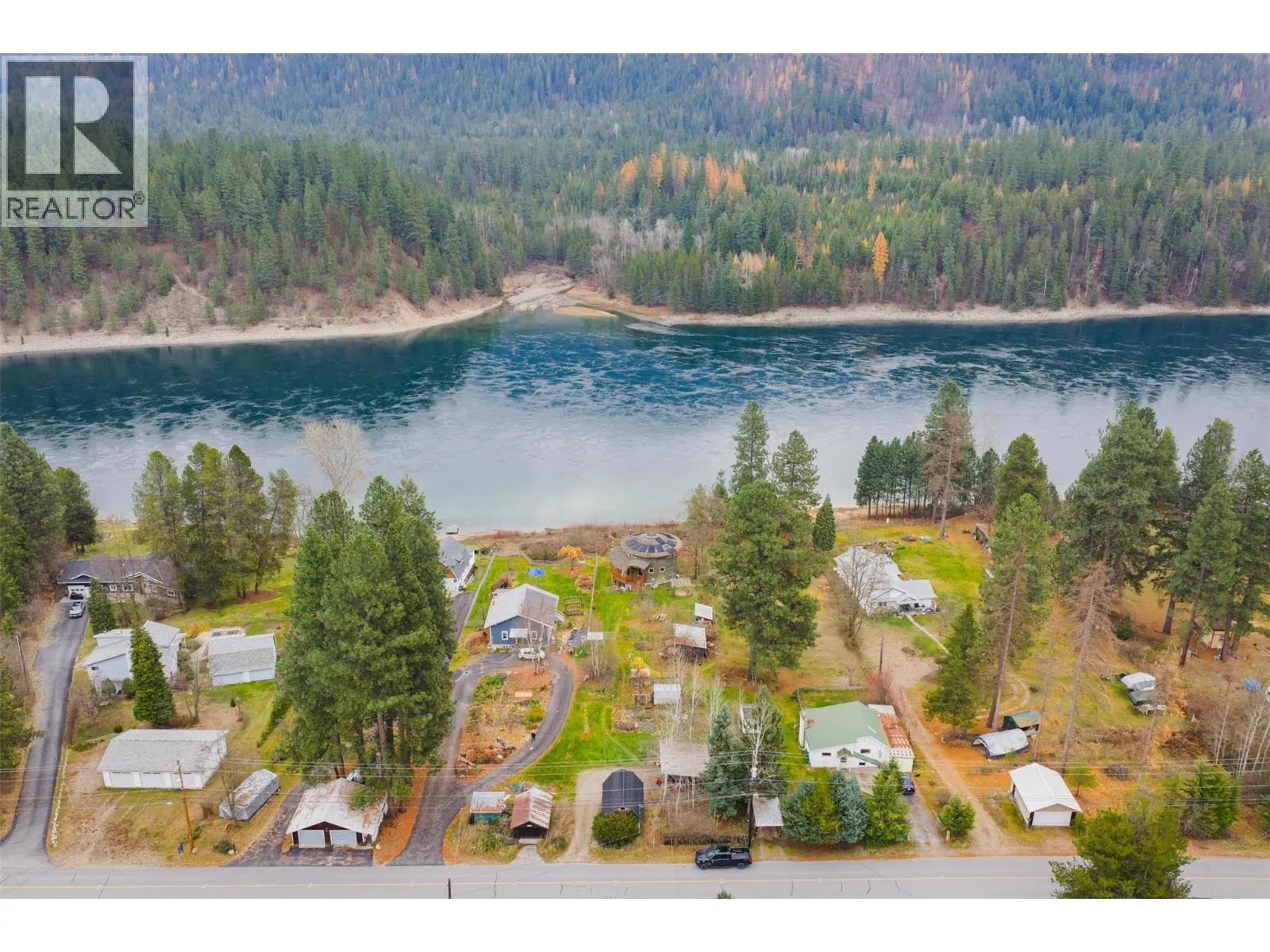Nestled in Genelle, BC, midway between Trail and Castlegar, this custom, unique Mandela-constructed waterfront home offers a distinctive living experience. Boasting 2 bedrooms and 3 baths, it features an abundance of windows that frame sweeping views of the spectacular Columbia River and provide ample opportunity to watch the fish awaken the senses. Modern comforts abound, including heated floors for year-round warmth, a cozy wood stove for additional ambiance, and sustainable elements like solar power and a heat pump with air conditioning. Outdoor living is enhanced by a inviting deck and multiple outbuildings, all set against a serene waterfront backdrop. (id:27476)