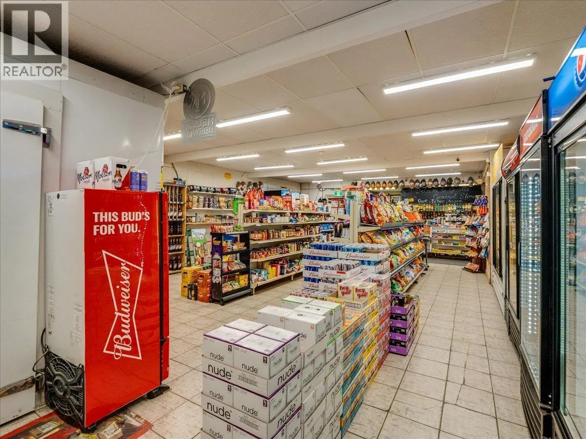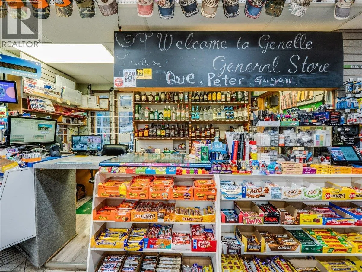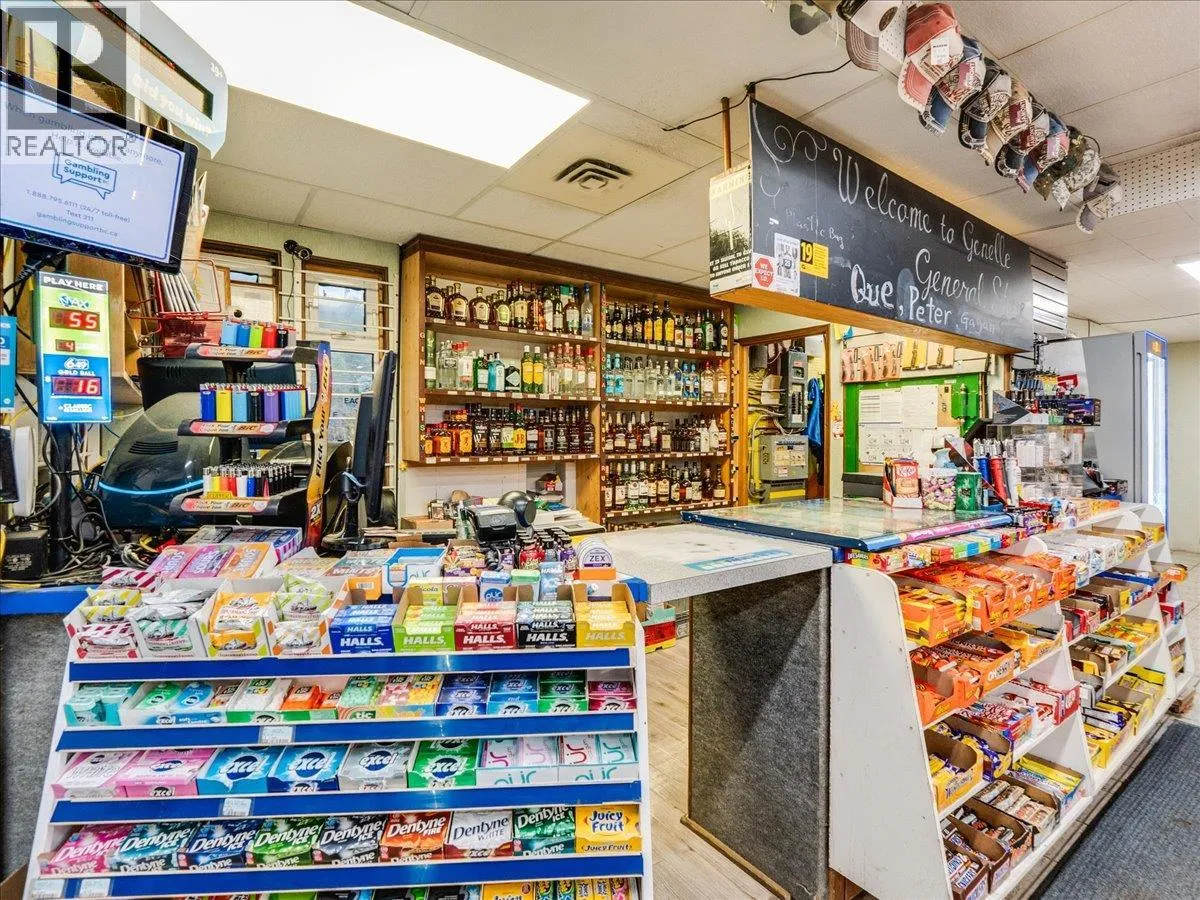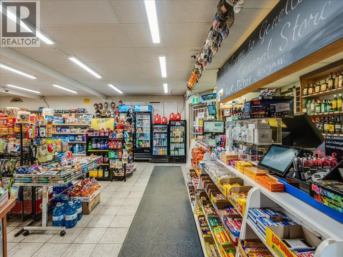 Turnkey business opportunity in the heart of Genelle. The Genelle General Store is an established community store serving a population of approximately 750, with consistent daily traffic driven by its in-store Canada Post PO boxes. Located less than a minute off the very high traffic Highway 22 connecting Castlegar and Trail, the store benefits from strong exposure to both local residents and passing traffic. The property features 4 fuel pumps connected to underground fiberglass tanks, offering reliable fuel service alongside a full range of liquor and general convenience items. The building offers 1,900sqft of storefront space as well as an additional 1,750sqft currently used as storage at the rear. There is also a 750 sq ft loft area (5â ceiling height) providing extra storage capacity. The existing layout presents a strong opportunity for expansion that could easily increase retail grocery products or introduce a sandwich shop or small restaurant to further grow revenue streams. This is a rare chance to own a key service business off of a busy highway! (id:27476)