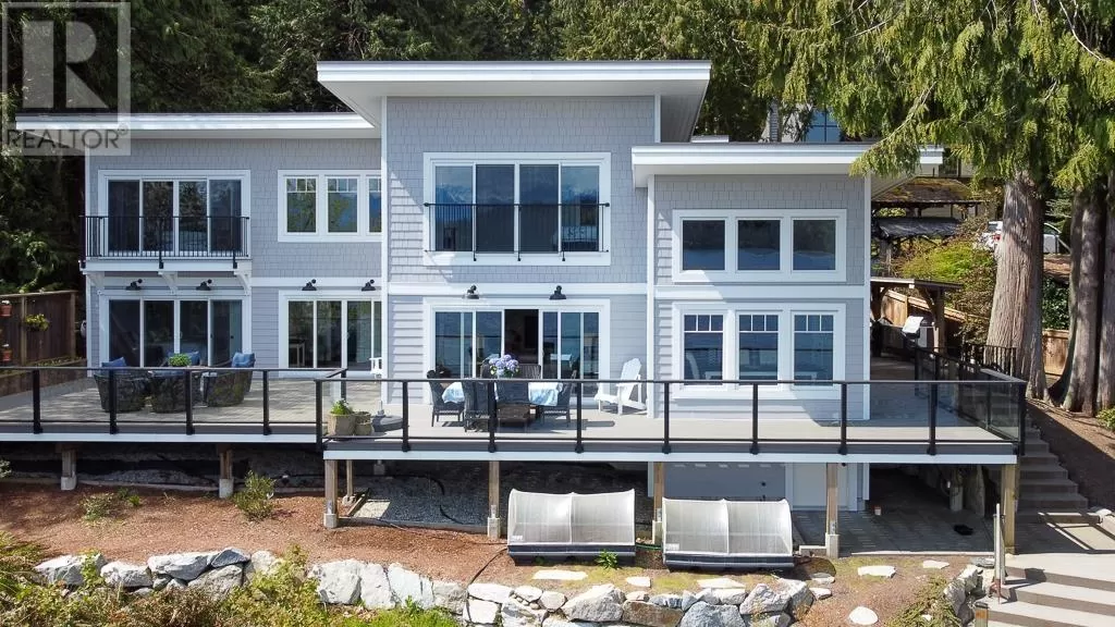 Modern westcoast contemporary waterfront with a long dock six minutes to the ferry. Water and power at shoreline. Perfect if you want a private natural setting and love to entertain. Home was custom designed with so many unique features and attention to details: including outdoor kitchen, butler kitchen, Three Primary size Bedrooms each with Ensuite, Coach house with its own double garage, huge decks - too much to note this is simply stunning and a must see if you want the best. (id:27476)