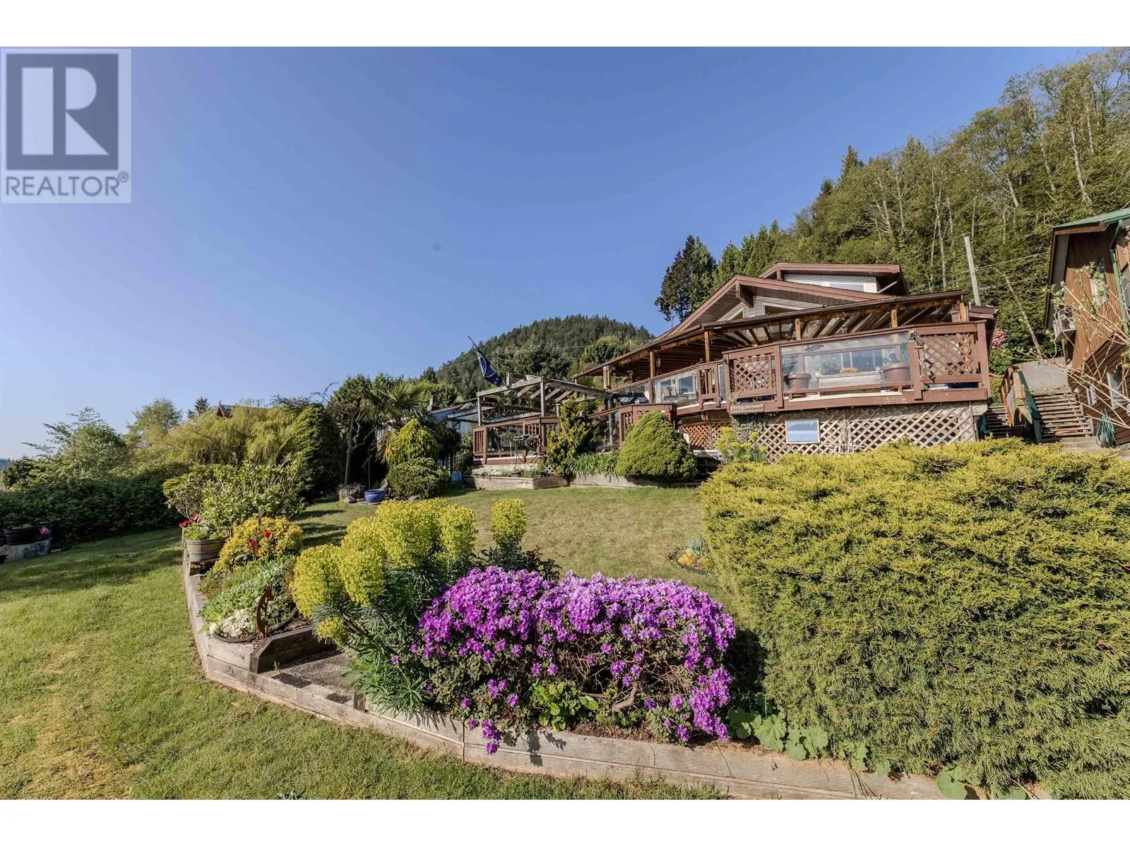 Low Bank Waterfront in Hopkins Landing. Renowned as one of the best Beaches around in Gibsons, you can walk to the Langdale Ferry, have friends visit you and tie up at Hopkins Dock which is in process of being rebuilt or tie your boat up to buoy and have fun all summer. This is about community - families know families and pass on to the next generation. This is a rare offering 10,067' lot, home built in 1991 features open design, vaulted ceilings, huge decks, greenhouse and hot tub. Home has its own garage and you have good spaces for parking on this property. Gardens have been loved for years and are loaded with amazing perennials and hardscaping. This is a special one. (id:27476)
