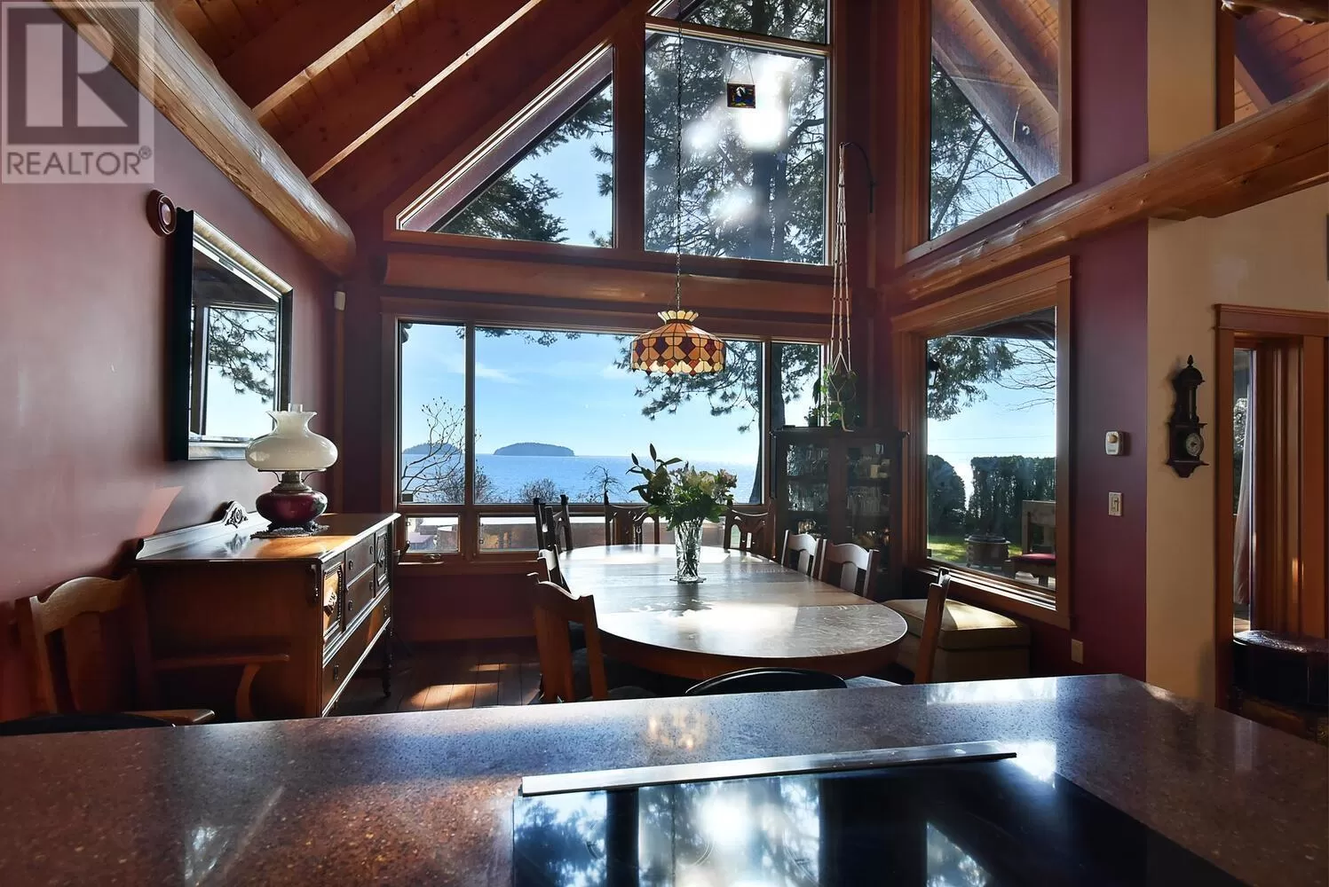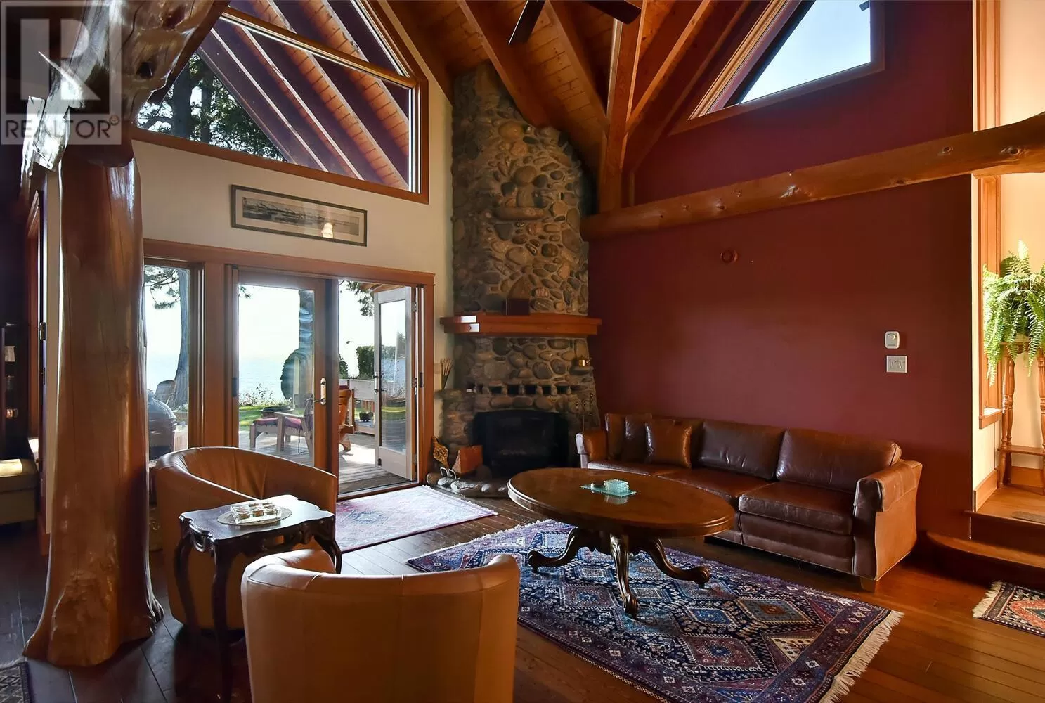 Prestigious FRANKLIN ROAD WATERFRONT, walking distance to the pristine beach below as well as all of the amenities in Lower Gibsons incl. restaurants, shops & the Public Market. This immaculate, custom built home features soaring vaulted ceilings & impressive beam work, all meticulously built & immaculately maintained. Open plan main floor features kitchen/living/dining as well as a den/bedroom, the top floor is a spectacular primary bedroom with luxurious ensuite & sitting area, and the basement level could be more bedrooms/ hobby rooms. Stunning ocean views front & centre from all main living spaces, cozy wood burning fireplace, radiant in floor heat, H/W floors. The level property features mature landscaping & lovely gardens. You can't beat this highly sought after, quiet location. (id:27476)