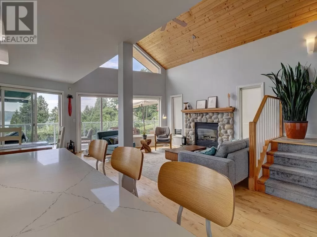 Views! Views! Views! This immaculate 3 bed 3 bath custom home will not disappoint. Located in sought after Granthams Landing you'll find yourself just a few minutes from either the Langdale ferry or all the charm & convenience of Lower Gibsons. The immense view really is a part of the day to day life & the large wraparound deck only adds to the appeal and flexibility. Vaulted ceilings, open plan, loft area, with a lovely primary suite. Not to be overlooked is the 1 bedroom guest suite with 9' ceilings, a beautiful view of its own, open kitchen, its own laundry, & a large flex room. Multi-tiered garden with beautiful landscaping, synthetic grass, & your very own putting green! The single car detached garage even has a large flex space above perfect for another bedroom, office, or guest space. (id:27476)