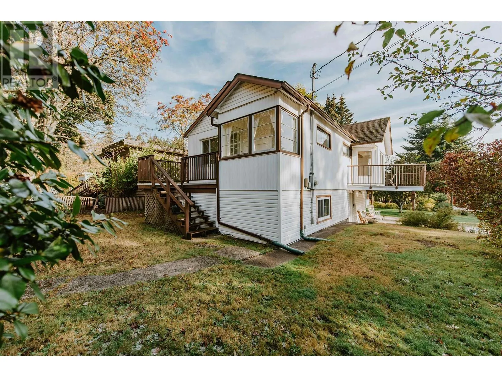Adorable Farmhouse Vibes in a Family-Friendly Neighbourhood! Welcome to this sweet 3-bedroom + den, 1-bathroom gem in the Cedar Grove Elementary catchment! Tucked onto a sunny corner lot, this two-story home is full of charm-from the vaulted wood ceilings in the dining room to the classic white farmhouse sink and butcher block counters that give the kitchen that perfect cozy feel with a bright, airy vibe, the home also features newer stainless steel appliances, updated windows, a newer front door and sliding glass door, and easy-care laminate flooring. Step outside to a spacious, fully usable yard with mature landscaping and a dreamy wraparound sundeck-just right for morning coffee or sunset BBQs (id:27476)