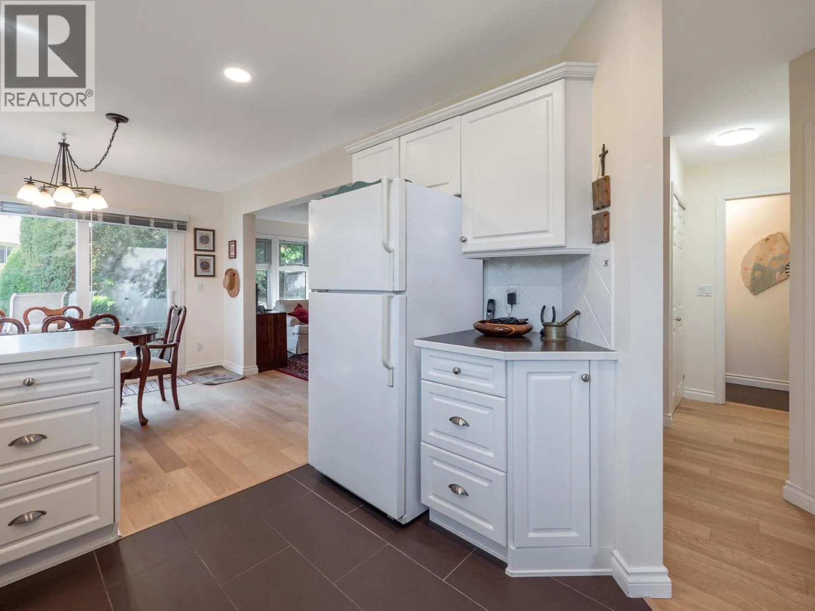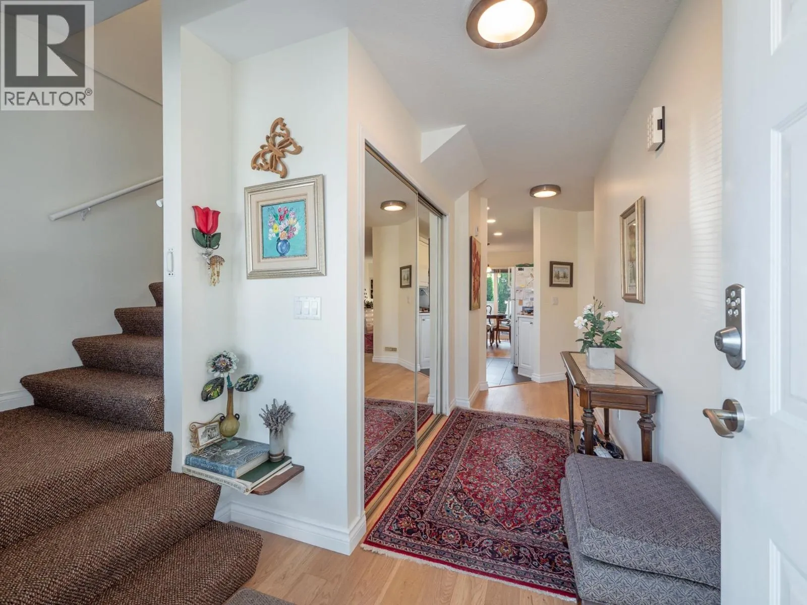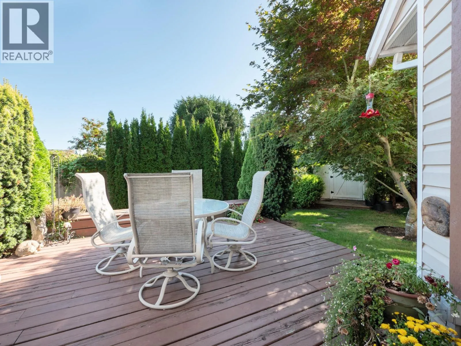 Arguably the best unit in the entire complex- beautifully updated 3-bed, 2-bath, 1/2 duplex tucked away in a quiet, private location offering a rare combination of space, sunshine & serenity. The large, southeast-facing backyard is fully fenced (new metal fence coming), nicely landscaped, complete with garden/storage shed & a sun-drenched deck-perfect for relaxing or entertaining. Inside, you'll find engineered hardwood flooring throughout the main level, updated heated tile in the kitchen & bathroom. Upper bathroom features a spacious double tiled shower, while the entire home is filled with natural light thanks to brand-new triple-glazed windows. With 2 parking spots (one covered), low strata fees, & only one adjoining neighbour, this home feels more like a detached house than a duplex. (id:27476)