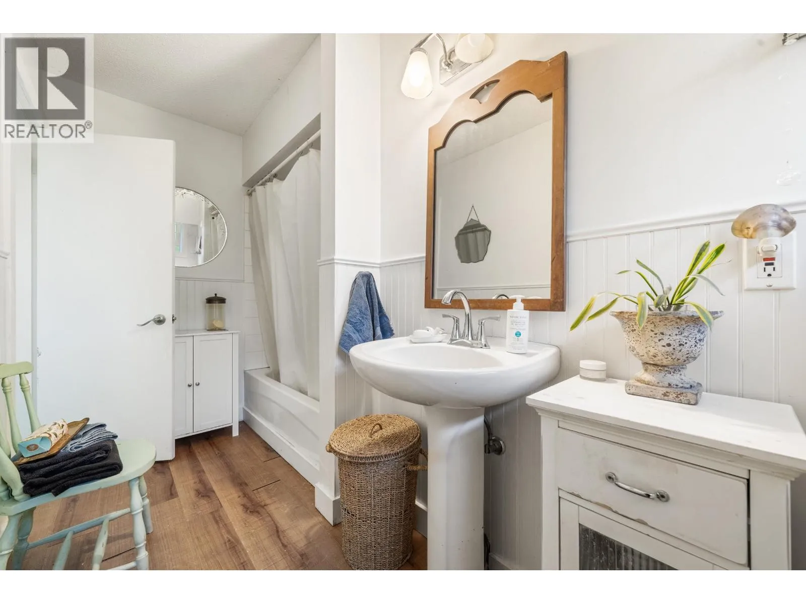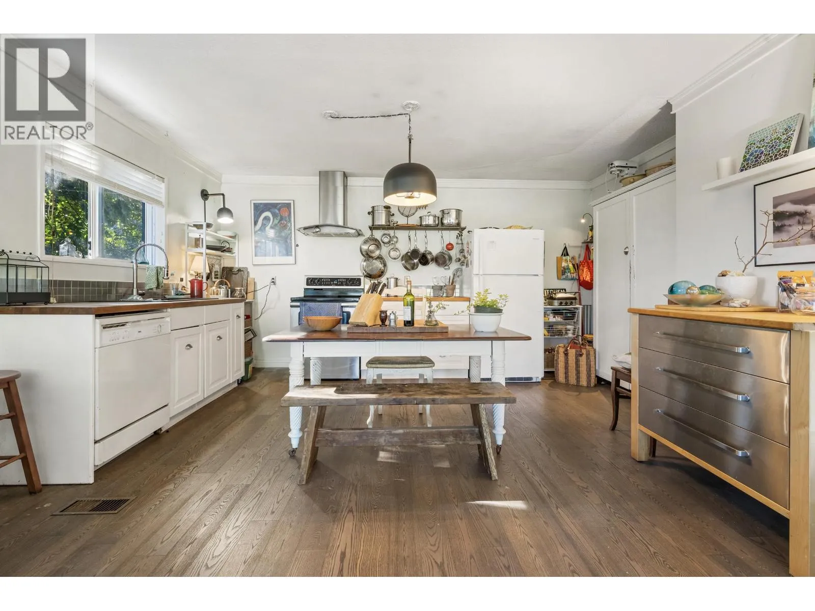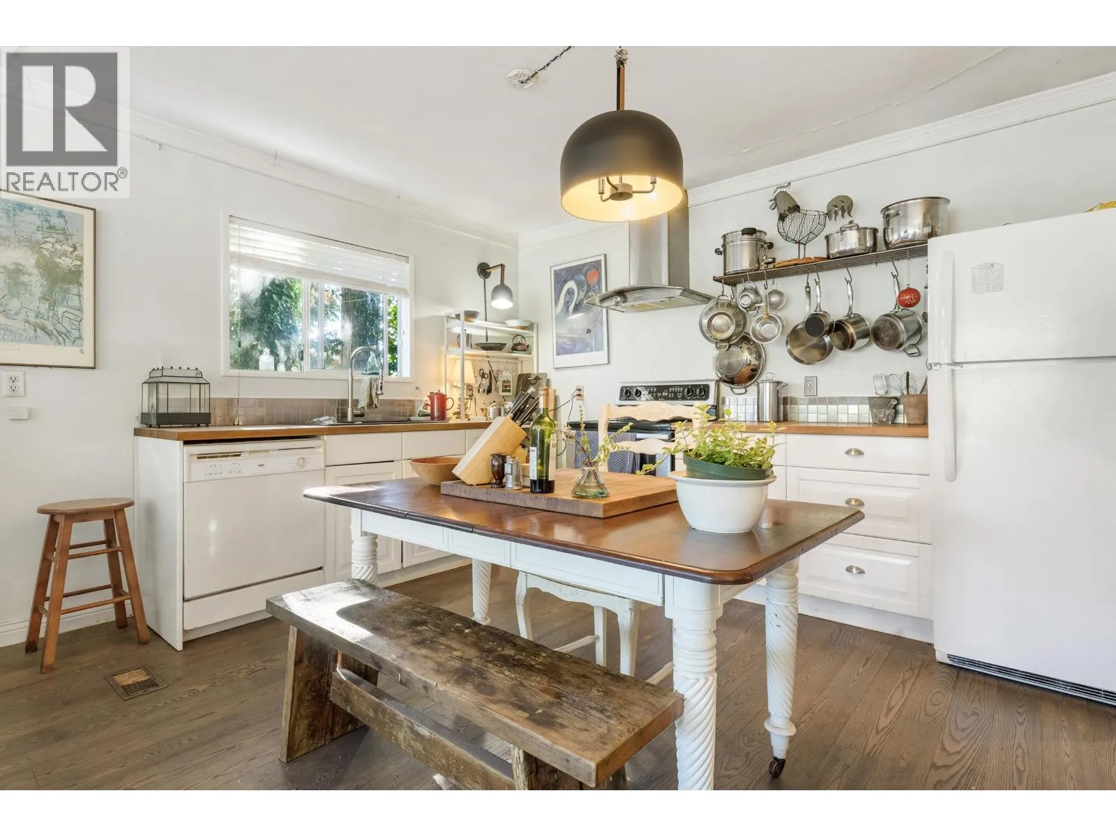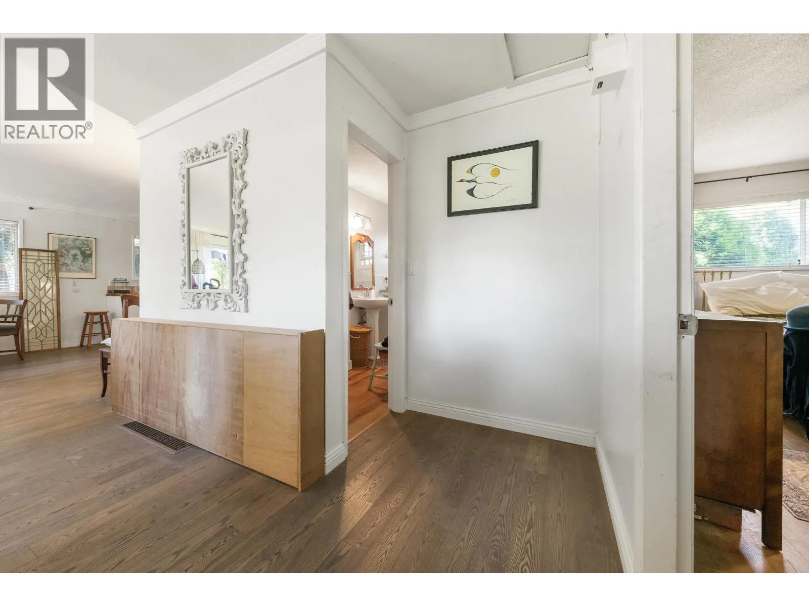 Charming corner lot with ocean glimpses. This desirable corner property offers southeast exposure and partial ocean and island views, which can be further enhanced with thoughtful trimming of the mature Laurel hedge along the south side. The expansive north yard provides excellent potential for a future Garden Suite home, while the existing lower level in-law suite is bright, spacious and welcoming. Upstairs, the open concept layout creates a pleasant and airy atmosphere, perfect for everyday living. The timeless cedar siding blends beautifully with the neighborhood, which is ideally located near schools, amenities, and public transportation. All premium appliances are included with the sale, adding convenience and value. Quick possession possible. (id:27476)