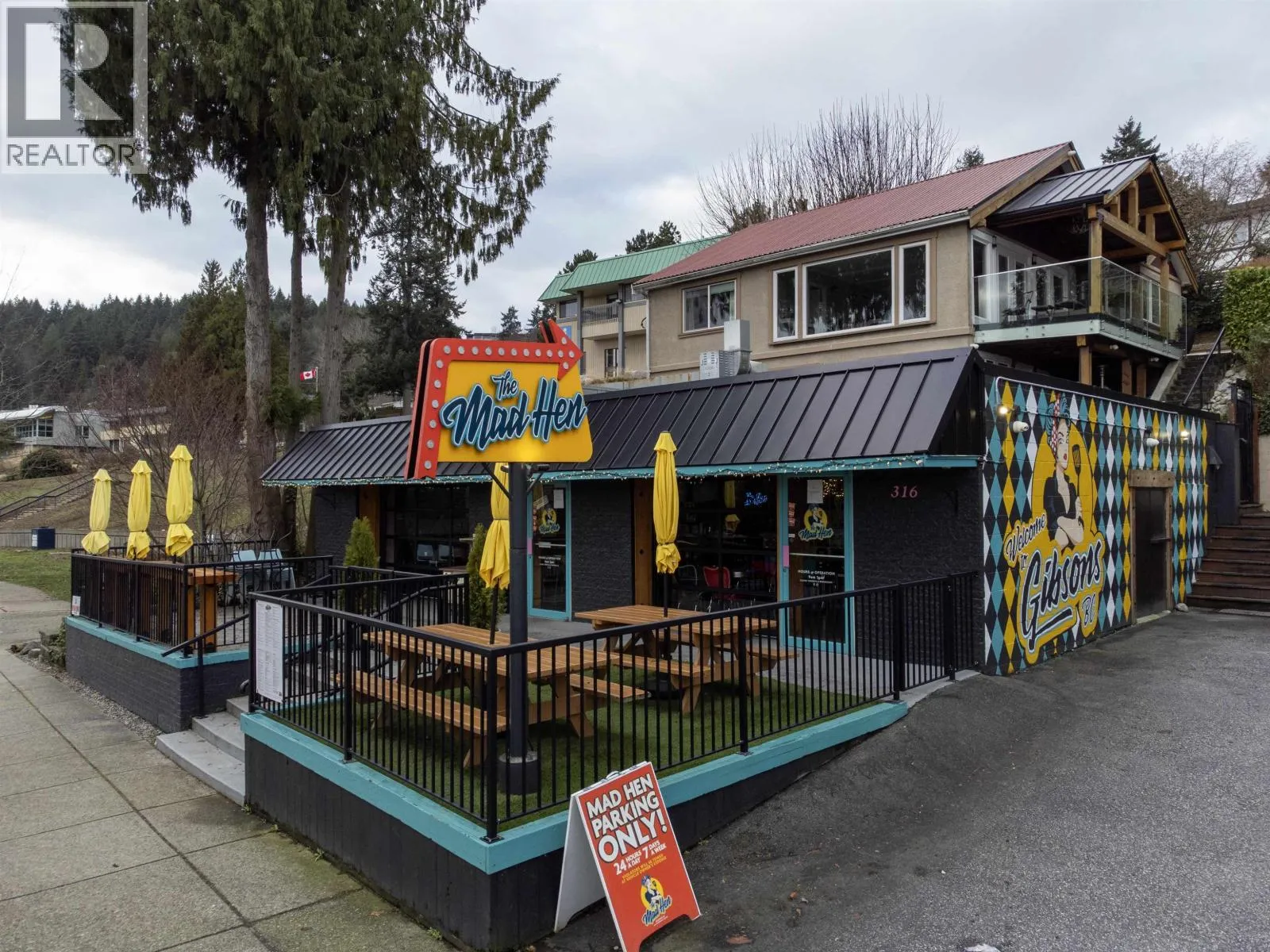 Prime ocean-view restaurant opportunity in the heart of Gibsons Landing. The Mad Hen is a four-time People's Choice Award winner for Best Breakfast & Brunch and a highly recognized, turn-key operation featuring the largest outdoor patio in Lower Gibsons, modern equipment, and strong year-round customer traffic. Features include a large prep area (with potential supplemental revenue), dedicated parking, nostalgic 1950s décor, and exceptional cleanliness throughout. Currently open five days a week for breakfast & lunch, with liquor license in place and significant upside for expanded hours and menu. A rare chance to acquire an award-winning, established Sunshine Coast destination. Contact listing agent to request full info pack. (id:27476)