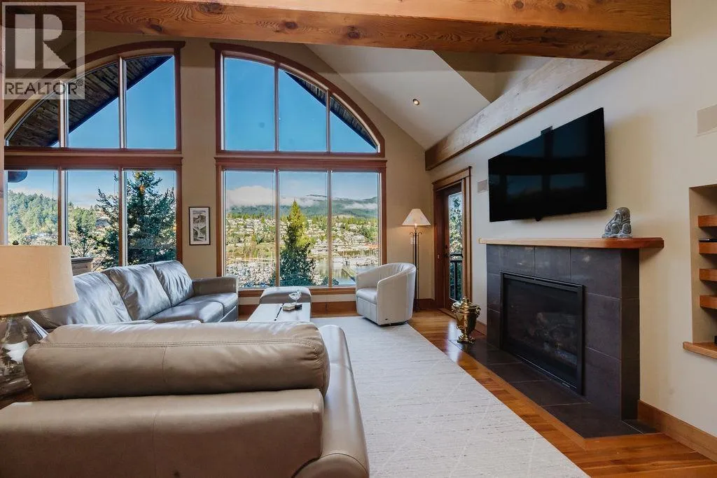 Stunning West Coast post & beam home with unobstructed views of Gibsons Harbour, Lower Gibsons, and Mt. Elphinstone. Open-concept living with floor-to-ceiling picture windows capturing views from nearly every room. Gourmet kitchen with quartzite counters and premium appliances. Primary suite features private deck, walk-in closet, and spa-like ensuite with heated floors, Japanese soaker tub, and rainfall shower. Upper level offers two bedrooms, full bathroom, and view-filled landing. Covered concrete patio with gas hookup plus west-facing covered view deck. The lower floor features a single car garage with additional storage space plus utility room w/High-efficiency heat pump and forced-air furnace. The Sale includes the neighbouring 7,340 square ft view lot for future building or co-purchase. (id:27476)