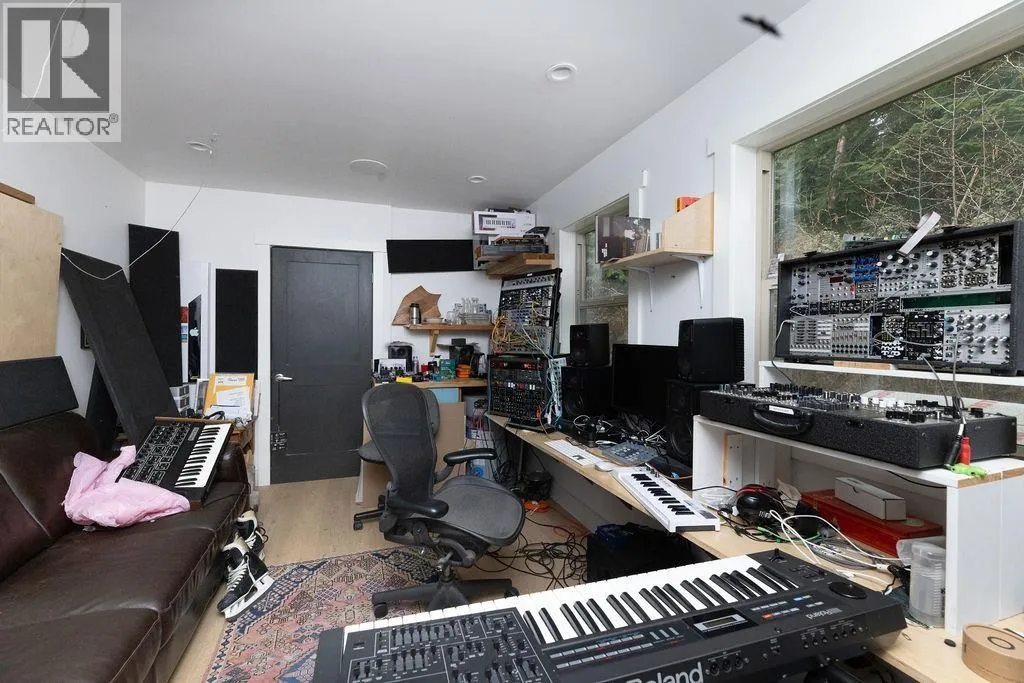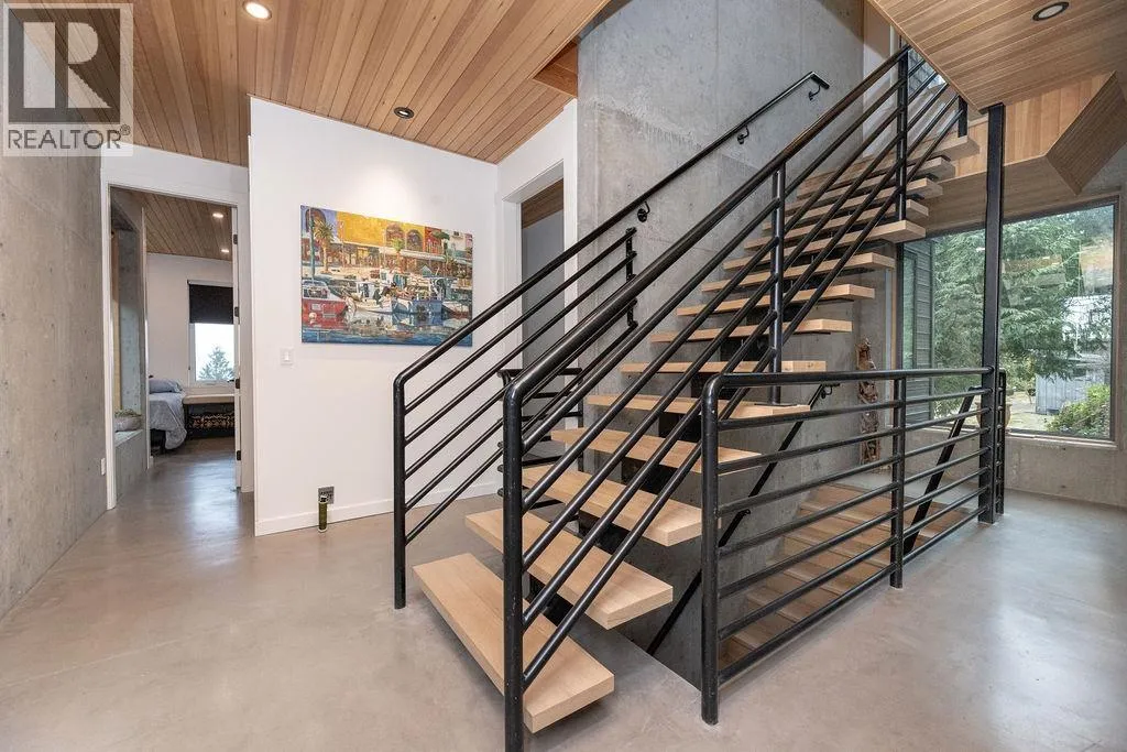 Nestled in the treetops, experience soft ocean breezes while looking over the distant Salish Sea and Islands. This extraordinary 4 year old home located minutes from Gibsons features concrete in-floor heating, lovely vaulted wood ceilings with wood beams, oak flooring on the top floor, a chef´s kitchen with top end Fisher Paykel appliances and a dual fuel range. The 9 foot kitchen island seats 6 stools making entertaining a breeze while the guests wander in and out from the expansive deck. The primary bedroom offers spectacular views and boats a 5 piece spa-inspired bath. Included in the package is a two bedroom cottage located privately away from the main house. Separate sauna and outdoor shower is shared between both residences.The 1400 sq.ft. detached workshop w 12 foot ceiling height features triple bay doors stacking into one, wiring for 240 and 3 phase tools, an office space, storage and a paint room. A drilled well enables year round watering for the greenhouse and the bountiful vegetable garden. (id:27476)