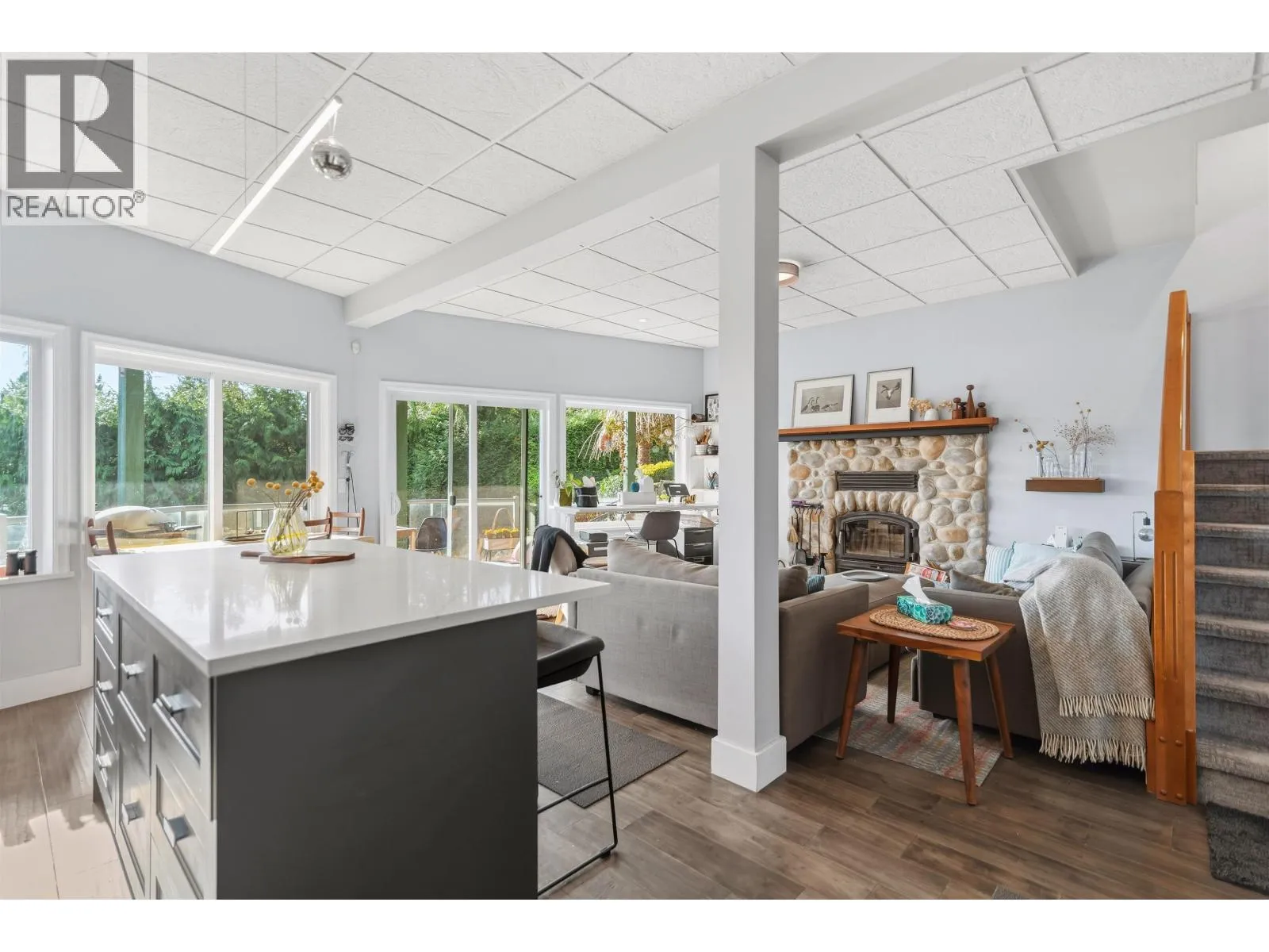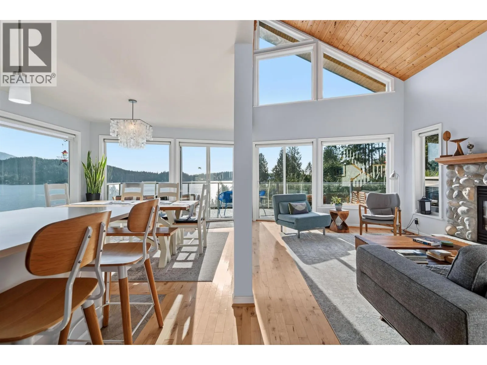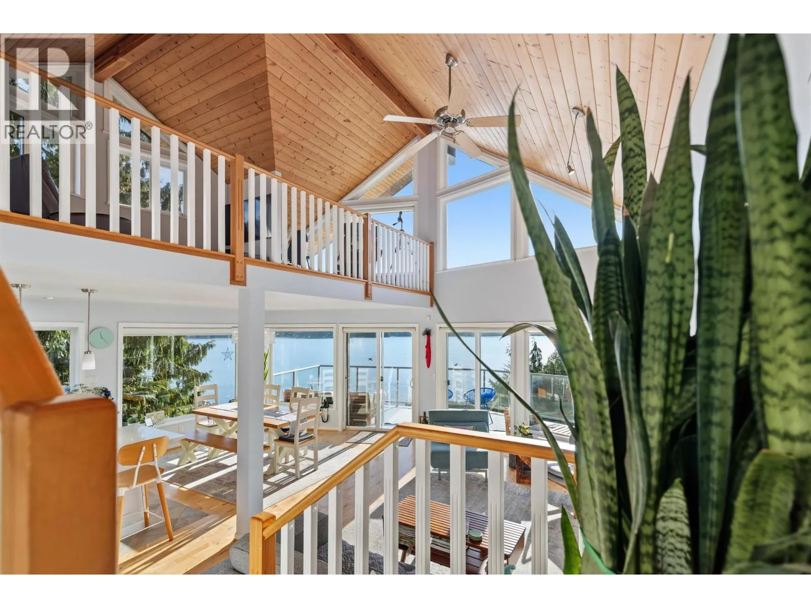 Beautifully landscaped custom home on a double 1/4 acre lot in sought-after Granthams Landing, just minutes to the ferry and the amenities of Lower Gibsons. Enjoy spectacular 180° ocean, island, and mountain views from the expansive wraparound deck and vaulted open-plan living area. Features include 3 bedrooms, 3 baths, a lofted primary suite with a spa-like ensuite, heated floors, gas and wood fireplaces, energy-efficient heaters, and a newer kitchen with quartz counters and high-end appliances. The lower level offers a self-contained 1-bedroom suite with 9' ceilings, a private entry, open plan, and a brand-new kitchen. A detached single-car garage includes a flex space above-perfect for an office, gym, or guest space. Easy-care tiered gardens with synthetic turf and a putting green! (id:27476)