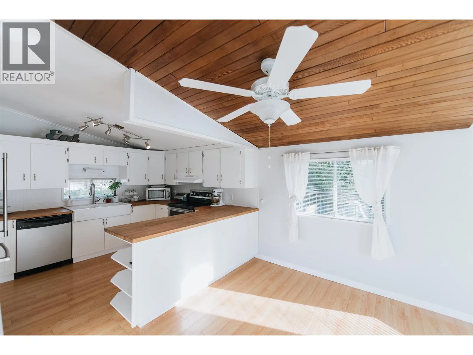 Adorable Farmhouse Vibes in a Family-Friendly Neighbourhood! Welcome to this sweet 3-bedroom + den, 1-bathroom gem in the Cedar Grove Elementary catchment! Tucked onto a sunny corner lot, this two-story home is full of charm-from the vaulted wood ceilings in the dining room to the classic white farmhouse sink and butcher block counters that give the kitchen that perfect cozy feel with a bright, airy vibe, the home also features newer stainless steel appliances, updated windows, a newer front door and sliding glass door, and easy-care laminate flooring. Step outside to a spacious, fully usable yard with mature landscaping and a dreamy wraparound sundeck-just right for morning coffee or sunset BBQs (id:27476)