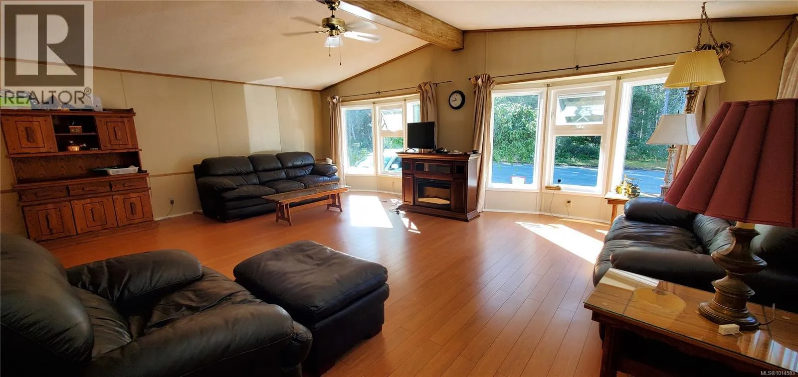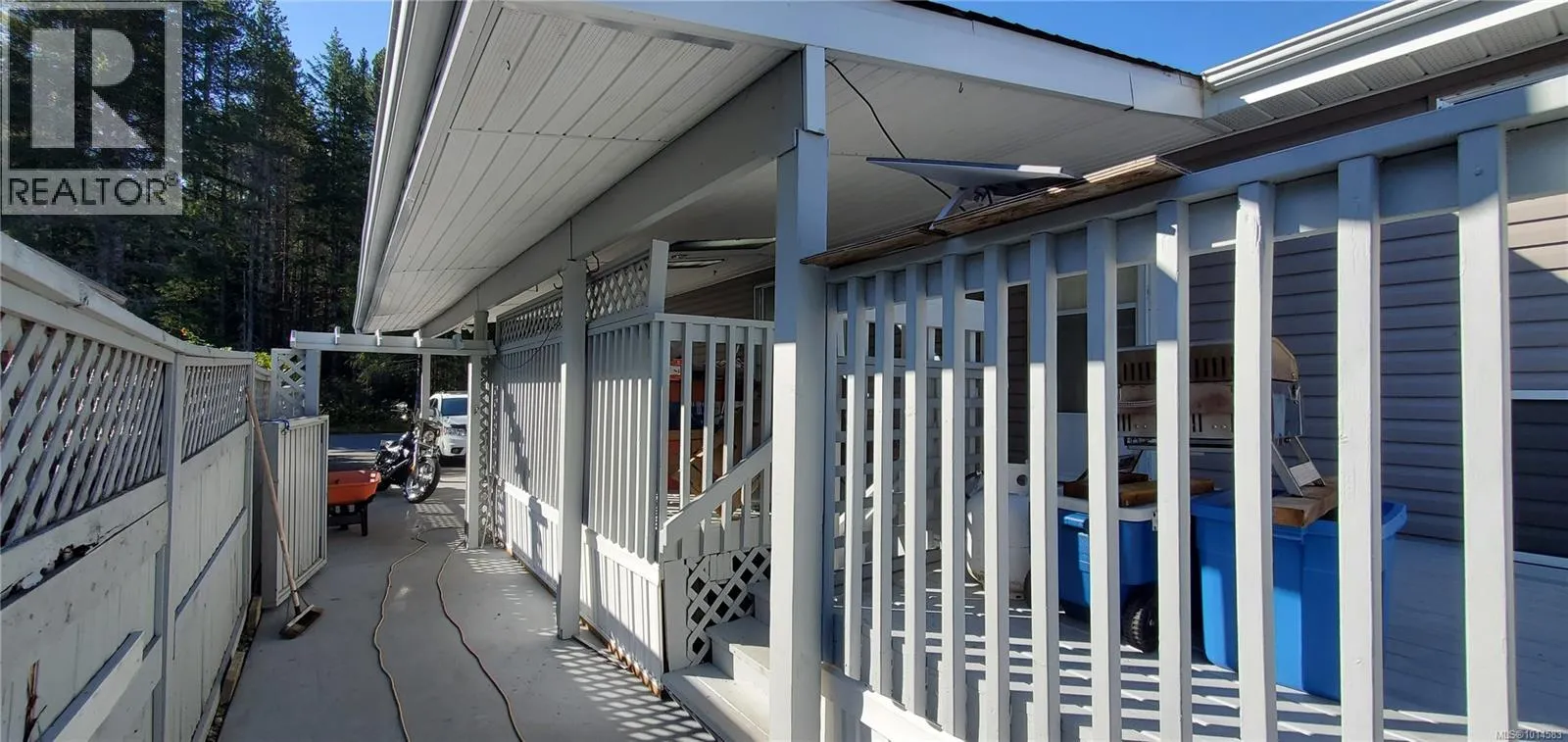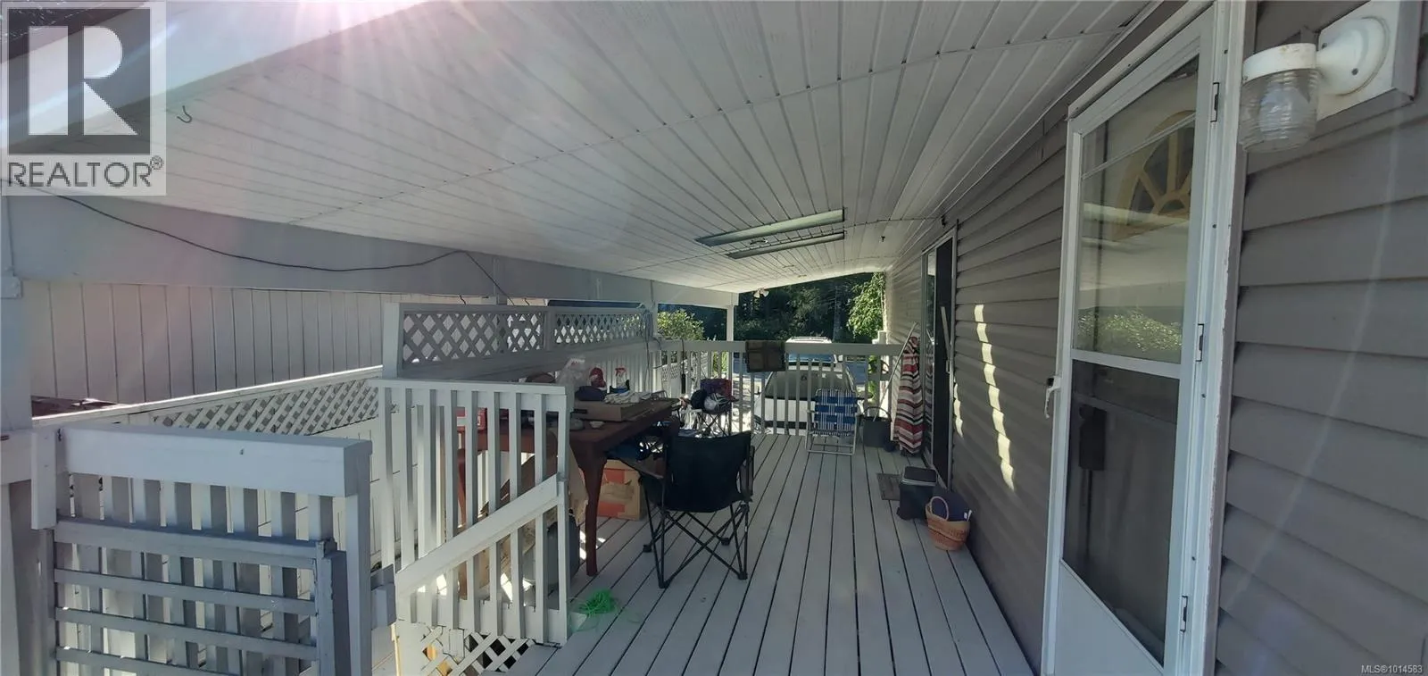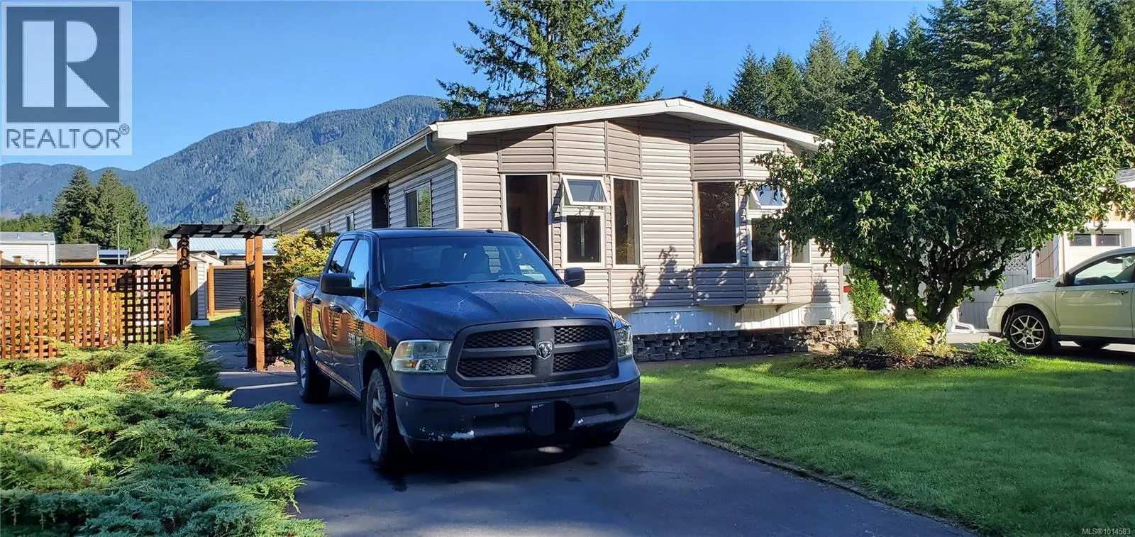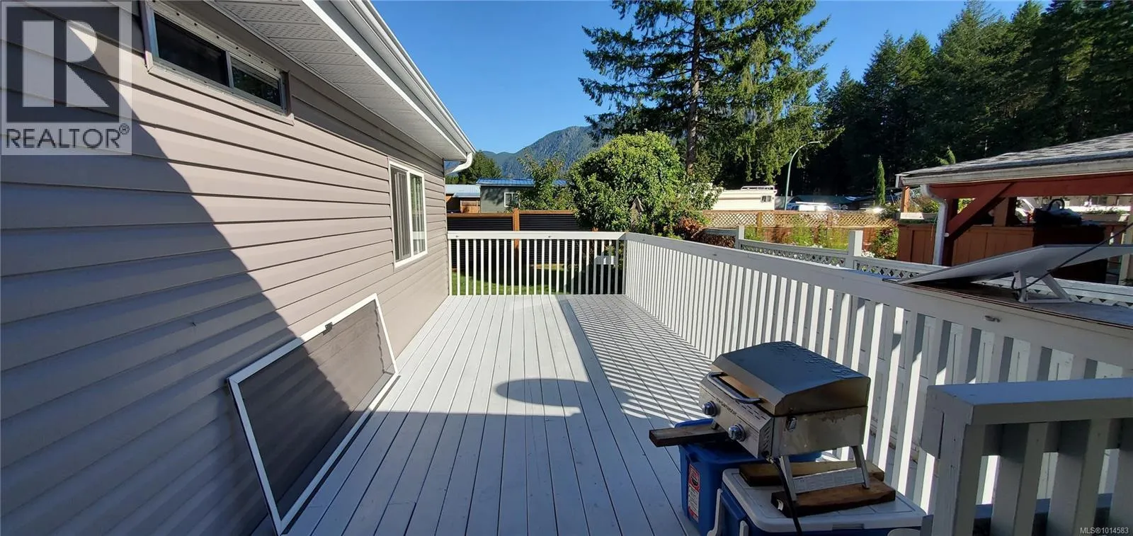 Well-maintained double-wide manufactured home on its own lot. Updates include vinyl siding and skirting, vinyl windows, and 2 sides of new fencing. This spacious home offers a bright, open living area with 3 bedrooms and 2 bathrooms, laminate and tile flooring. The primary bedroom features a walk-in closet and ensuite for added comfort. Enjoy outdoor living on the large, partly covered deck, and take advantage of the convenience of a carport. Nice garden/ yard and flat lot with garden shed. Across from quiet wooded area. (id:27476)