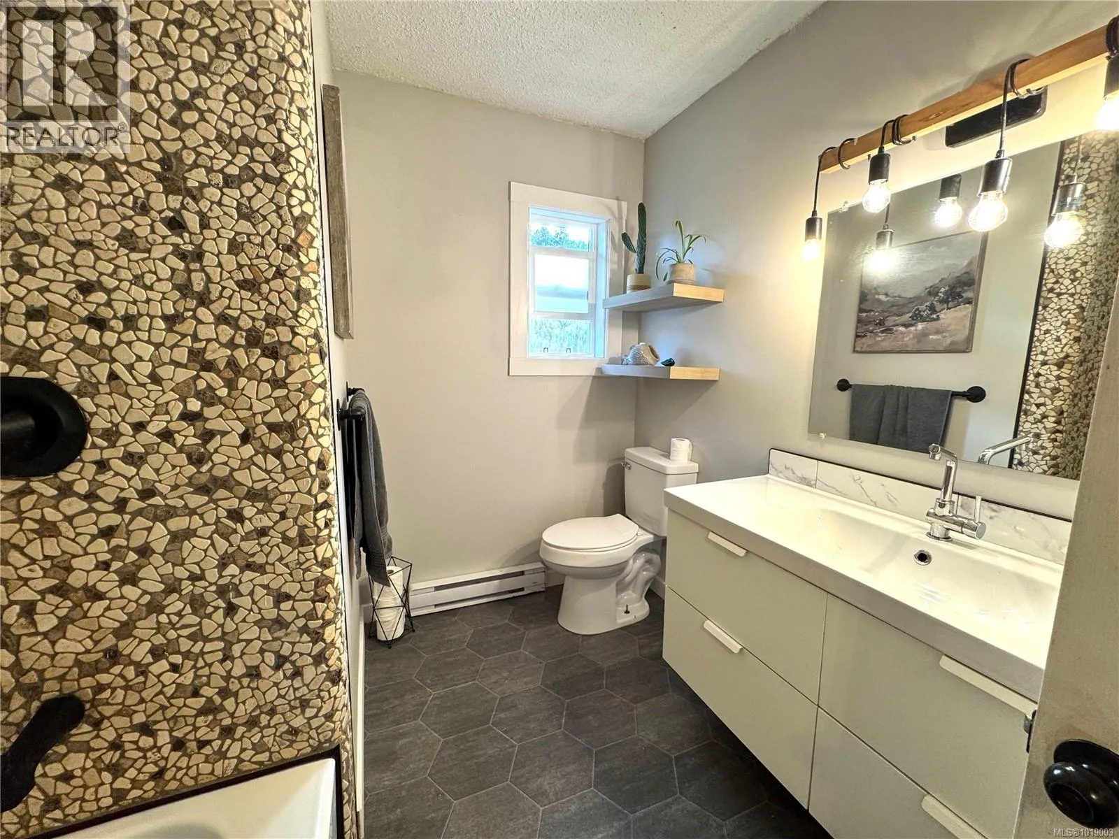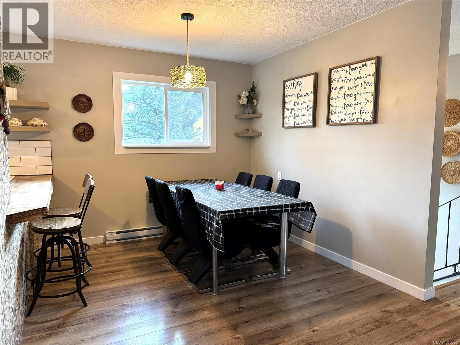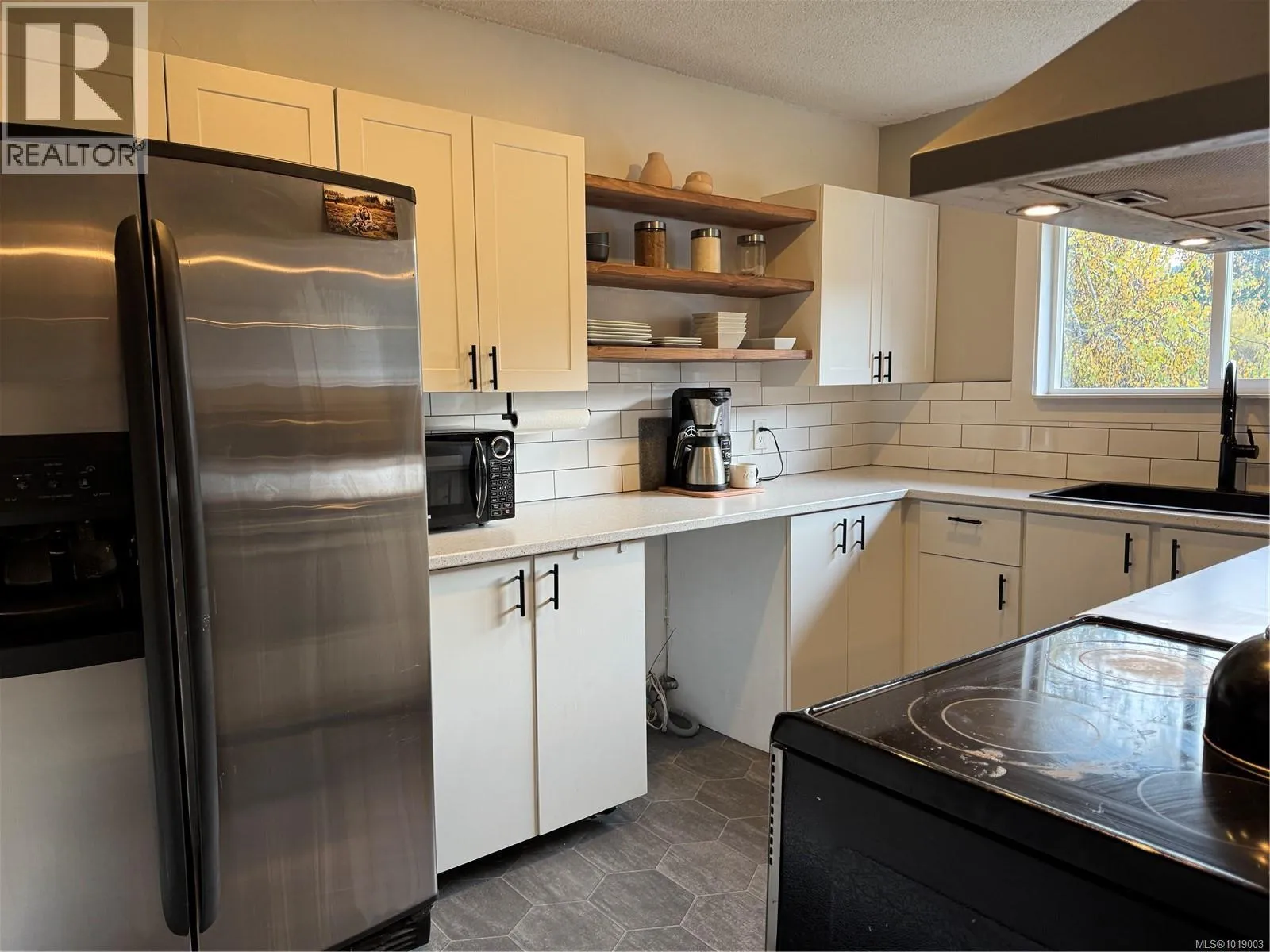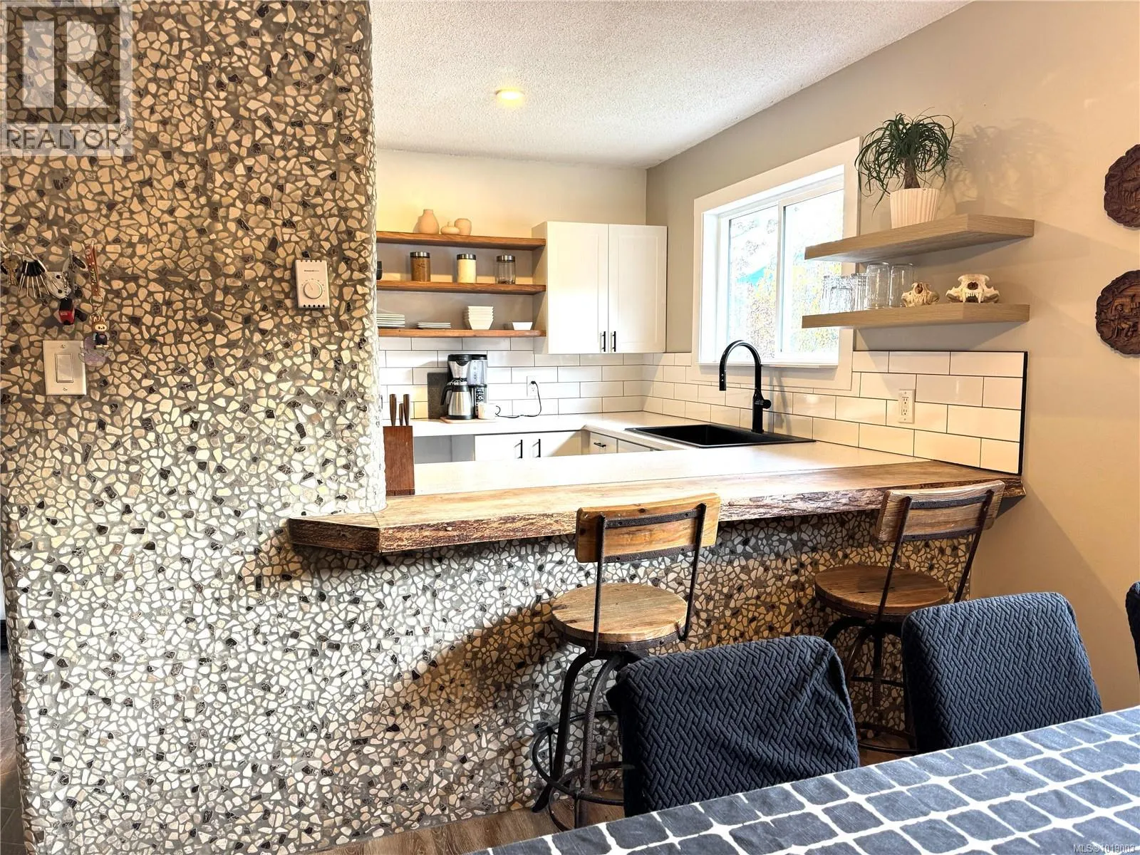 Welcome to this beautifully remodeled 4-bedroom, 2-bath family home in the heart of Gold River. Perfectly blending modern style with a warm, homey feel, this contemporary gem offers comfort, functionality, and charm throughout. The bright, open-concept layout features all-new flooring, fixtures, and vinyl windows, with a stunning feature fireplace creating cozy ambiance in the living room. The brand-new kitchen shines with its live edge shelving, tile backsplash, sleek countertops and stone accent finishes. Both bathrooms have been tastefully updated, and the home includes new vinyl siding and an upgraded 200-amp electrical service. Step outside to a large deck overlooking the fully fenced backyard, access to park, complete with raised garden beds and extra storage. With a single-car garage, ample parking, and a great neighbourhood setting, this move-in ready home offers the perfect blend of style, comfort, and West Coast living. Arrange your private viewing today! (id:27476)