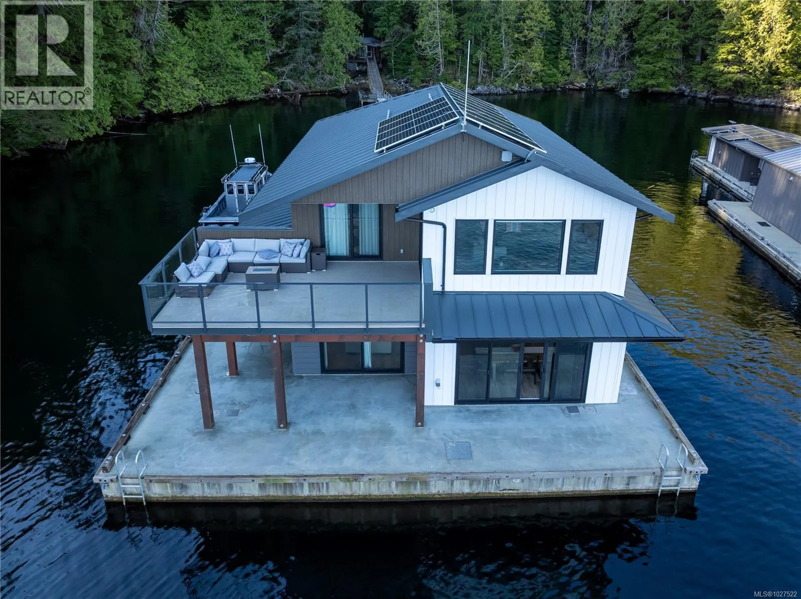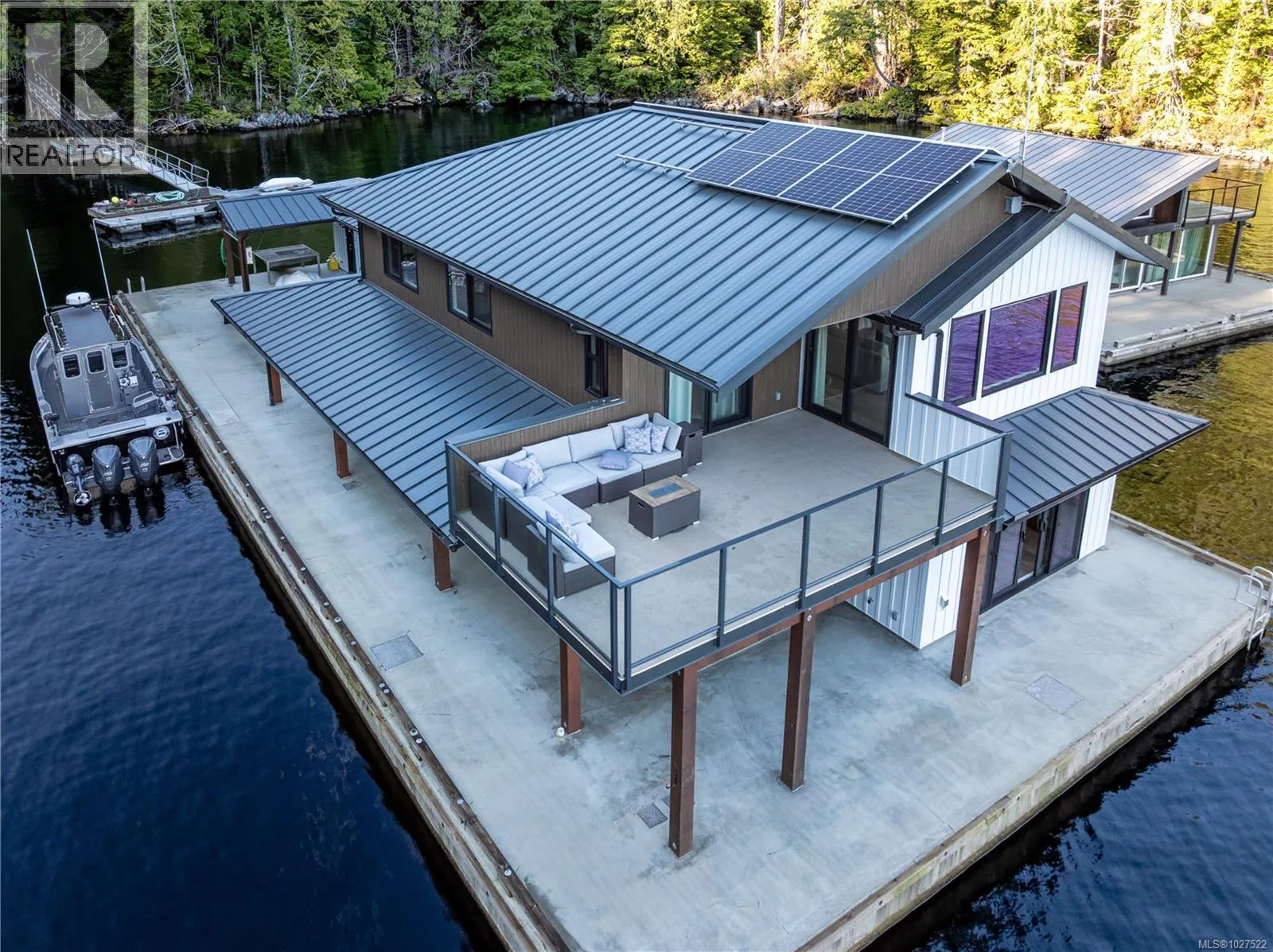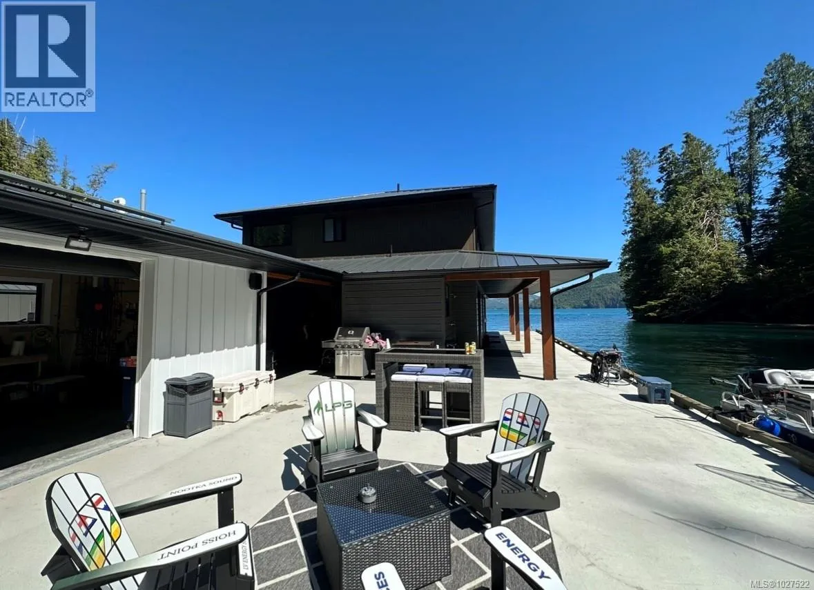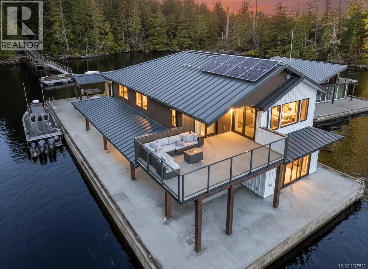 At Hoiss Point in Nootka Sound, few offshore properties command this level of design & capability. Built with the strength of a traditional residence, this modern float home delivers serious West Coast performance with refined comfort. Clean lines & quality construction create a sleek interior rarely found in remote settings. Solar power, hot water on demand, in floor heat & remote climate controls ensure effortless year-round living. A gas fireplace between oversized windows frames shifting greens of the forest & blue ocean. Expansive gathering spaces, generous bedrooms, a large kitchen, substantial shop & dedicated fish cleaning station support extended stays and serious sportfishing. Immediate access to trophy tuna waters, strong salmon runs & abundant marine wildlife completes the offering. Commercial zoning allows private enjoyment or sportfishing lodge potential. Exceptional craftsmanship throughout, completed by Marine Pacific Construction, a respected West Coast marine builder. (id:27476)
