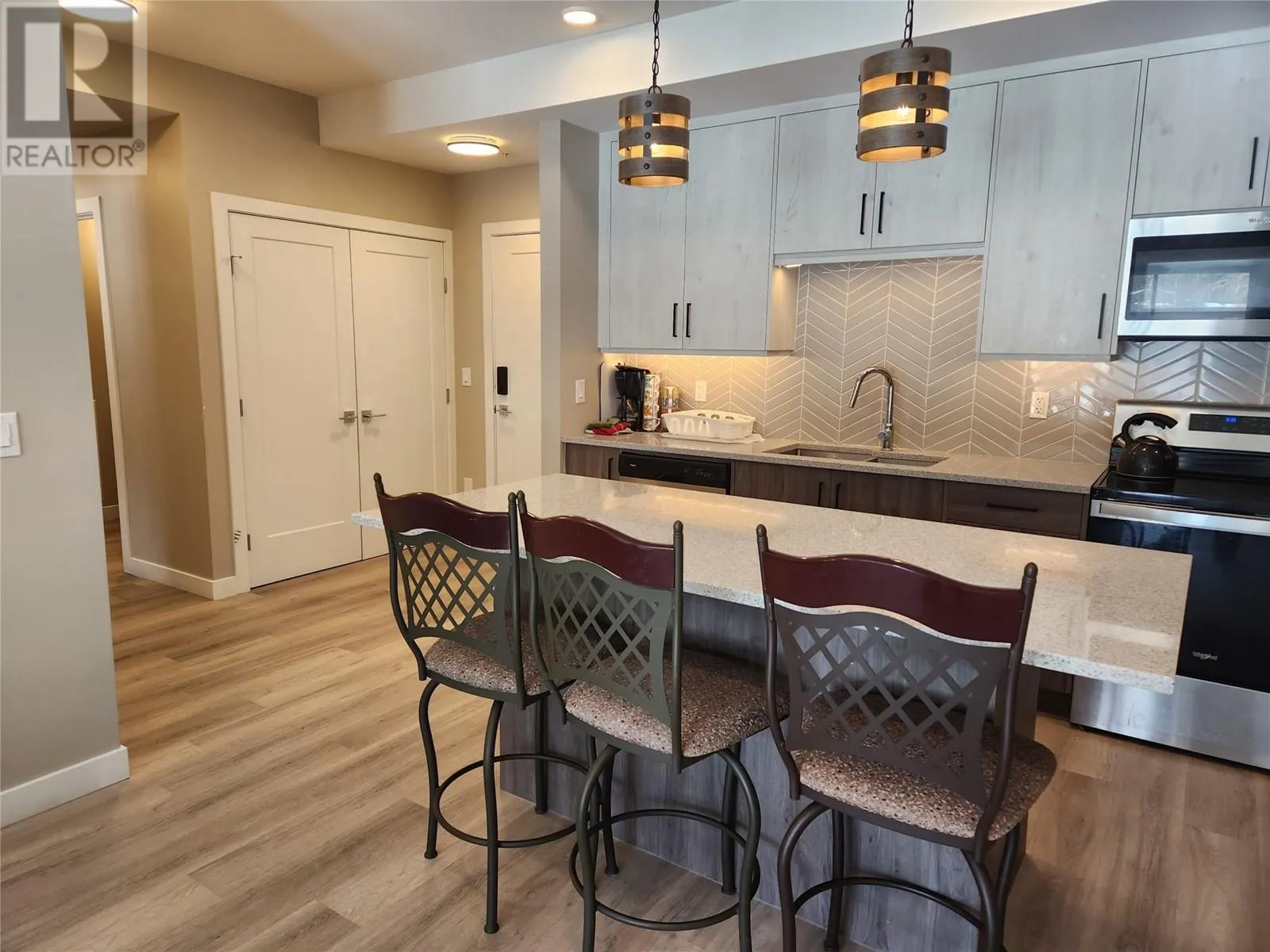 2022 built 4 bedroom 2 bathroom apartment in Golden BC. A short walk from all of Golden's businesses located on Highway 1 . The perfect location to house workers . This apartment is composed of a large open concept kitchen with an oversized island, stainless steel appliances and high ceilings . The kitchen opens into the livingroom and patio space which looks over the parking lot and toward Highway 1. On one side of the apartment you have 2 bedrooms, a bathroom and a laundry room. On the other you have a primary bedroom with ensuite, and a second bedroom. The apartment is easily accessible and has plenty of room! Please note this apartment is part of the affordable housing program and does have rental restrictions . (id:27476)