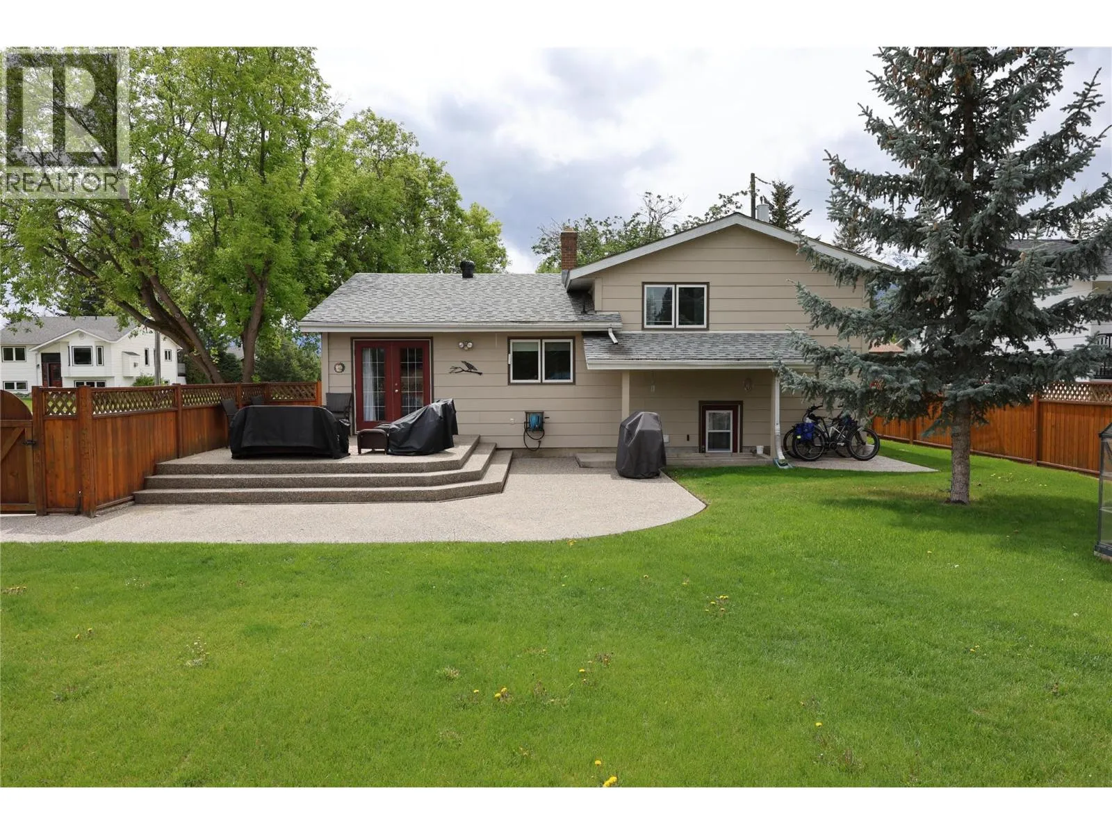 Backing onto Keith King Memorial Park, this corner lot sits on a quiet no-through road with only one next-door neighbour. The fenced yard borders public green space with a playground, sports fields, a bike park, Mount 7 trails and you're just steps from the Rotary Trail making it easy to walk or bike to schools, Rec Plex, Kicking Horse River, and even downtown. Selkirk Heights is a peaceful, family-friendly neighbourhood close to everything. Thereâs plenty of parking for vehicles, a large RV, and guestsâthanks to the wide streets and public land behind the lot. The home is a split-level design by Nelson Homes, built with quality and energy efficiency in mind. It boasts an 86 Energy Star rating, a high-end heat pump for heating and cooling, and plenty of insulation beneath the recently replaced roof. Inside, the home is spotless. The Benjamin Moore paint still looks fresh, and the mix of cozy carpet, hardwood, and tile gives each space the right feel. Newer stainless steel appliances add confidence and convenience. The bright, south-facing living room is full of natural light, while the large family room offers extra space to relax. All maintenance and upgrades have been professionally completed. Outside, the cedar-fenced backyard is perfect for kids or pets, with lush grass, flower beds, and shrubs surrounding the home. A multi-level exposed aggregate concrete deck faces northwestâperfect for mountain views and sunsets. Thereâs also a designated space wired for a hot tub. (id:27476)