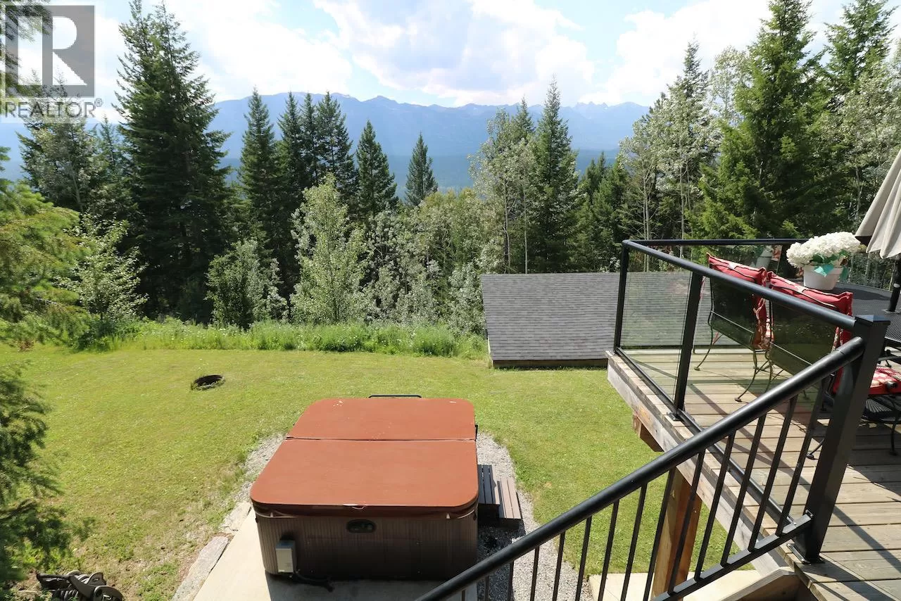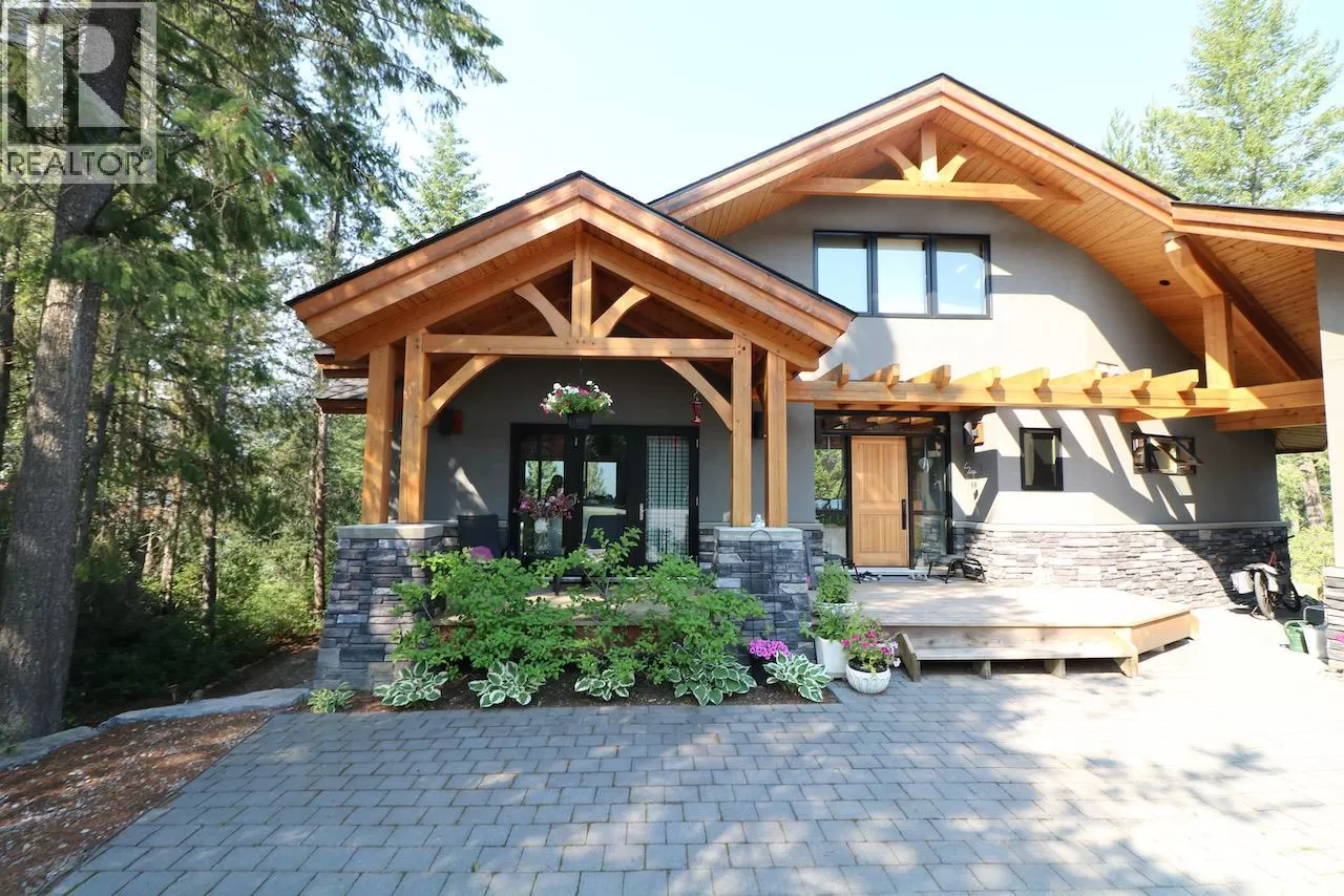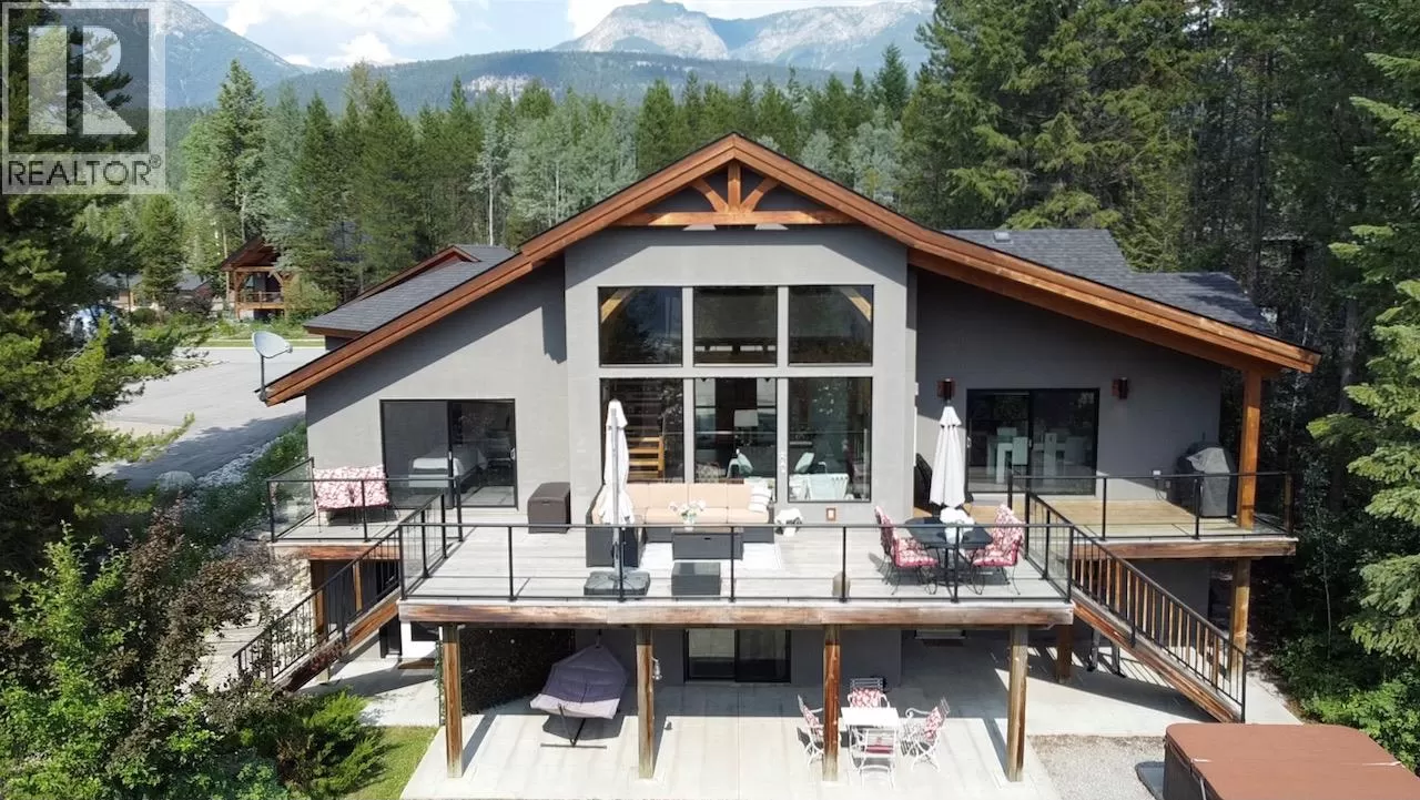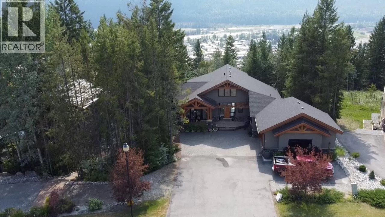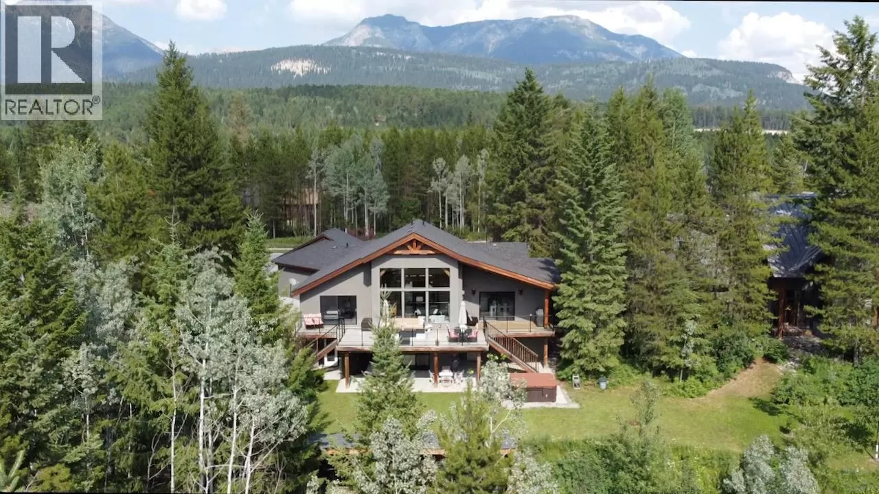 Family Home + Suite with STR Potential Incredible views looking straight across the valley at Kicking Horse Mountain Resort. Located very close to Sky Bridge and countless other recreational activities. The home is timber-frame with beautiful wood features throughout, including tongue-and-groove ceilings, wood window casings, and large decks on both the front and back. The walk-out basement suite opens onto a huge concrete patio with a large hot tub â perfect for relaxing or entertaining. Geo-thermal in-floor heat and cooling in the basement keep it comfortable year-round, while forced air upstairs keeps fresh air circulating. All fixtures and features in the home are high-end or better â square sinks, wall-mounted taps, floor-to-ceiling tiles, custom stainless steel railings, lots of glass, luxury light fixtures, built-in appliances, and a security system. The oversized heated garage includes a double wooden door with a quiet side-mount opener, attic storage, custom cabinets, and a workbench with a sink. For your furry friends, thereâs a 500 sq ft kennel and dog run that could easily be converted into a greenhouse. Click the media links to see a 3D tour and a video walkthrough. (id:27476)