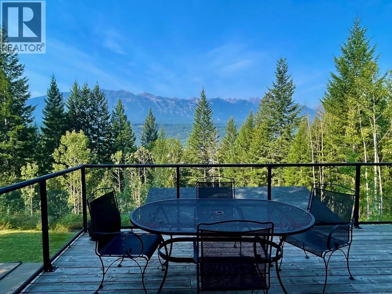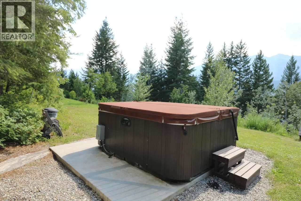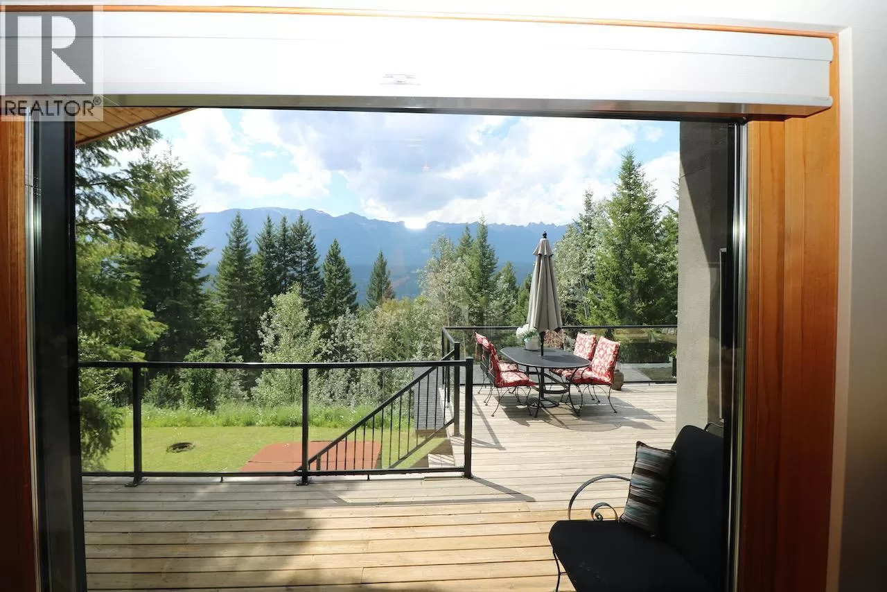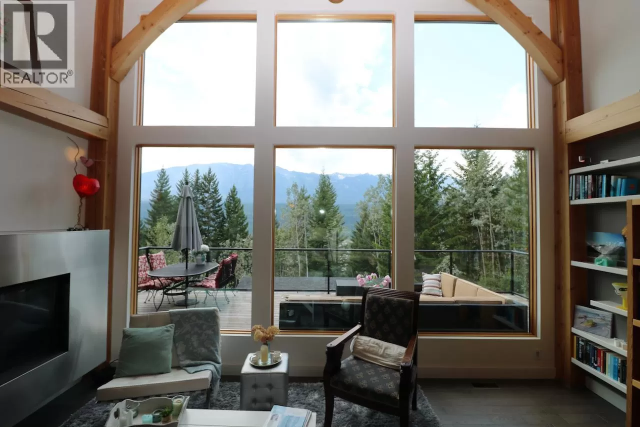 Family Home + Suite with STR Potential Incredible views looking straight across the valley at Kicking Horse Mountain Resort. Located very close to Sky Bridge and countless other recreational activities. The home is timber-frame with beautiful wood features throughout, including tongue-and-groove ceilings, wood window casings, and large decks on both the front and back. The walk-out basement suite opens onto a huge concrete patio with a large hot tub â perfect for relaxing or entertaining. Geo-thermal in-floor heat and cooling in the basement keep it comfortable year-round, while forced air upstairs keeps fresh air circulating. All fixtures and features in the home are high-end or better â square sinks, wall-mounted taps, floor-to-ceiling tiles, custom stainless steel railings, lots of glass, luxury light fixtures, built-in appliances, and a security system. The oversized heated garage includes a double wooden door with a quiet side-mount opener, attic storage, custom cabinets, and a workbench with a sink. For your furry friends, thereâs a 500 sq ft kennel and dog run that could easily be converted into a greenhouse. Click the media links to see a 3D tour and a video walkthrough. (id:27476)