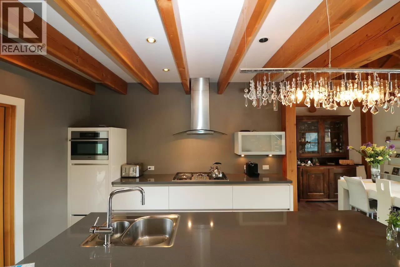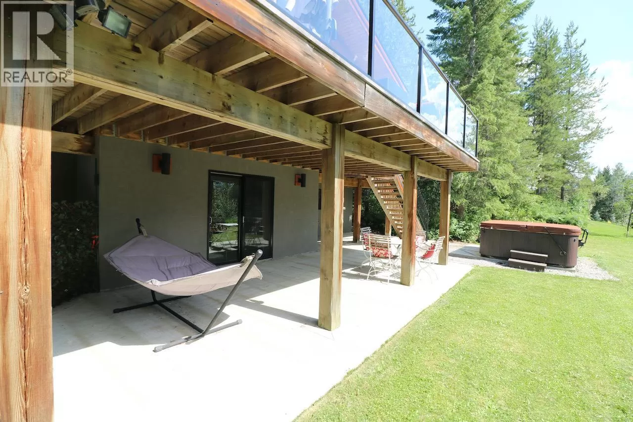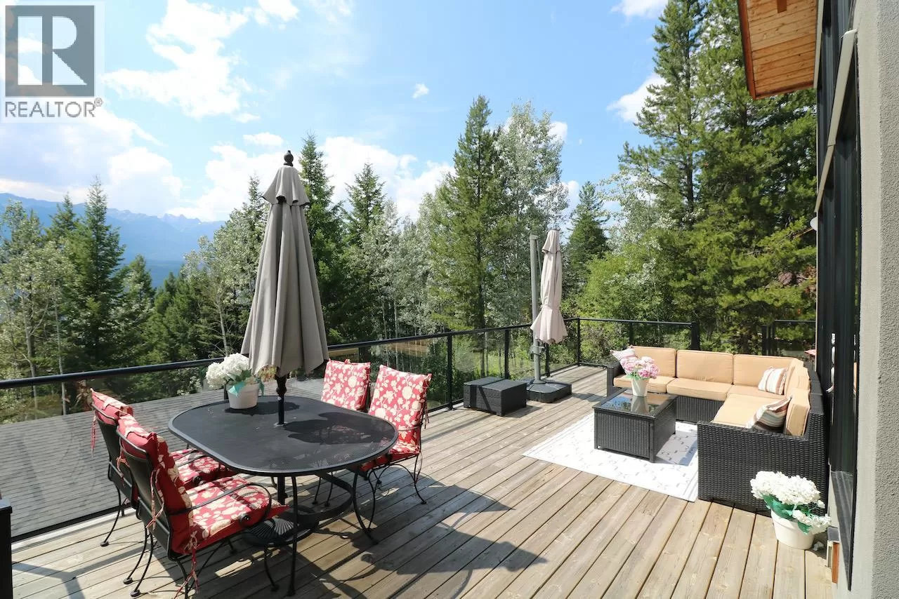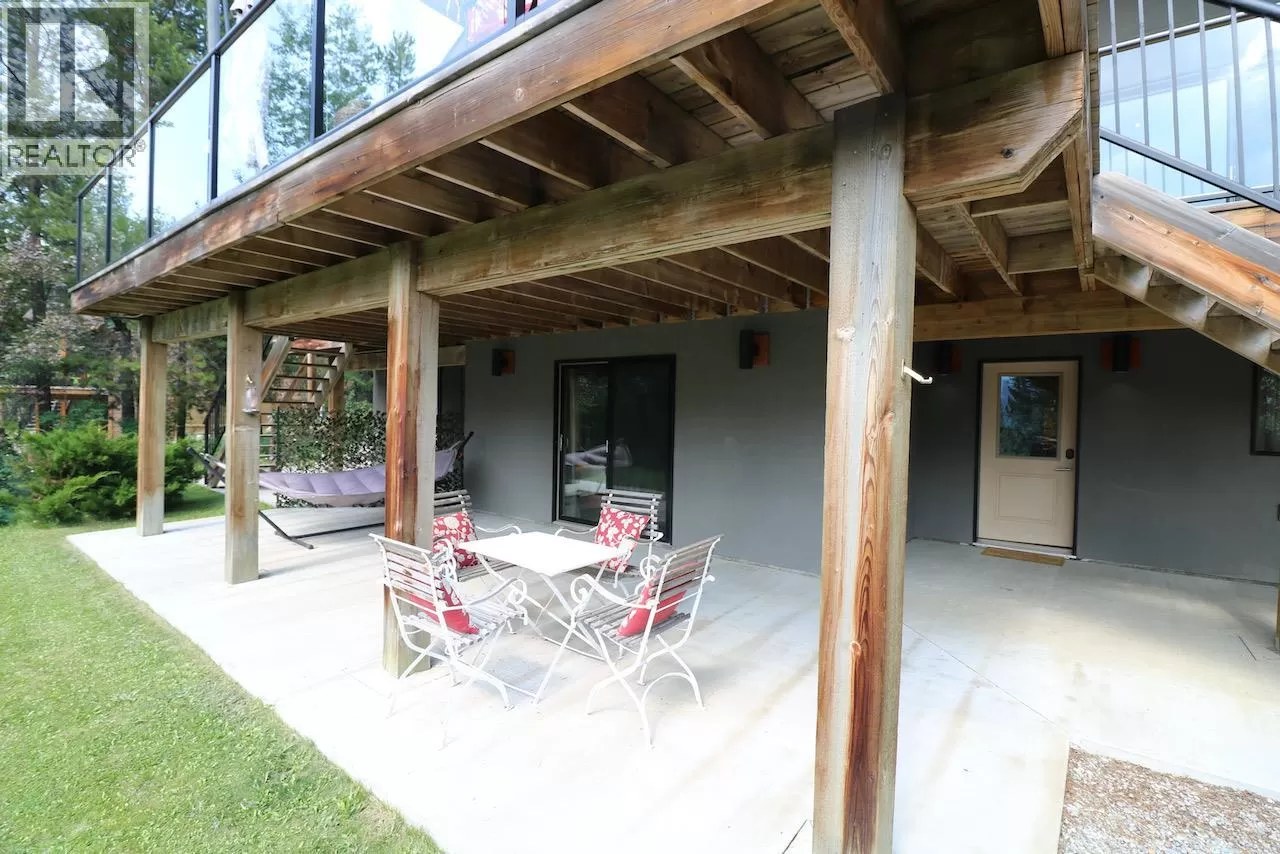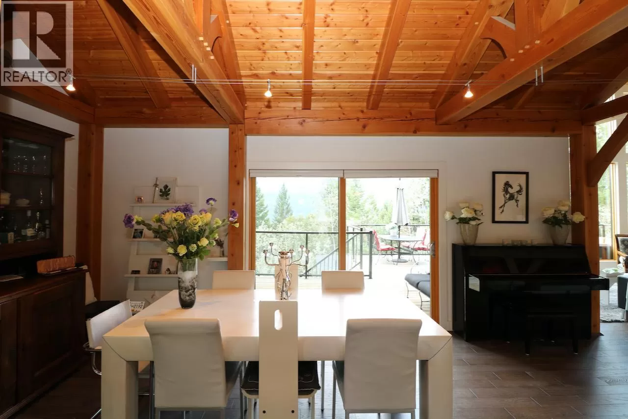 Family Home + Suite with STR Potential Incredible views looking straight across the valley at Kicking Horse Mountain Resort. Located very close to Sky Bridge and countless other recreational activities. The home is timber-frame with beautiful wood features throughout, including tongue-and-groove ceilings, wood window casings, and large decks on both the front and back. The walk-out basement suite opens onto a huge concrete patio with a large hot tub â perfect for relaxing or entertaining. Geo-thermal in-floor heat and cooling in the basement keep it comfortable year-round, while forced air upstairs keeps fresh air circulating. All fixtures and features in the home are high-end or better â square sinks, wall-mounted taps, floor-to-ceiling tiles, custom stainless steel railings, lots of glass, luxury light fixtures, built-in appliances, and a security system. The oversized heated garage includes a double wooden door with a quiet side-mount opener, attic storage, custom cabinets, and a workbench with a sink. For your furry friends, thereâs a 500 sq ft kennel and dog run that could easily be converted into a greenhouse. Click the media links to see a 3D tour and a video walkthrough. (id:27476)