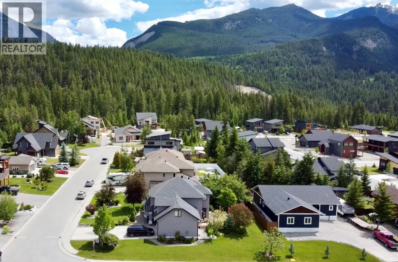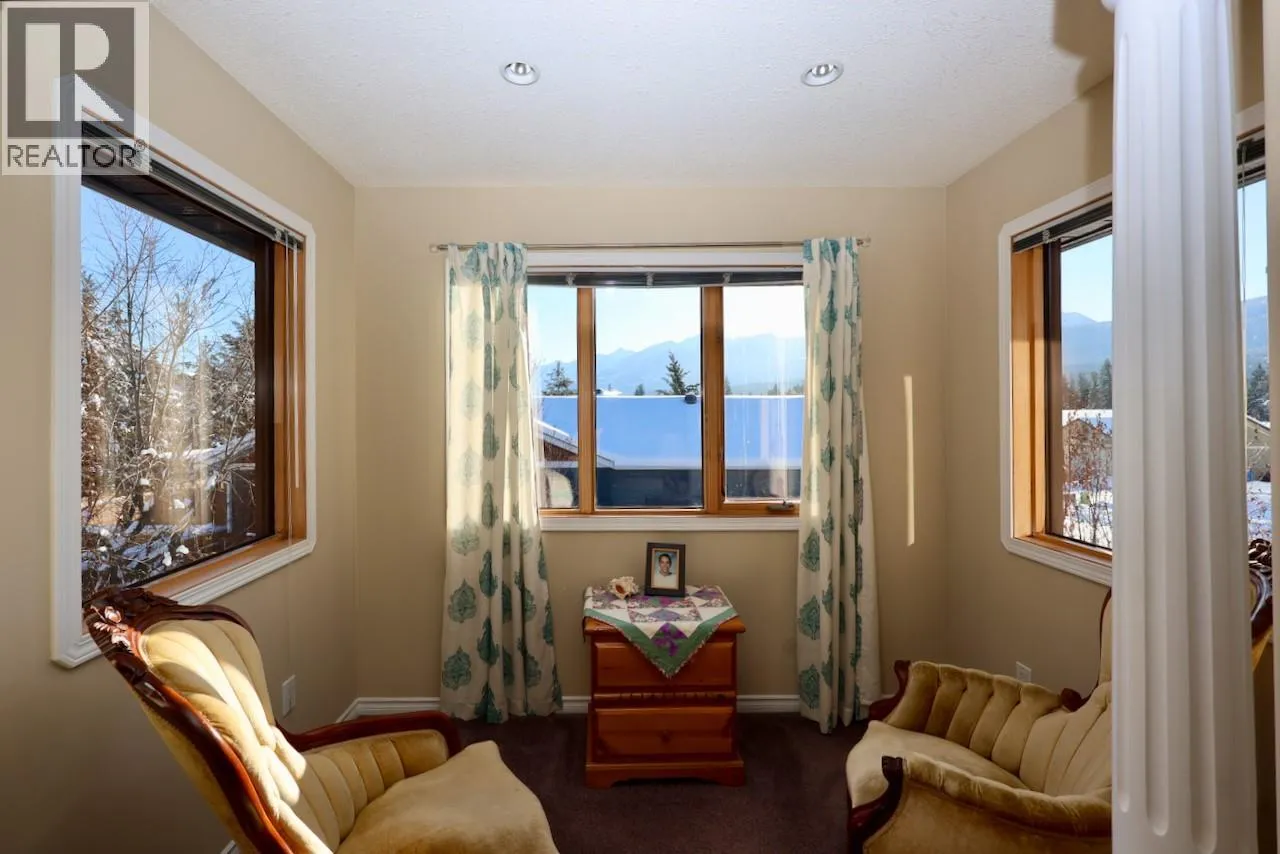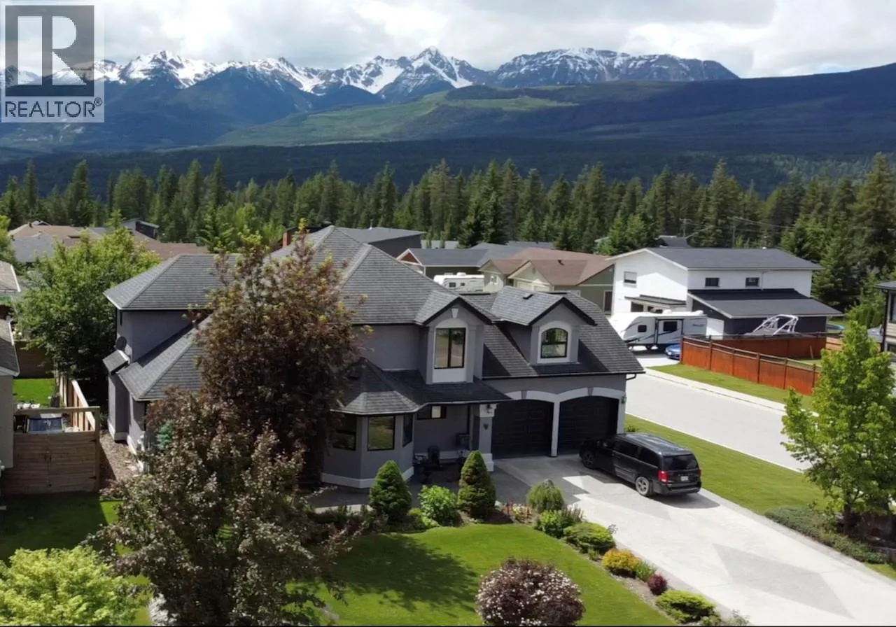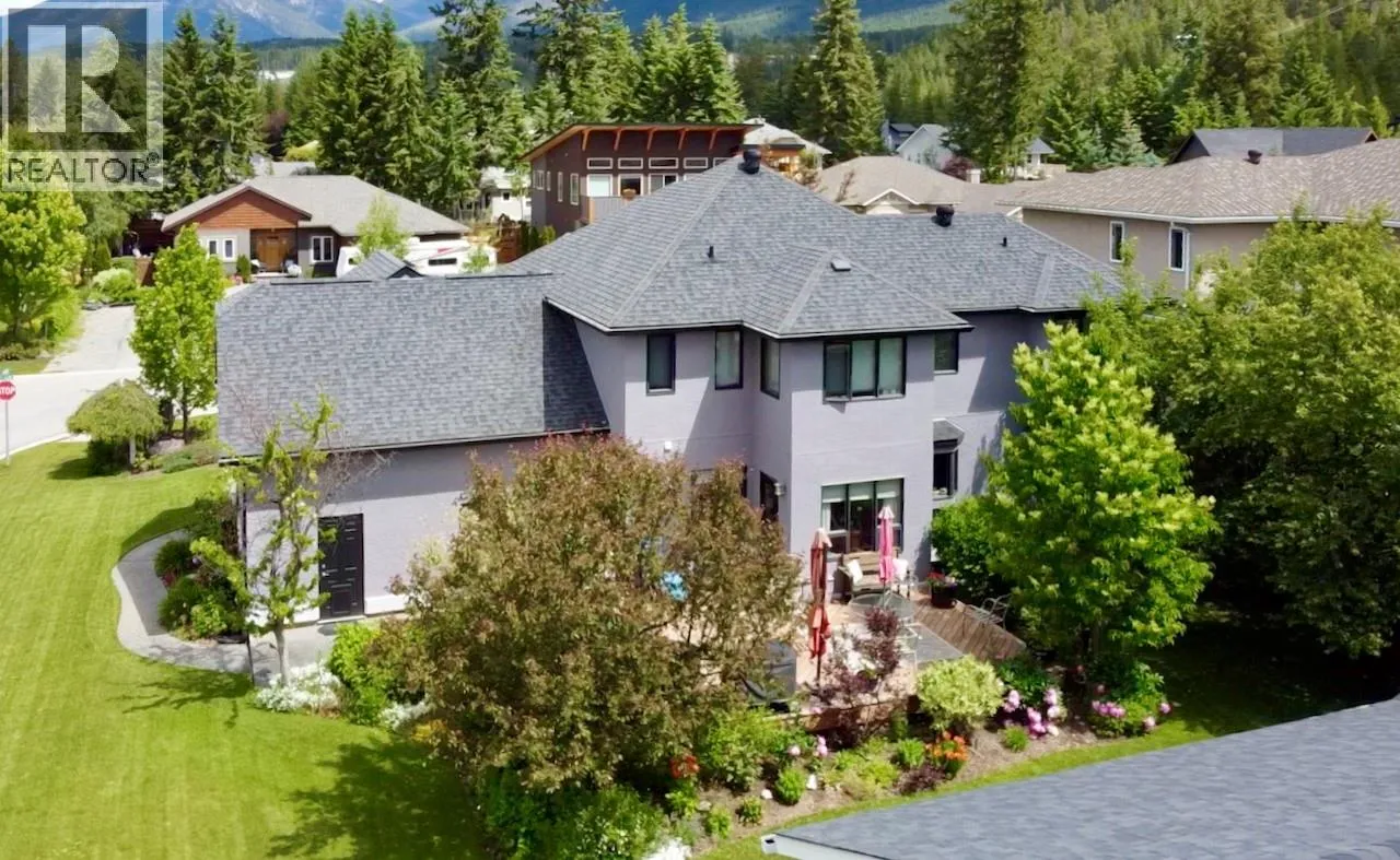 Beautiful Family Home in an Ideal Location. 4 bedrooms, 4 bathrooms, and 4 sitting rooms, this home provides ample space for comfortable living. The interior is adorned with luxurious elements such as up-lighting, stylish shelf accents, arched windows, and intricately designed inset arched areas. There is a graceful open staircase overlooking the entrance. Sunken sitting rooms with wrap-around and bay windows add artistic geometry to the home. Hardwood, tile, and plush wall-to-wall carpeted floors that enhance the overall aesthetic while remaining functional. Extra features include a reliable security system, upgraded furnace with a smart thermostat, a new hot water heater, jetted tub, kitchen island, and great views of Kicking Horse Resort, Mount 7, Moberly Mountain, and more from the big deck and the many windows. Convenience meets recreation with close proximity to Sports Fields, Rotary Trails, mountain bike trails, multiple schools and playgrounds. The landscaping is a masterpiece, featuring a spacious south-facing deck and large trees strategically placed for privacy without compromising natural light. The creatively designed driveway and walkways, composed of concrete, exposed aggregate, and patio stones, add both functionality and artistic flair to the property. The exterior has been freshly painted, enhancing the curb appeal of this corner-lot residence. This home offers an unparalleled blend of elegance, comfort, and enjoyment. The seller may consider a VTB mortgage. (id:27476)