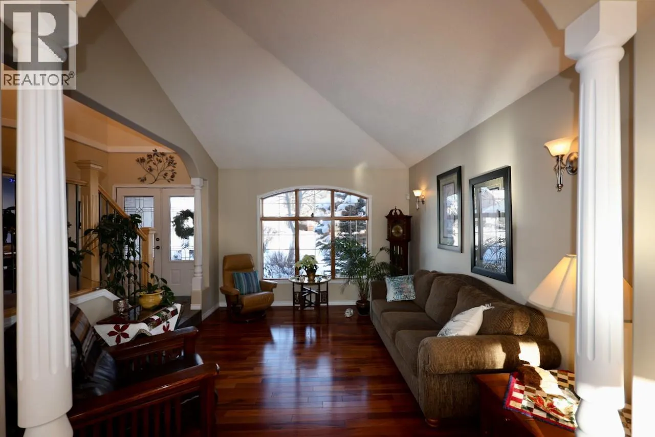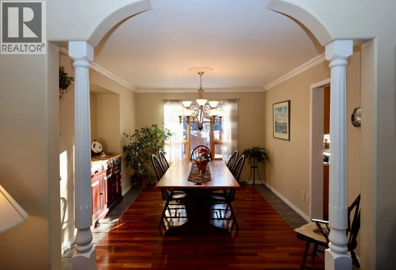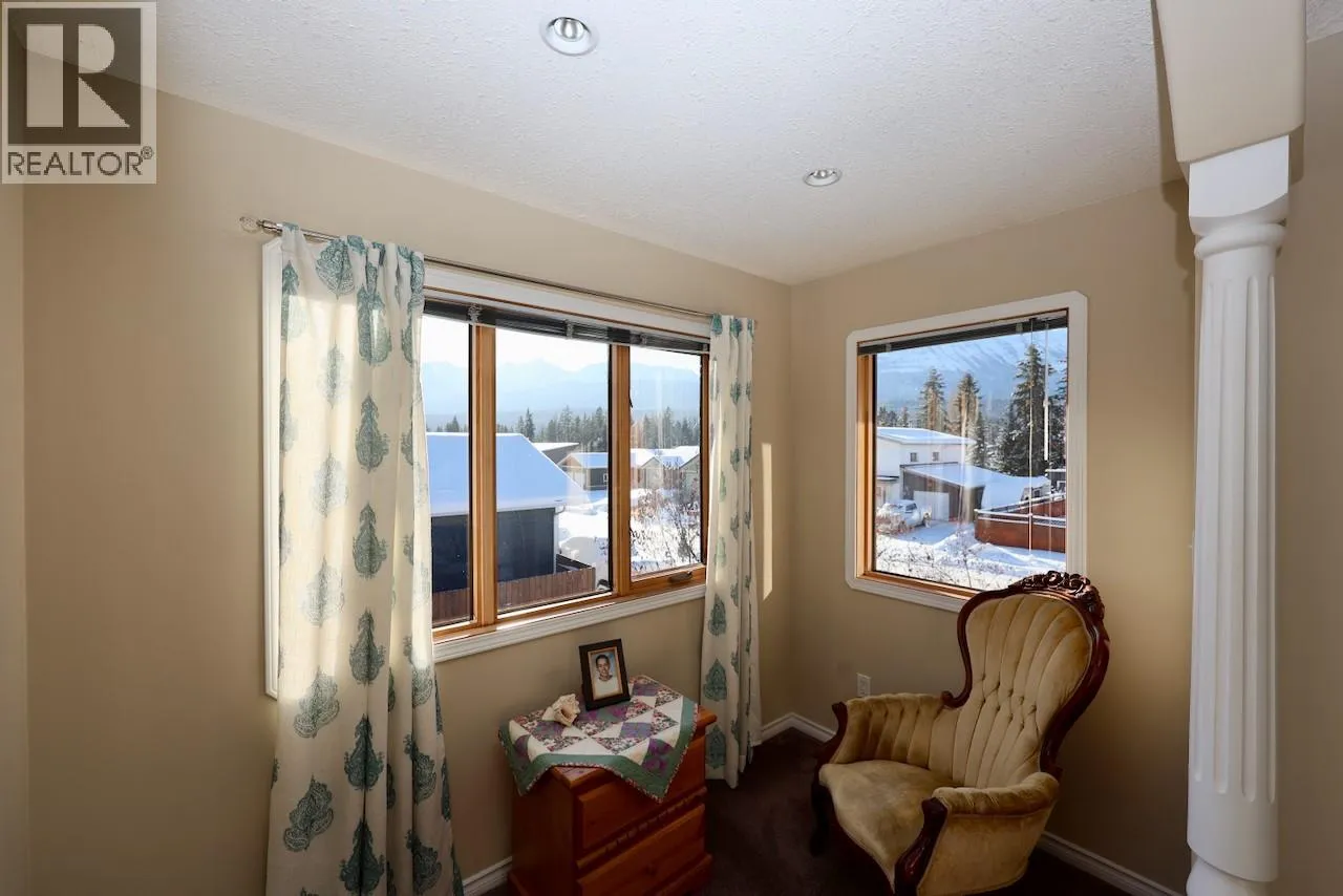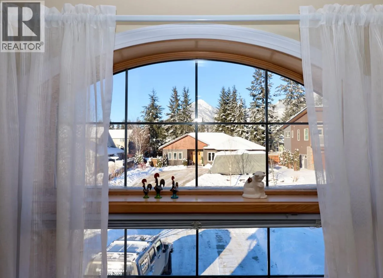 Beautiful Family Home in an Ideal Location. 4 bedrooms, 4 bathrooms, and 4 sitting rooms, this home provides ample space for comfortable living. The interior is adorned with luxurious elements such as up-lighting, stylish shelf accents, arched windows, and intricately designed inset arched areas. There is a graceful open staircase overlooking the entrance. Sunken sitting rooms with wrap-around and bay windows add artistic geometry to the home. Hardwood, tile, and plush wall-to-wall carpeted floors that enhance the overall aesthetic while remaining functional. Extra features include a reliable security system, upgraded furnace with a smart thermostat, a new hot water heater, jetted tub, kitchen island, and great views of Kicking Horse Resort, Mount 7, Moberly Mountain, and more from the big deck and the many windows. Convenience meets recreation with close proximity to Sports Fields, Rotary Trails, mountain bike trails, multiple schools and playgrounds. The landscaping is a masterpiece, featuring a spacious south-facing deck and large trees strategically placed for privacy without compromising natural light. The creatively designed driveway and walkways, composed of concrete, exposed aggregate, and patio stones, add both functionality and artistic flair to the property. The exterior has been freshly painted, enhancing the curb appeal of this corner-lot residence. This home offers an unparalleled blend of elegance, comfort, and enjoyment. The seller may consider a VTB mortgage. (id:27476)